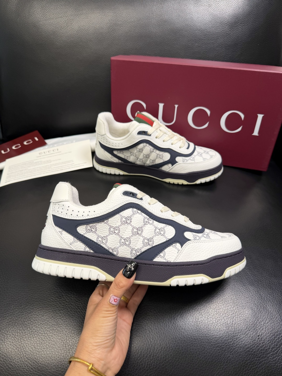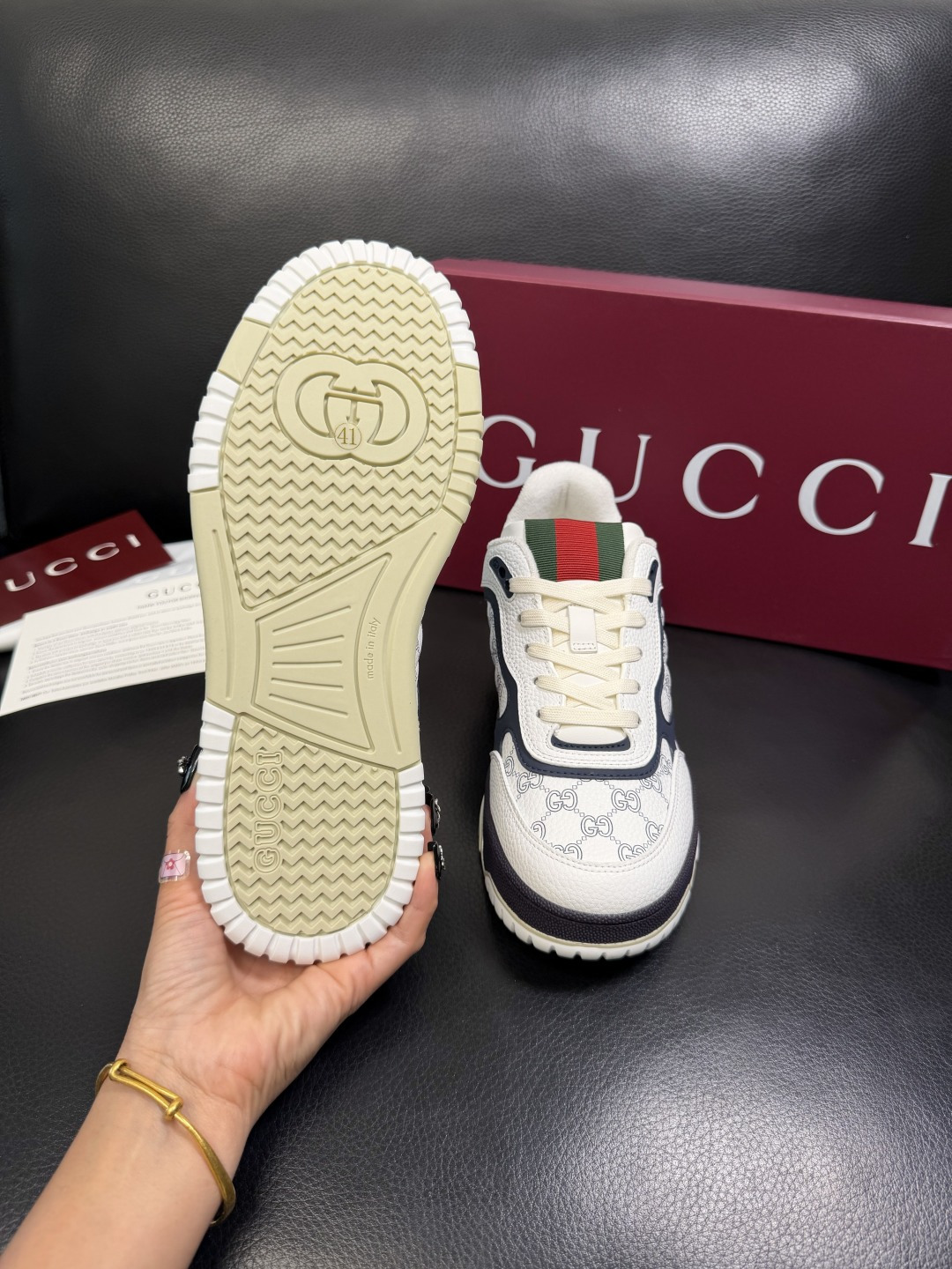 這款鞋子是AAAAA 1:1 質量(非常棒). 使用了和原版一模一樣的材料. 商標部分也保持了和古奇/Gucci一樣. 圖片拍攝是實物鞋子拍攝, 您所收到的實物保證和我們圖片一模一樣.
