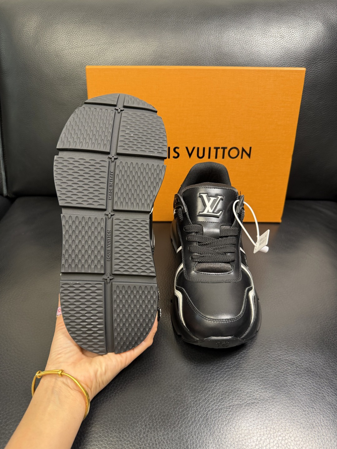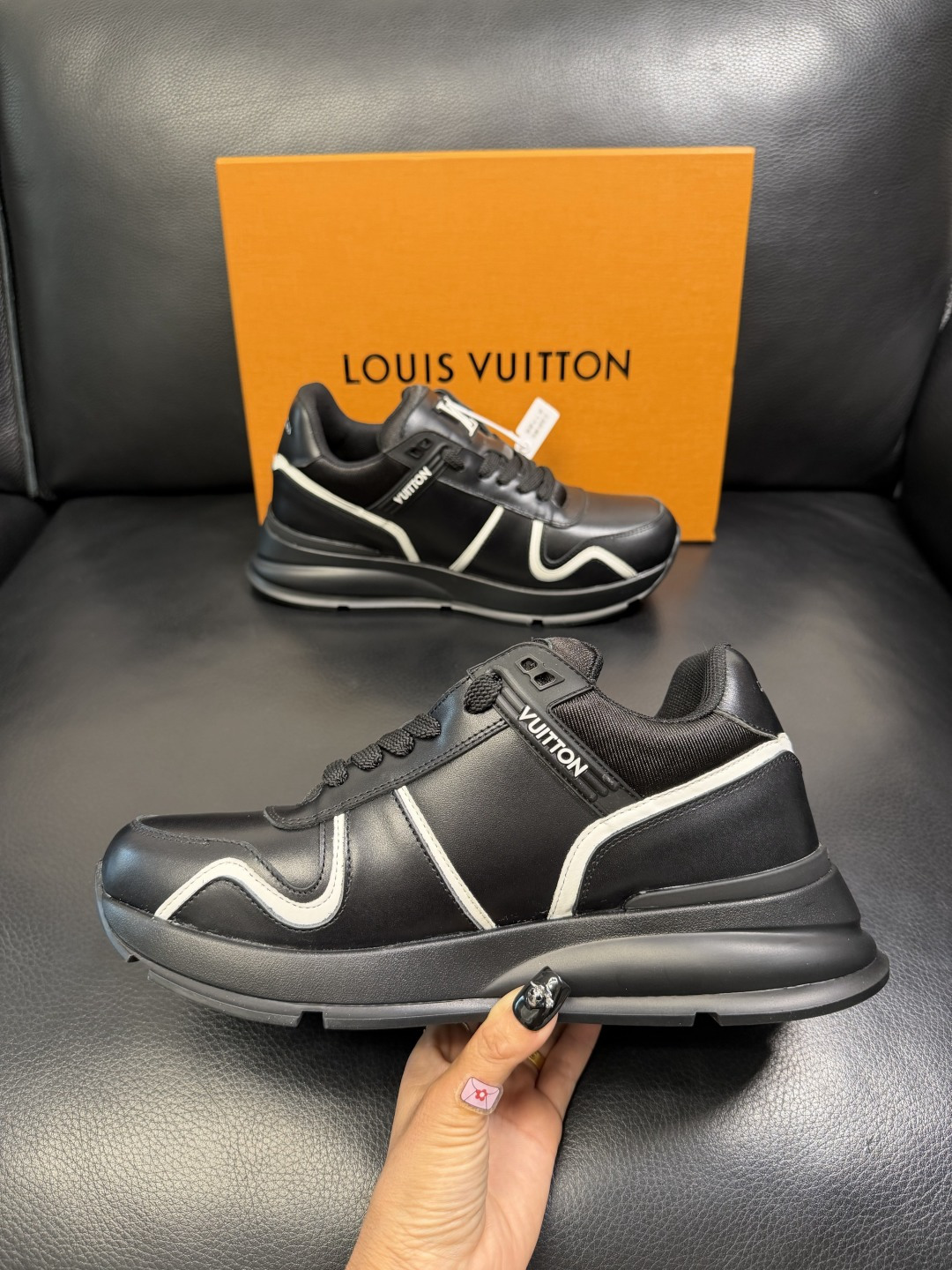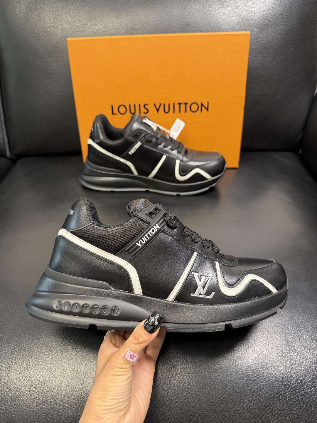 這款鞋子是AAAAA 1:1 質量(非常棒). 使用了和原版一模一樣的材料. 商標部分也保持了和路易威登/Louis Vuitton一樣. 圖片拍攝是實物鞋子拍攝, 您所收到的實物保證和我們圖片一模一樣.