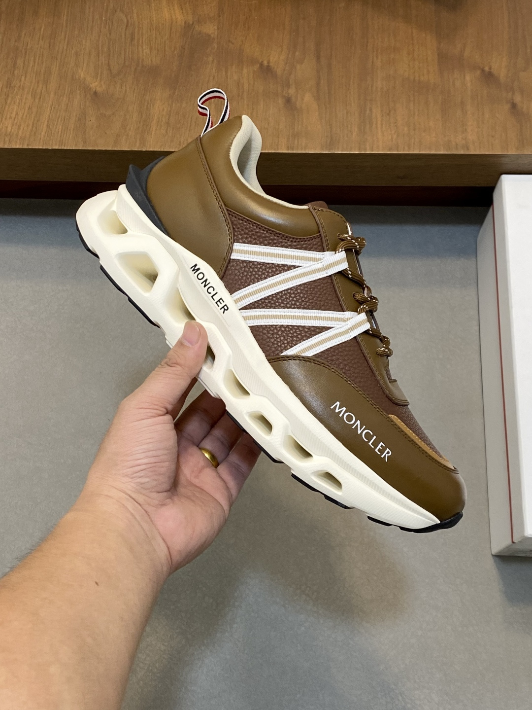 這款鞋子是AAAAA 1:1 質量(非常棒). 使用了和原版一模一樣的材料. 商標部分也保持了和moncler一樣. 圖片拍攝是實物鞋子拍攝, 您所收到的實物保證和我們圖片一模一樣.