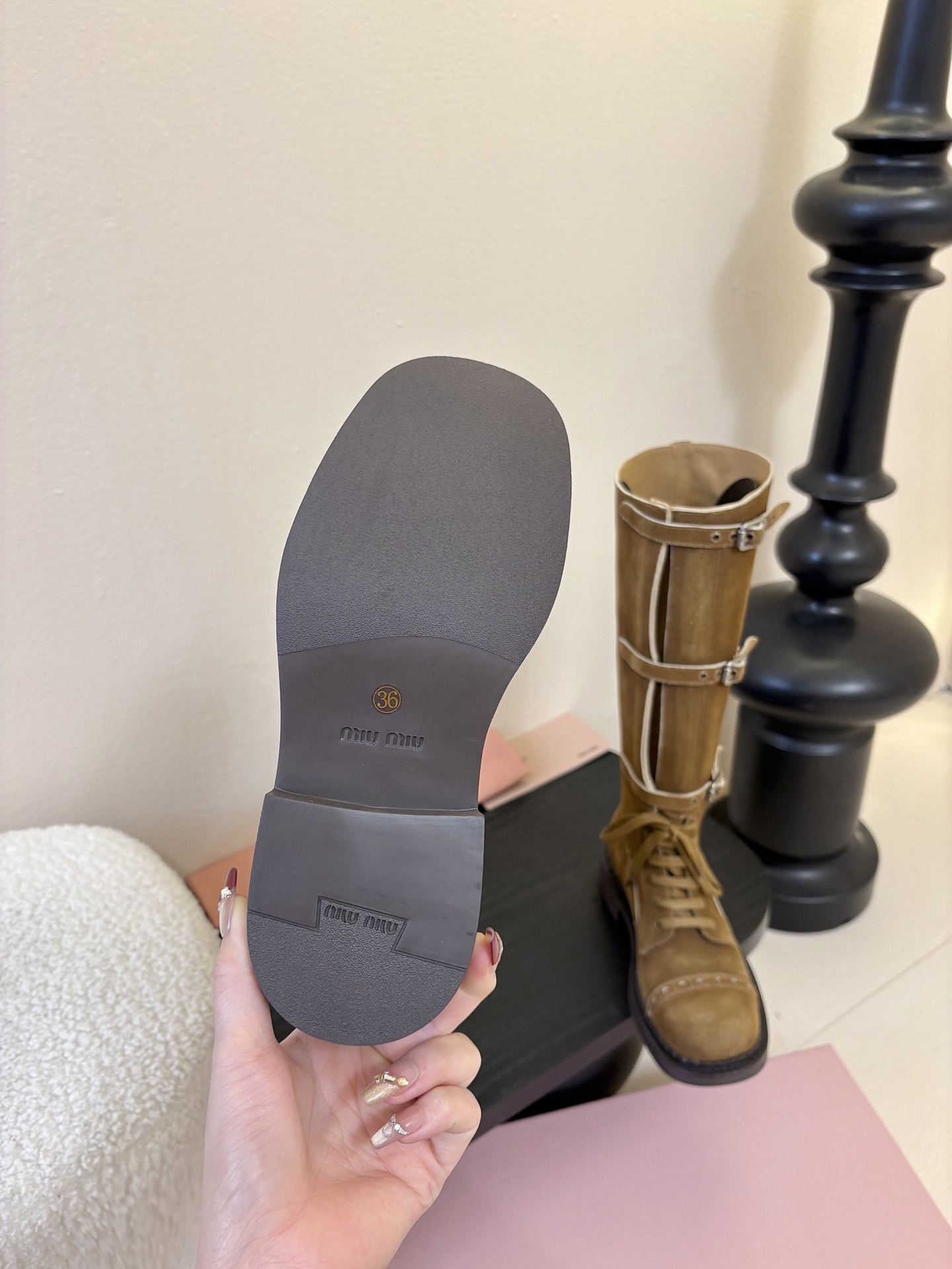這款鞋子是AAAAA 1:1 質量(非常棒). 使用了和原版一模一樣的材料. 商標部分也保持了和繆繆/Miu Miu一樣. 圖片拍攝是實物鞋子拍攝, 您所收到的實物保證和我們圖片一模一樣.