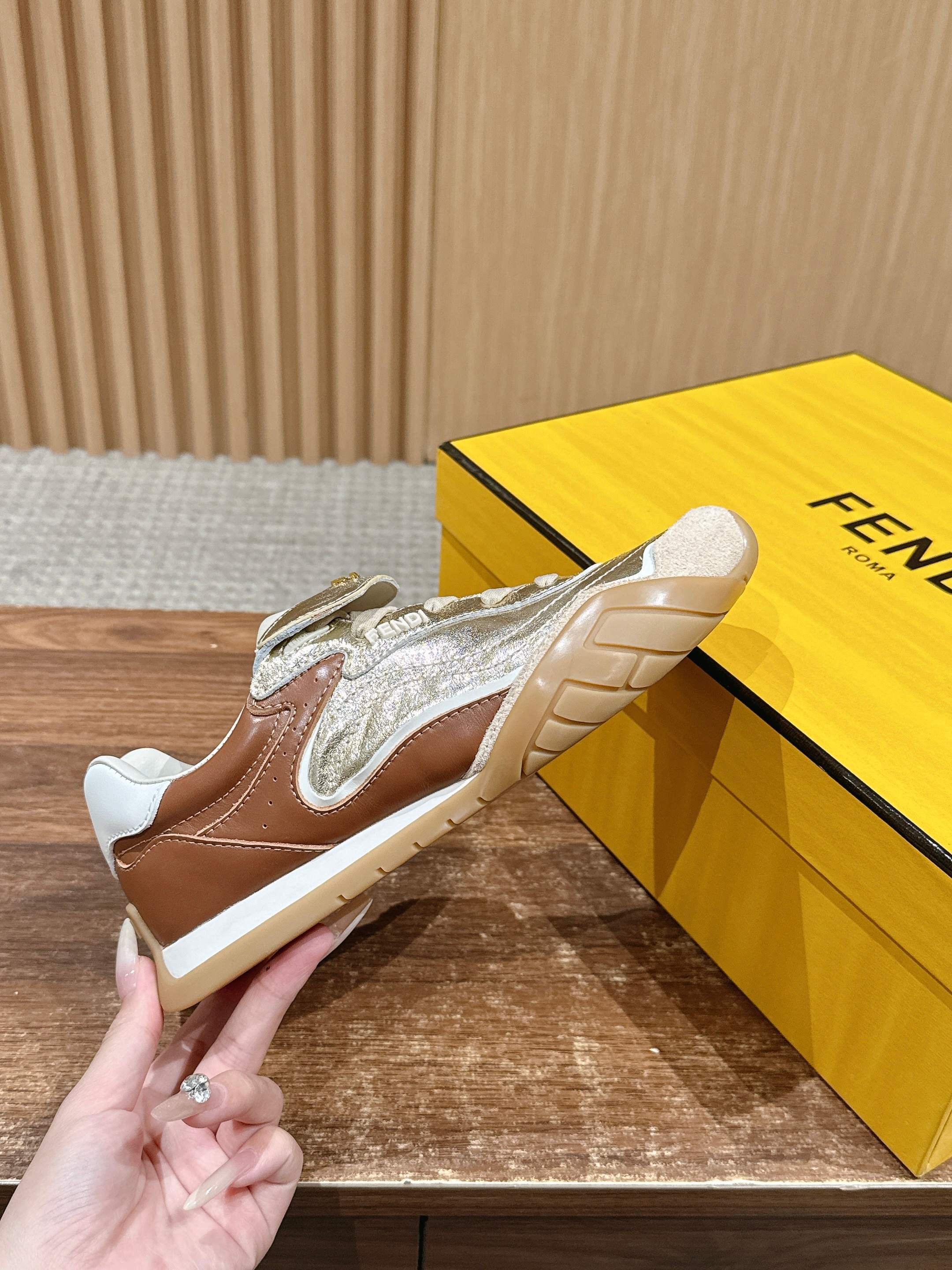 這款鞋子是AAAAA 1:1 質量(非常棒). 使用了和原版一模一樣的材料. 商標部分也保持了和芬迪/Fendi一樣. 圖片拍攝是實物鞋子拍攝, 您所收到的實物保證和我們圖片一模一樣.