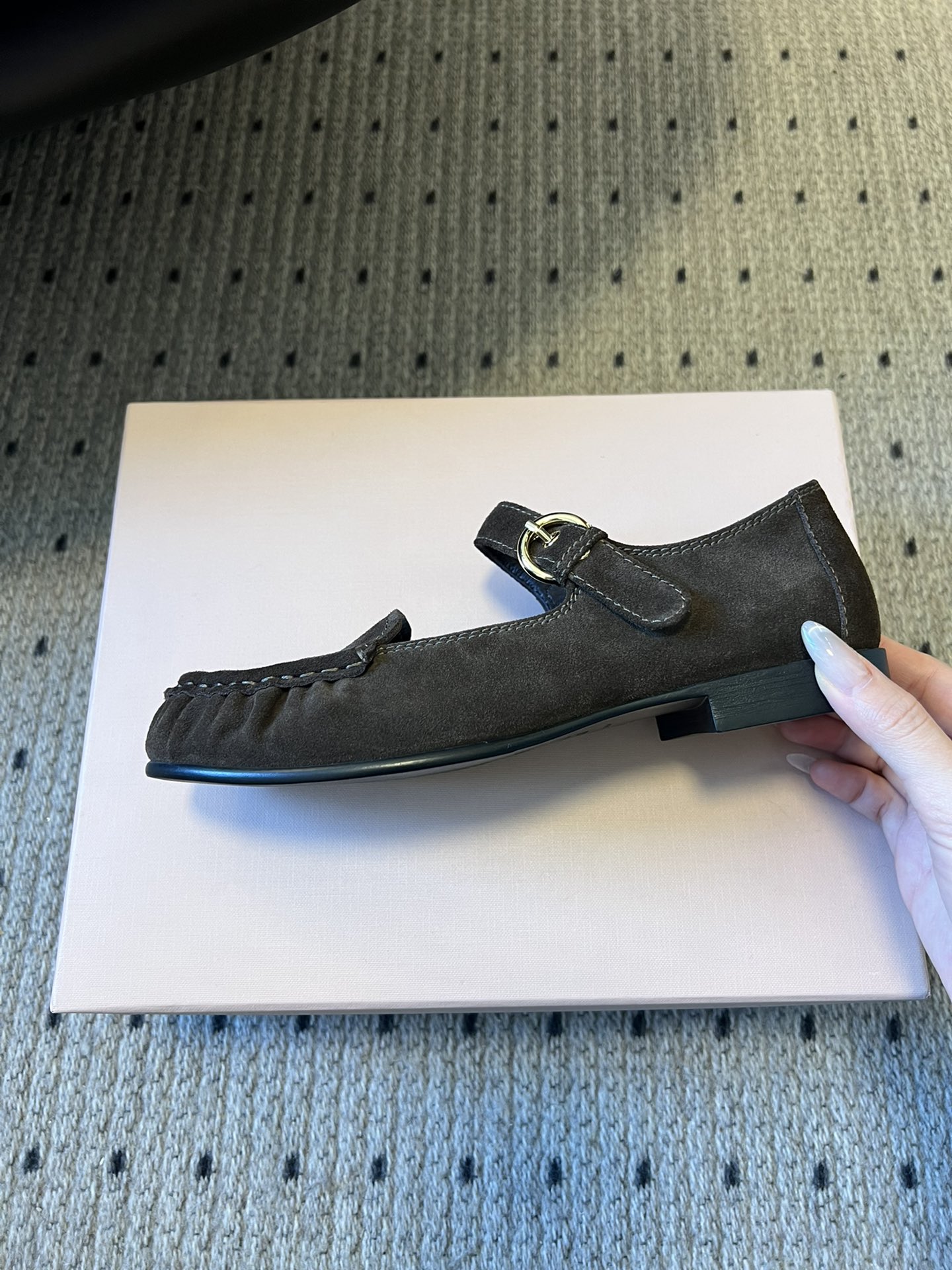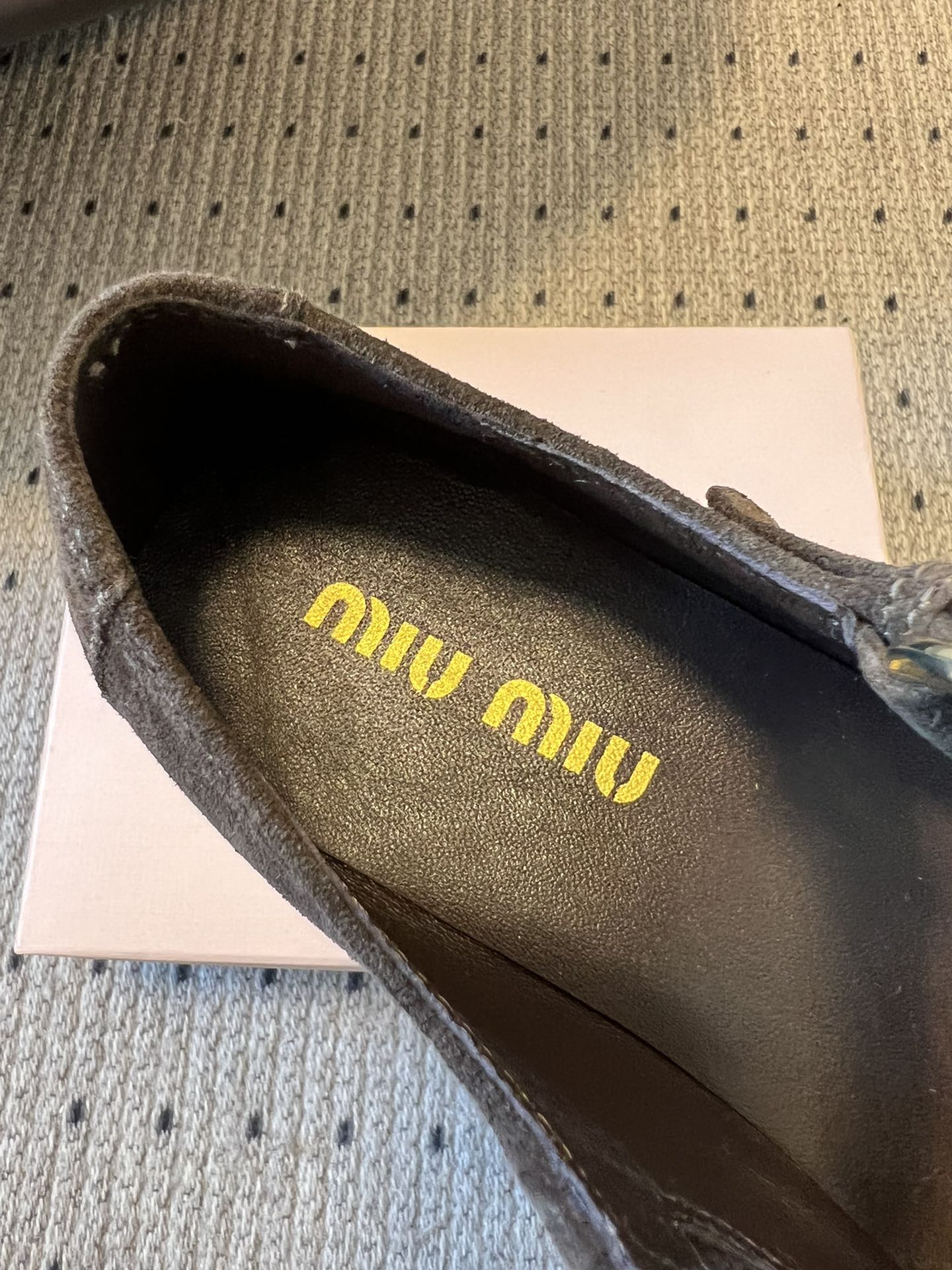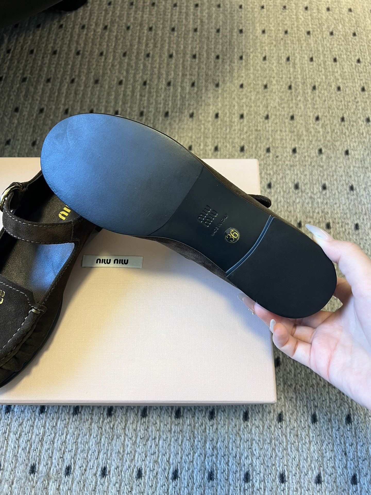 這款鞋子是AAAAA 1:1 質量(非常棒). 使用了和原版一模一樣的材料. 商標部分也保持了和繆繆/Miu Miu一樣. 圖片拍攝是實物鞋子拍攝, 您所收到的實物保證和我們圖片一模一樣.
