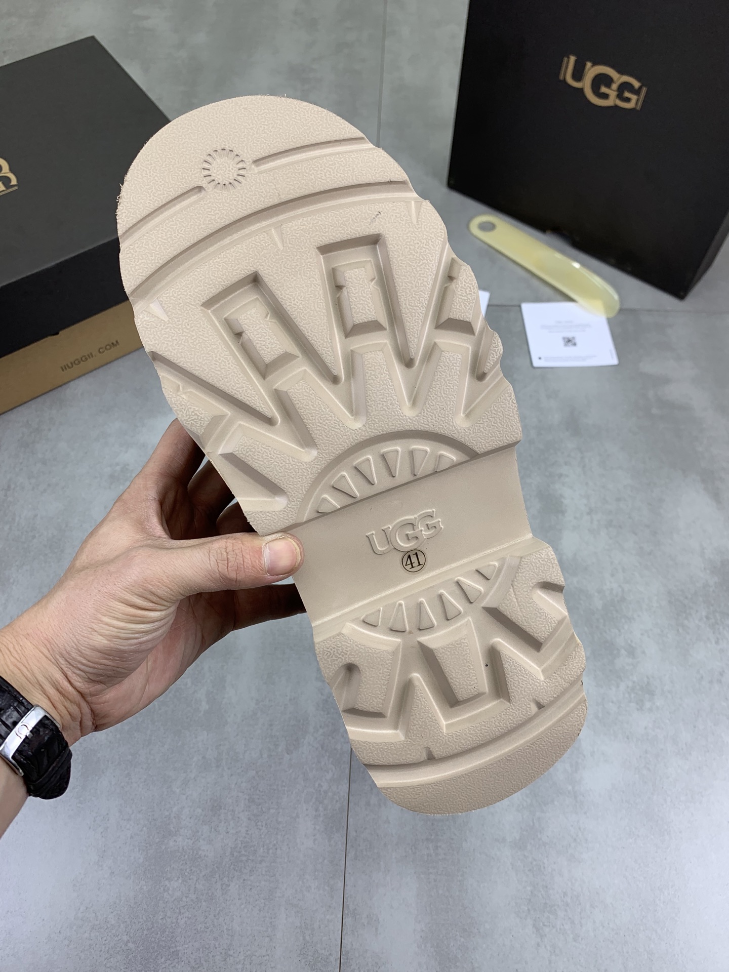 這款鞋子是AAAAA 1:1 質量(非常棒). 使用了和原版一模一樣的材料. 商標部分也保持了和UGG一樣. 圖片拍攝是實物鞋子拍攝, 您所收到的實物保證和我們圖片一模一樣.