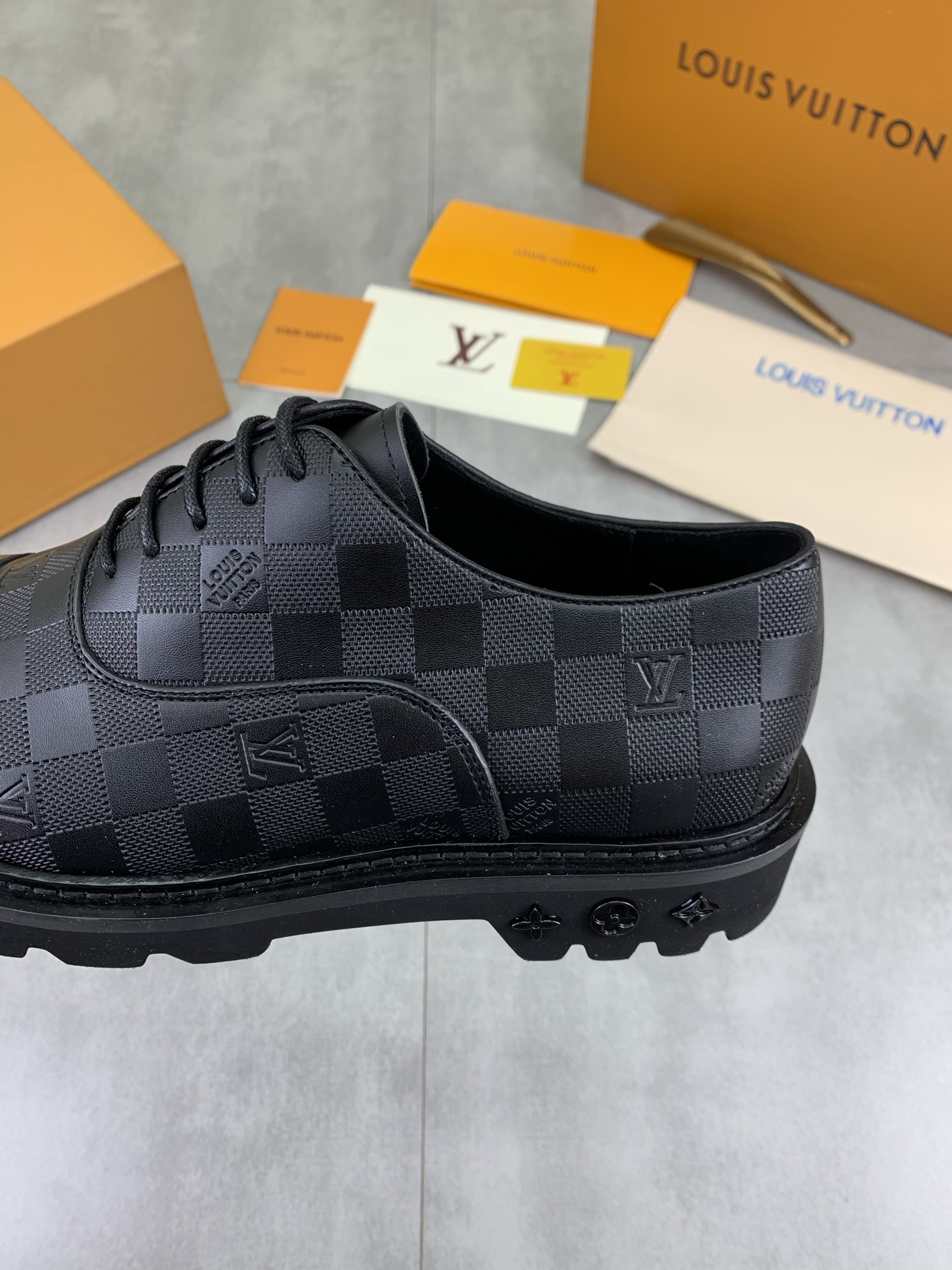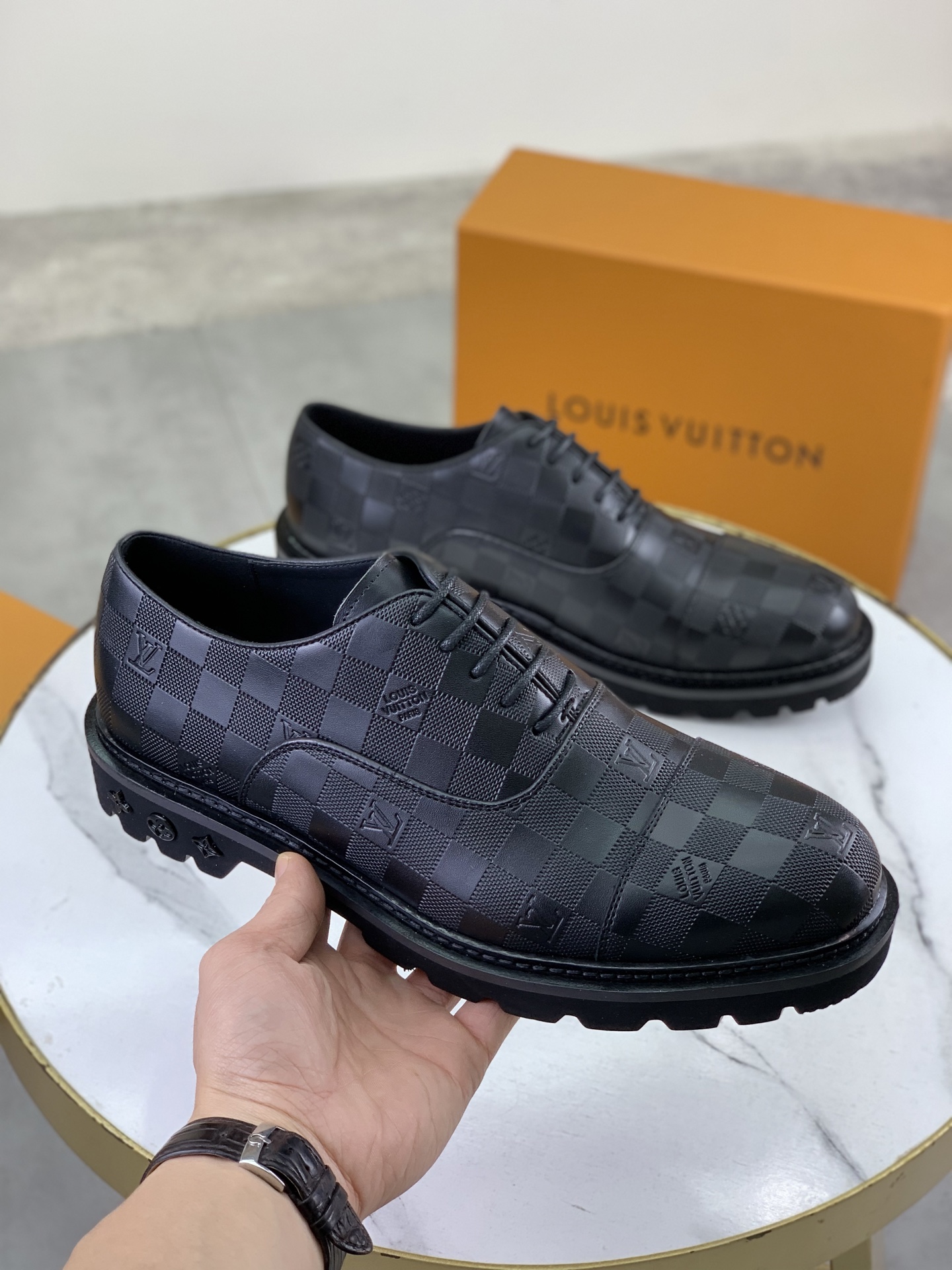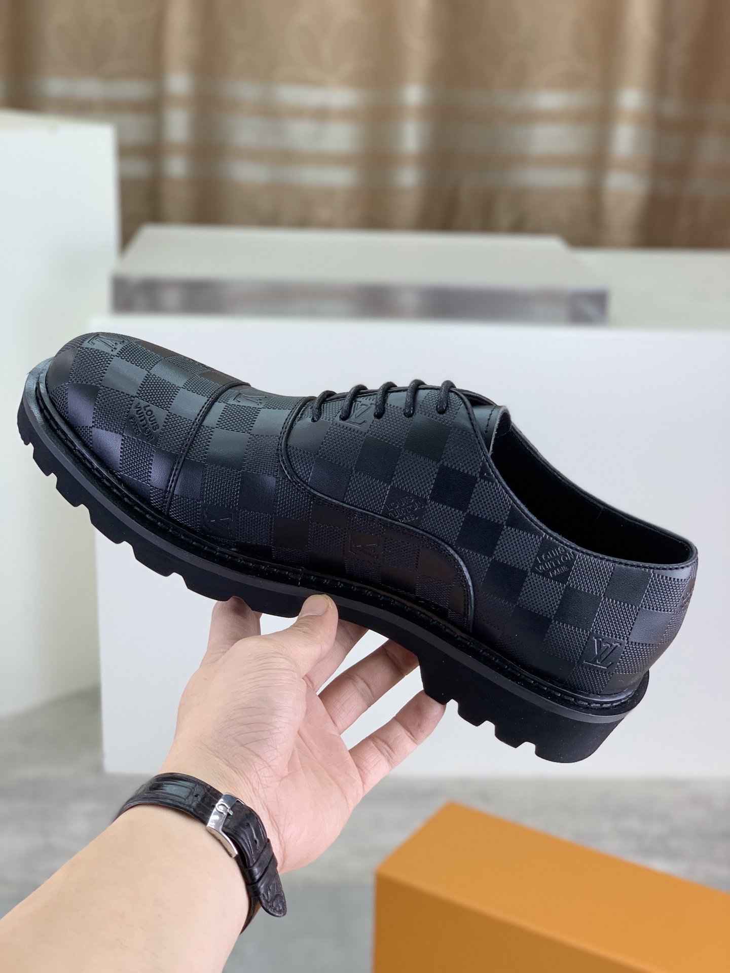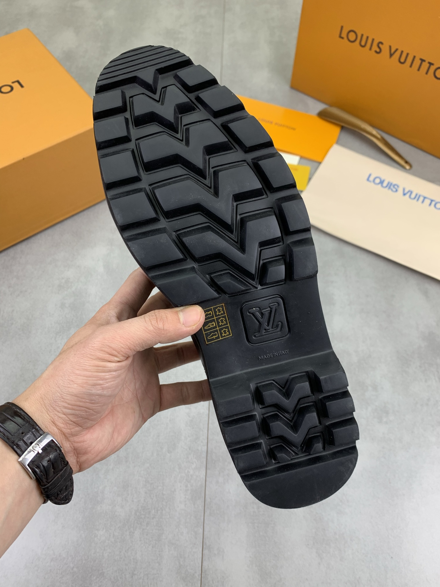 這款鞋子是AAAAA 1:1 質量(非常棒). 使用了和原版一模一樣的材料. 商標部分也保持了和路易威登/Louis Vuitton一樣. 圖片拍攝是實物鞋子拍攝, 您所收到的實物保證和我們圖片一模一樣.