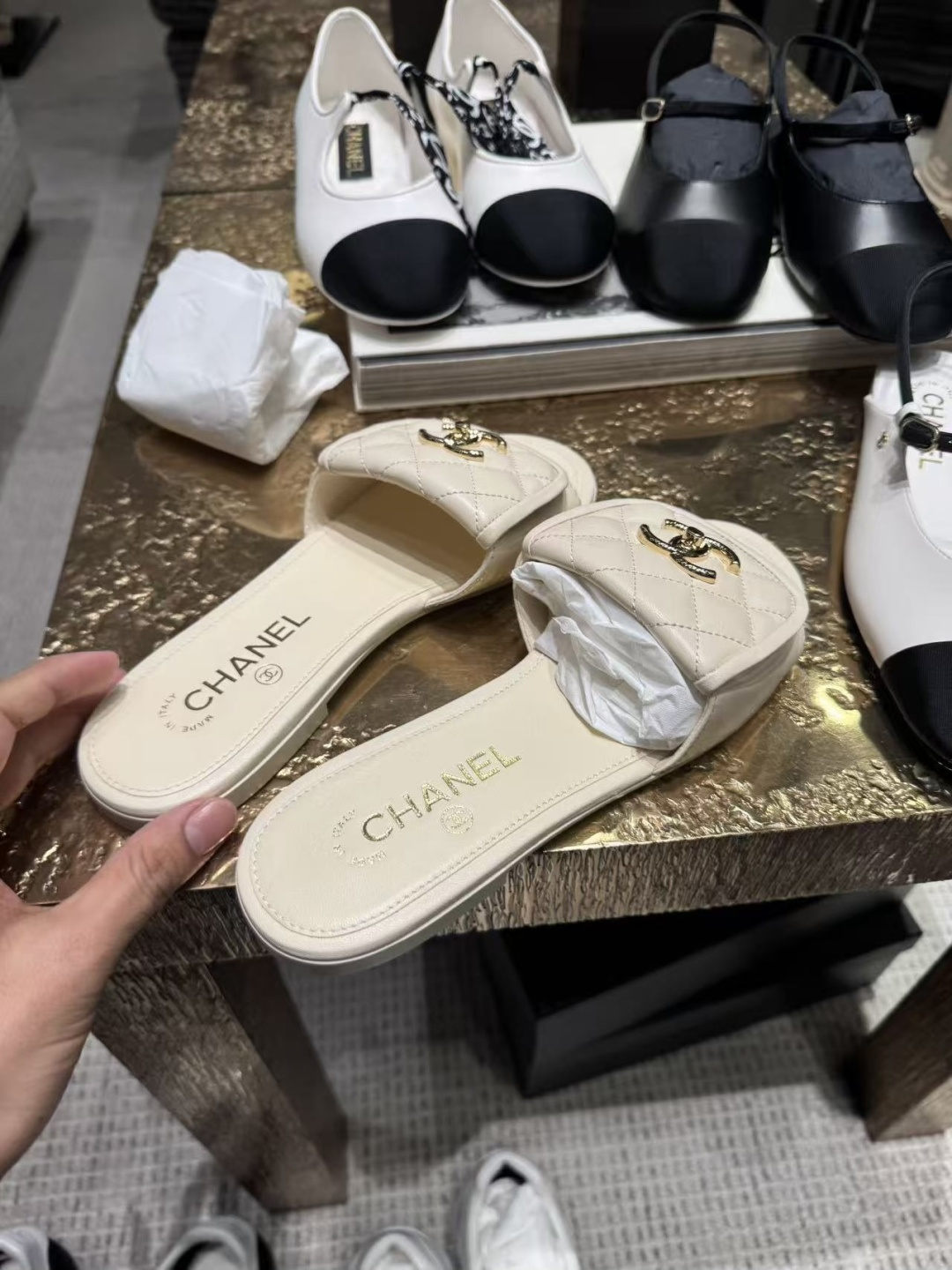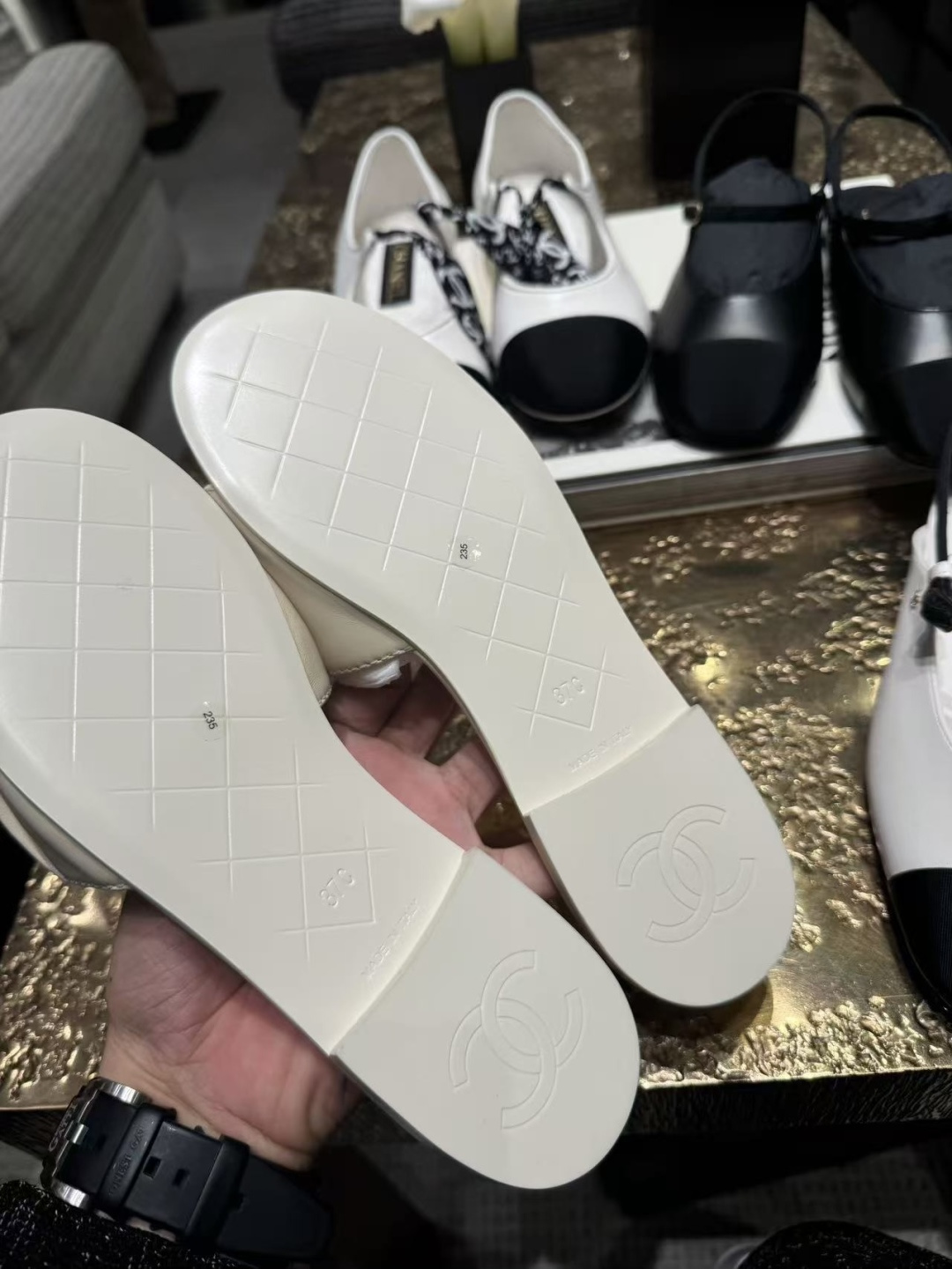 這款鞋子是AAAAA 1:1 質量(非常棒). 使用了和原版一模一樣的材料. 商標部分也保持了和香奈兒/Chanel一樣. 圖片拍攝是實物鞋子拍攝, 您所收到的實物保證和我們圖片一模一樣.