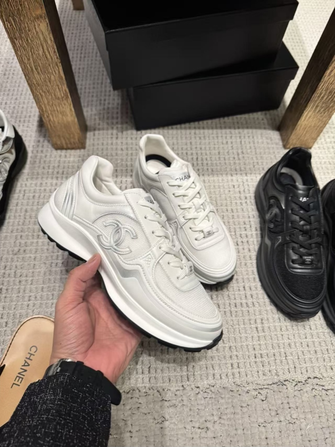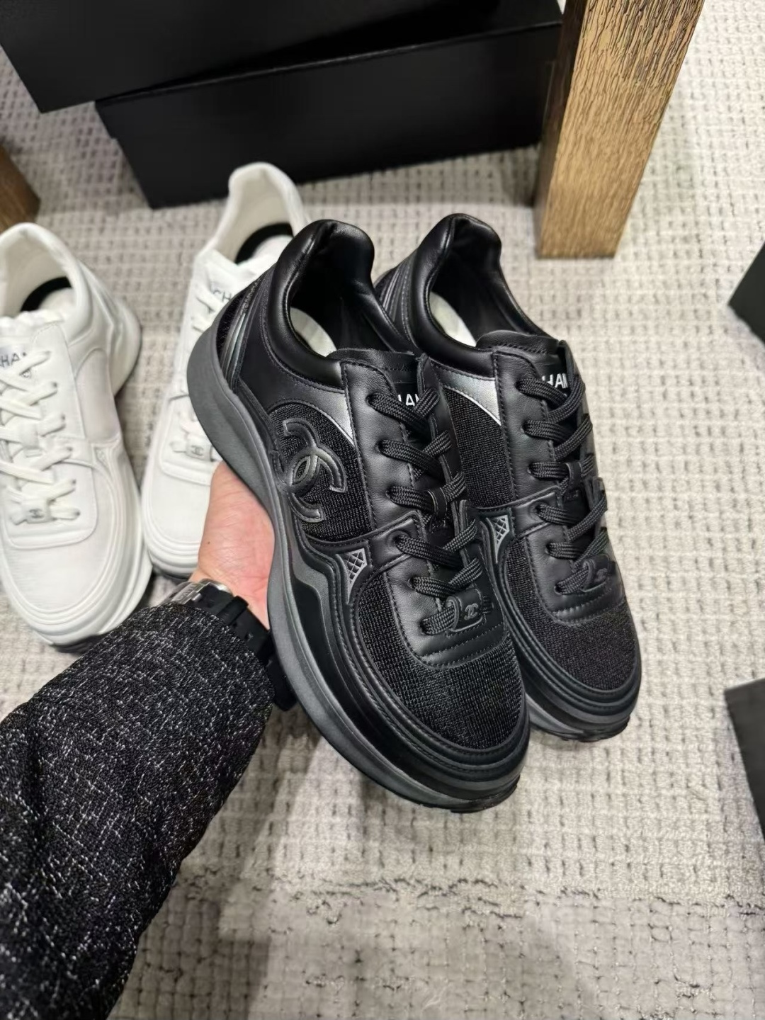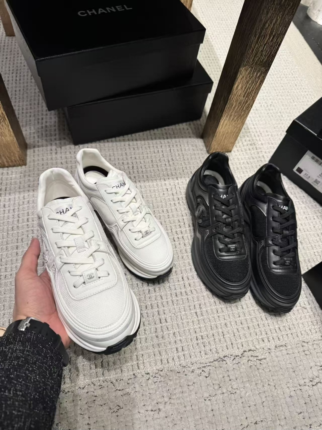 這款鞋子是AAAAA 1:1 質量(非常棒). 使用了和原版一模一樣的材料. 商標部分也保持了和香奈兒/Chanel一樣. 圖片拍攝是實物鞋子拍攝, 您所收到的實物保證和我們圖片一模一樣.