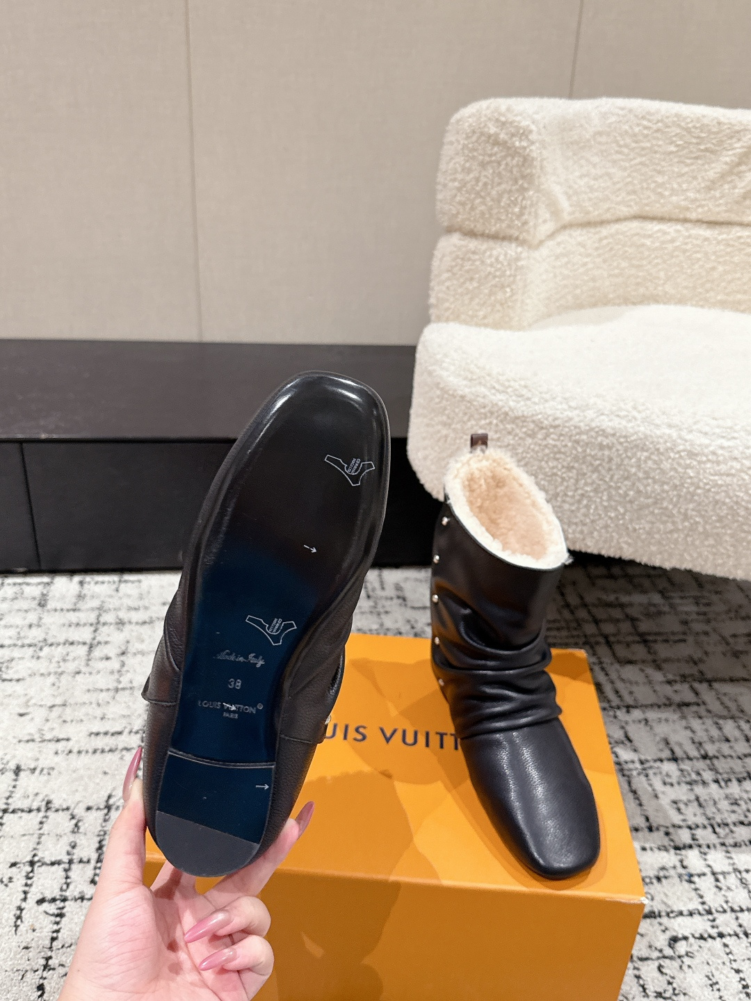這款鞋子是AAAAA 1:1 質量(非常棒). 使用了和原版一模一樣的材料. 商標部分也保持了和路易威登/Louis Vuitton一樣. 圖片拍攝是實物鞋子拍攝, 您所收到的實物保證和我們圖片一模一樣.