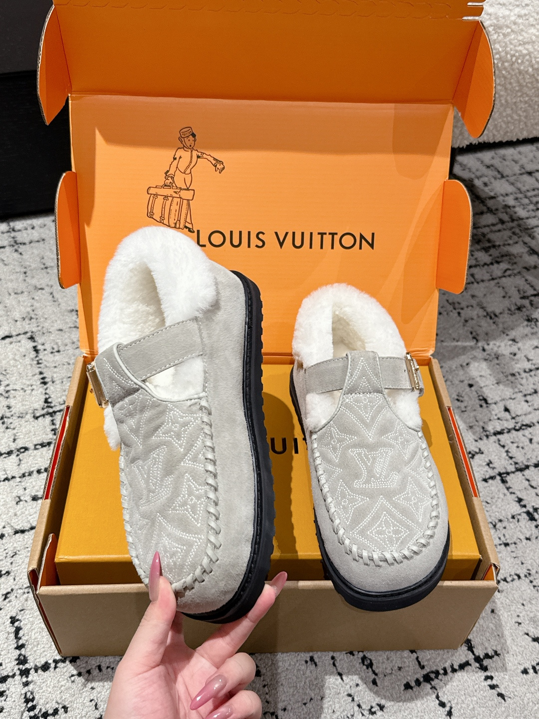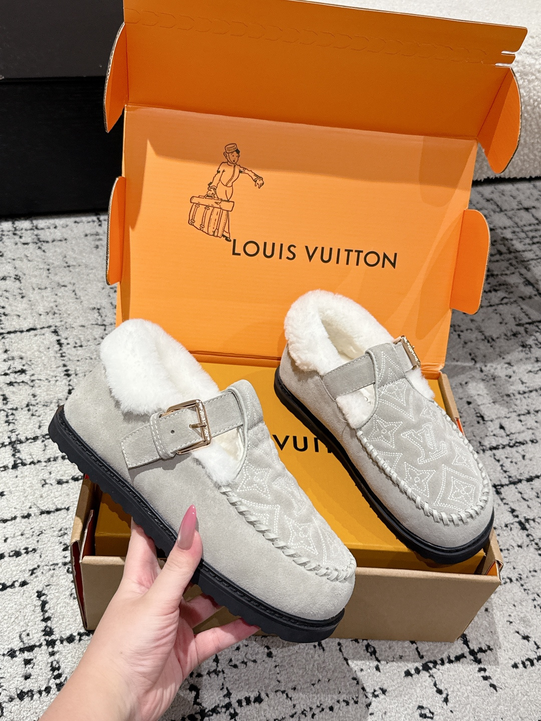 這款鞋子是AAAAA 1:1 質量(非常棒). 使用了和原版一模一樣的材料. 商標部分也保持了和路易威登/Louis Vuitton一樣. 圖片拍攝是實物鞋子拍攝, 您所收到的實物保證和我們圖片一模一樣.