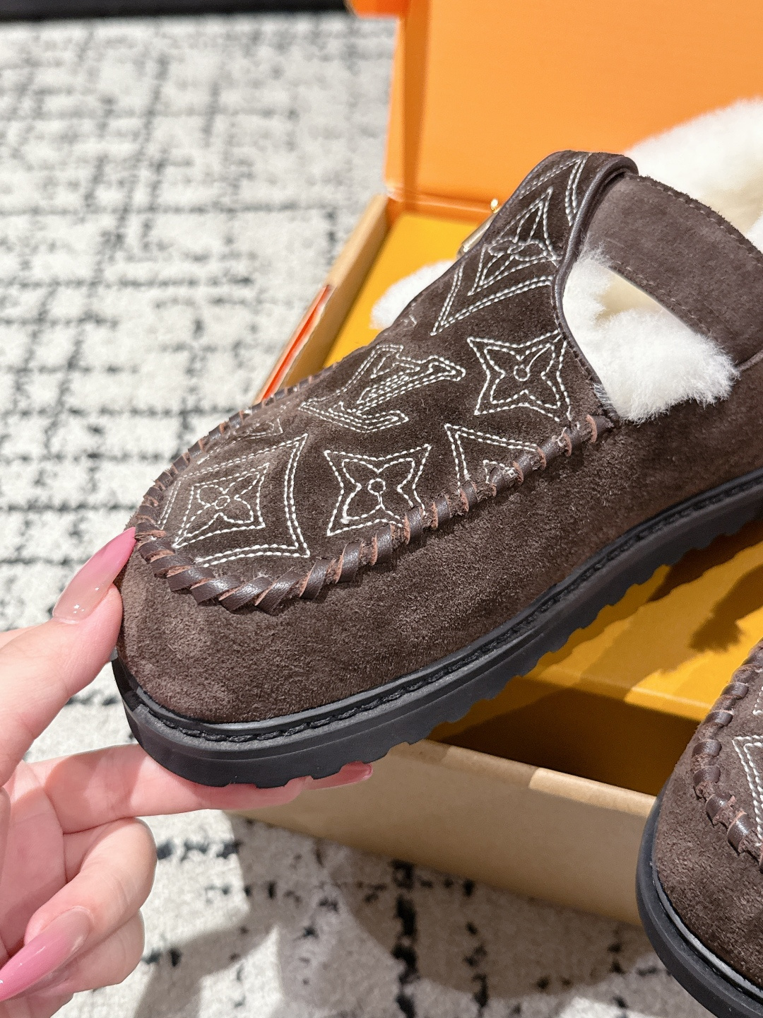這款鞋子是AAAAA 1:1 質量(非常棒). 使用了和原版一模一樣的材料. 商標部分也保持了和路易威登/Louis Vuitton一樣. 圖片拍攝是實物鞋子拍攝, 您所收到的實物保證和我們圖片一模一樣.