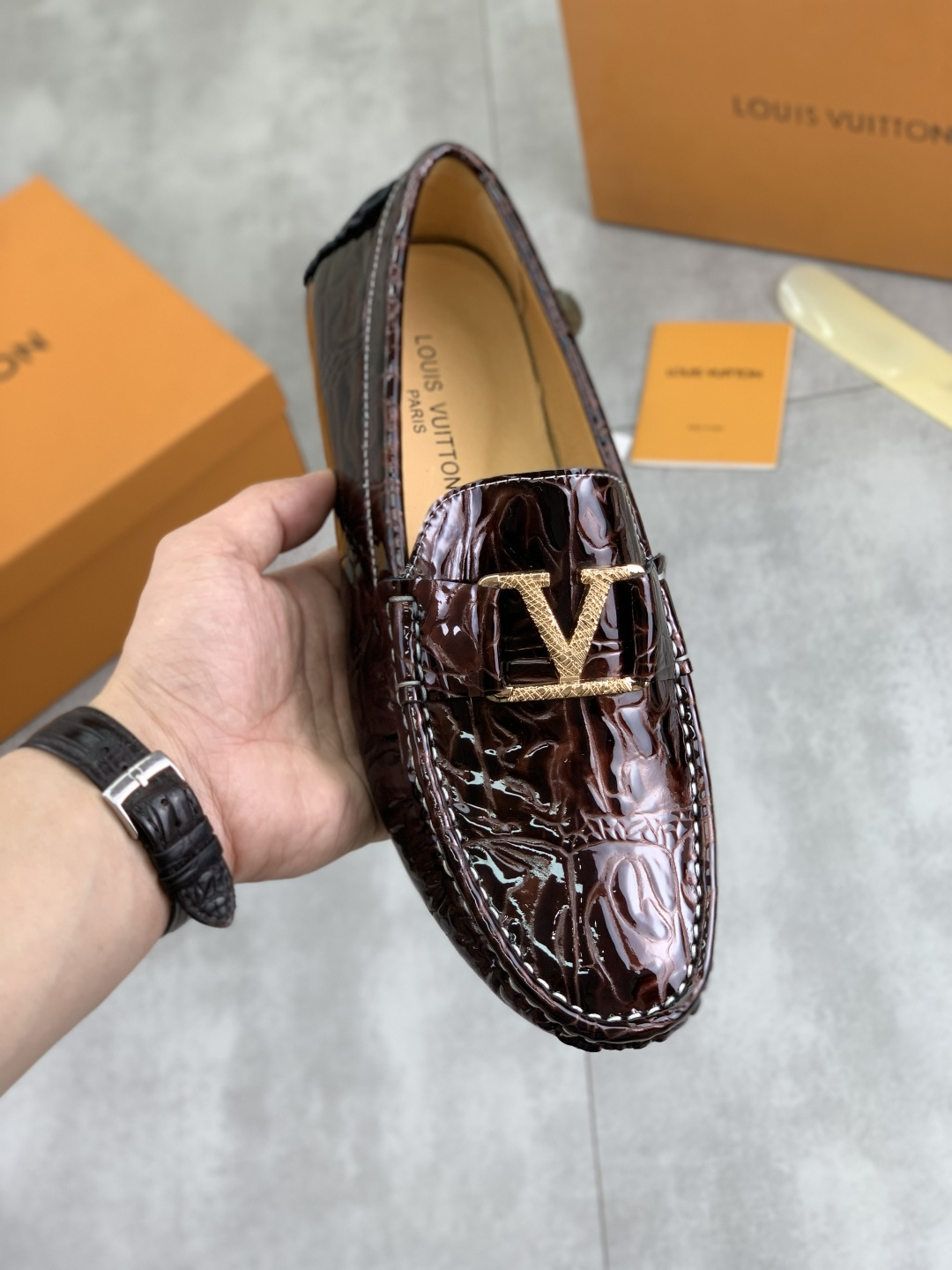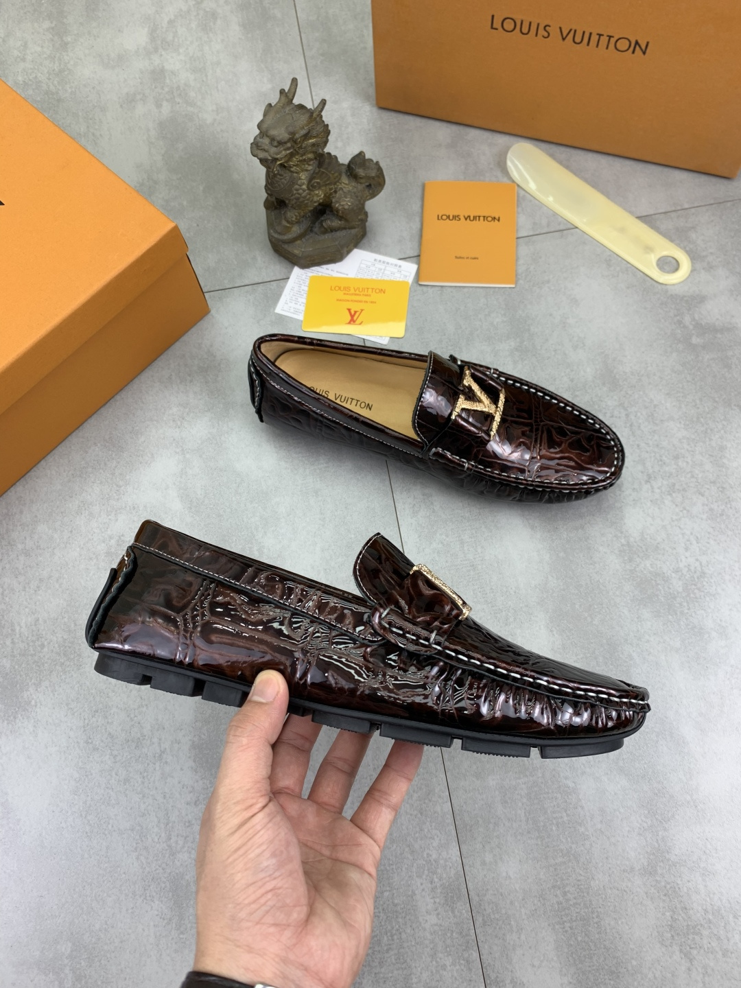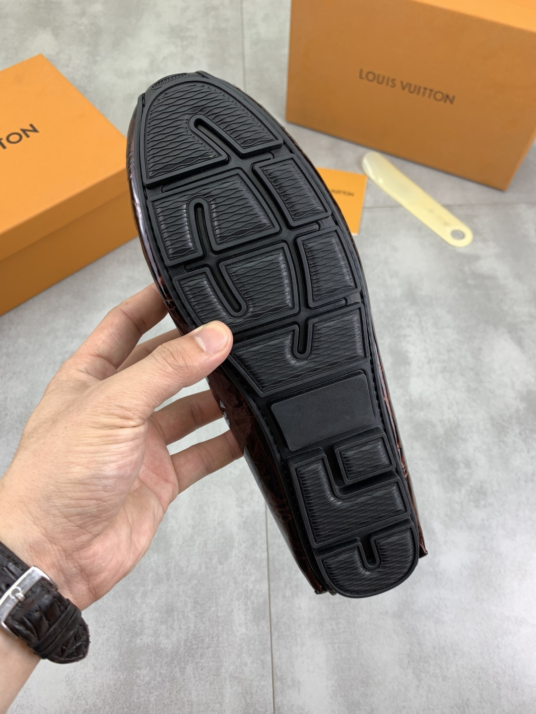 這款鞋子是AAAAA 1:1 質量(非常棒). 使用了和原版一模一樣的材料. 商標部分也保持了和路易威登/Louis Vuitton一樣. 圖片拍攝是實物鞋子拍攝, 您所收到的實物保證和我們圖片一模一樣.