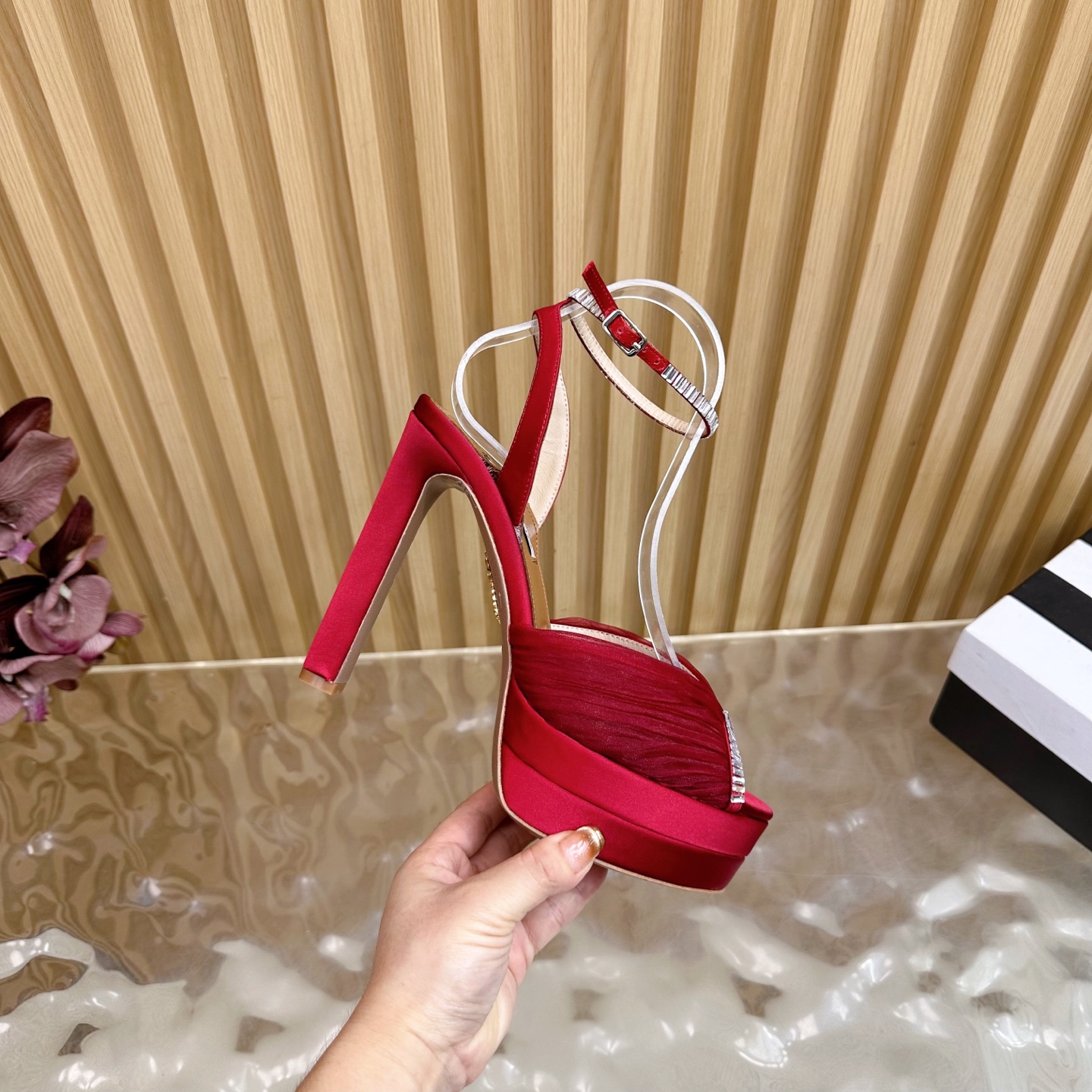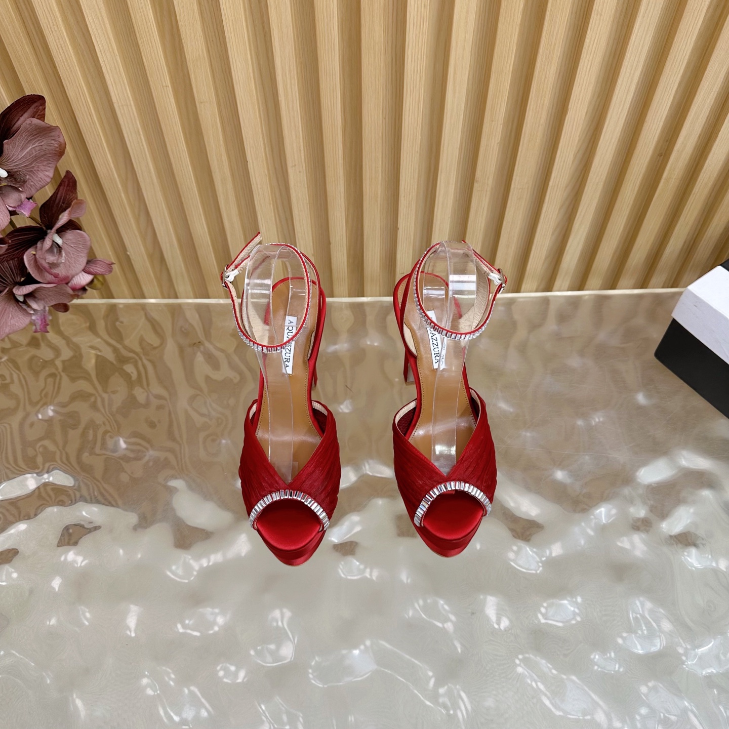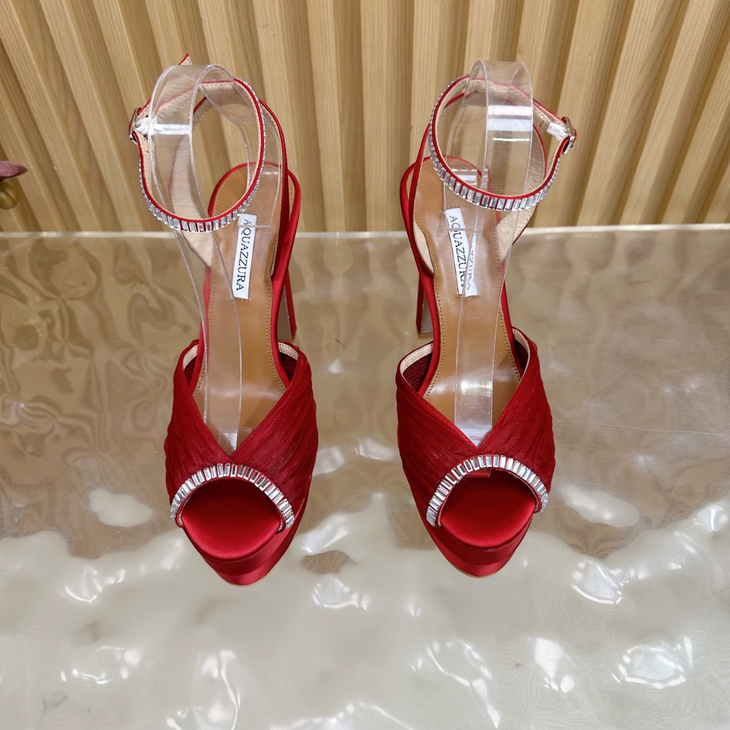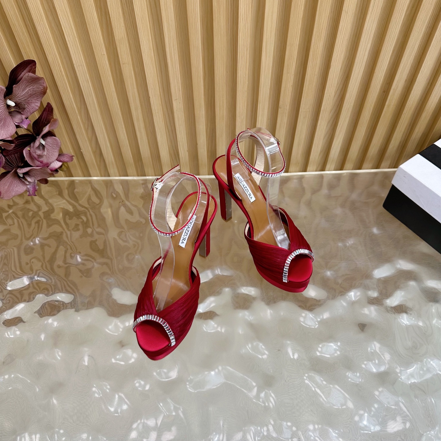 這款鞋子是AAAAA 1:1 質量(非常棒). 使用了和原版一模一樣的材料. 商標部分也保持了和Aquazzura一樣. 圖片拍攝是實物鞋子拍攝, 您所收到的實物保證和我們圖片一模一樣.