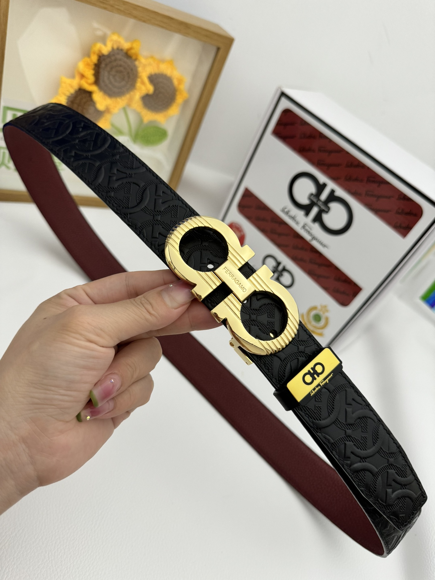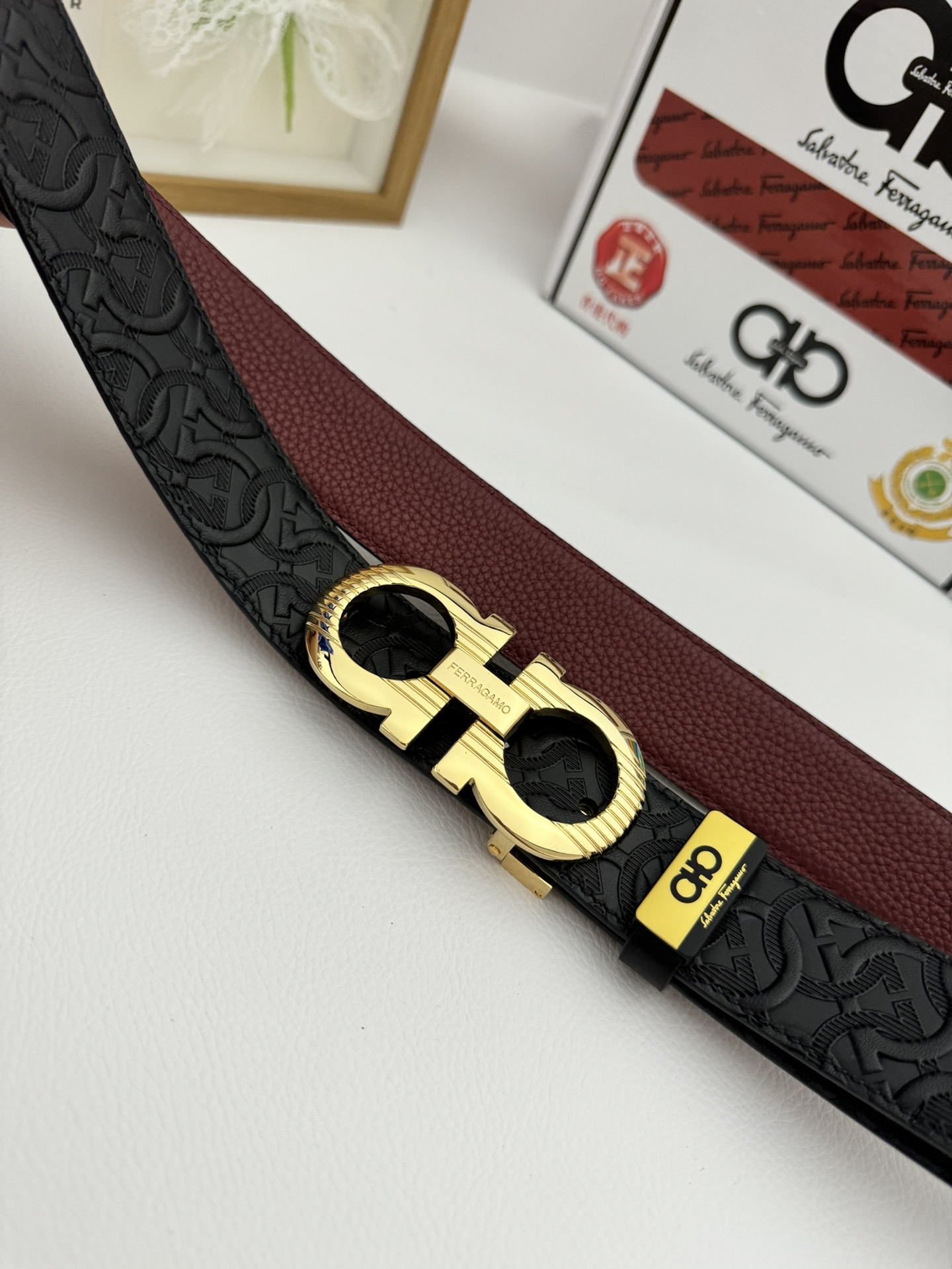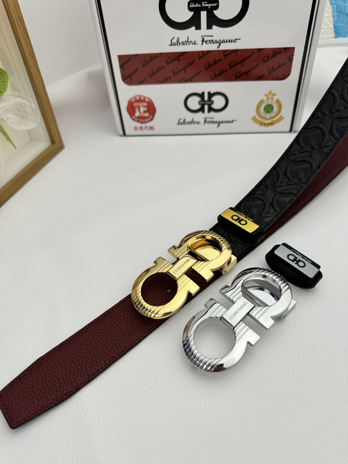 這款皮帶是AAAAA 1:1 質量(非常棒). 使用了和原版一模一樣的材料. 商標部分也保持了和菲拉格慕/Salvatore Ferragamo一樣. 圖片拍攝是實物皮帶拍攝, 您所收到的實物保證和我們圖片一模一樣.