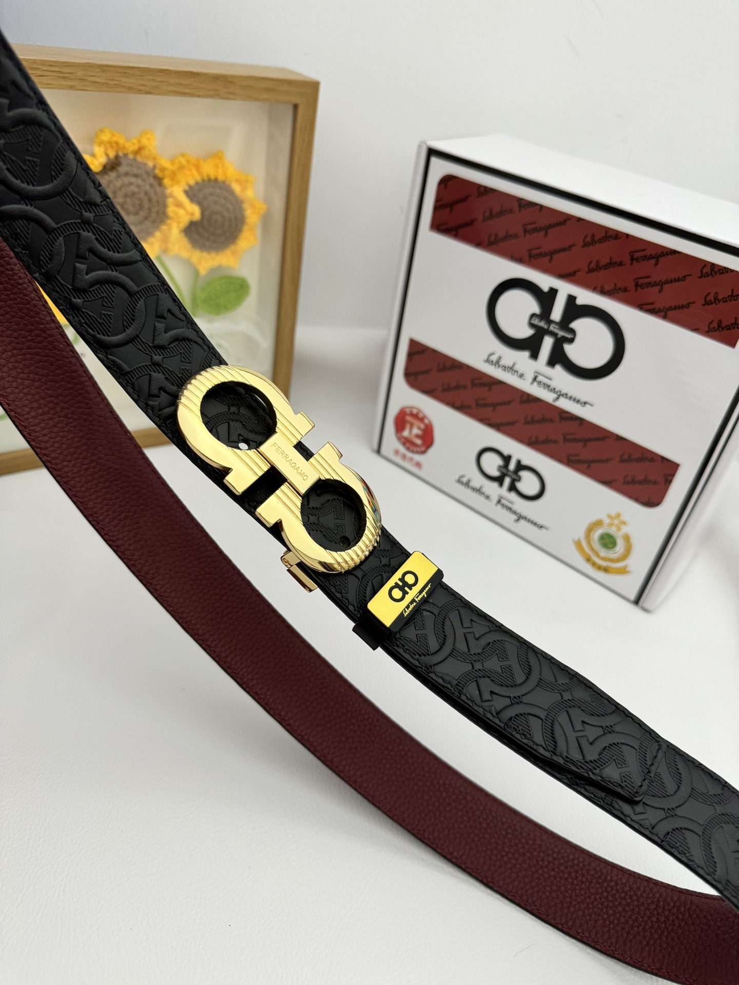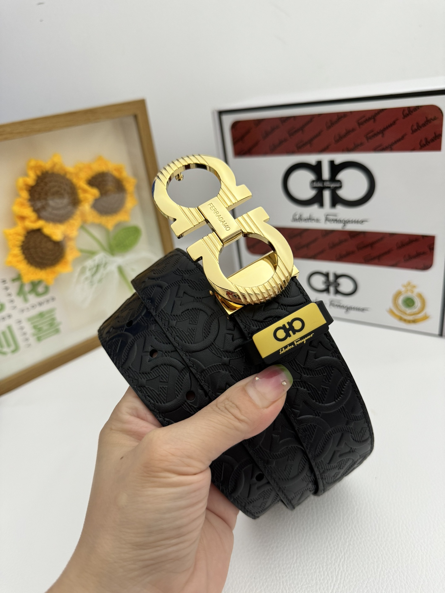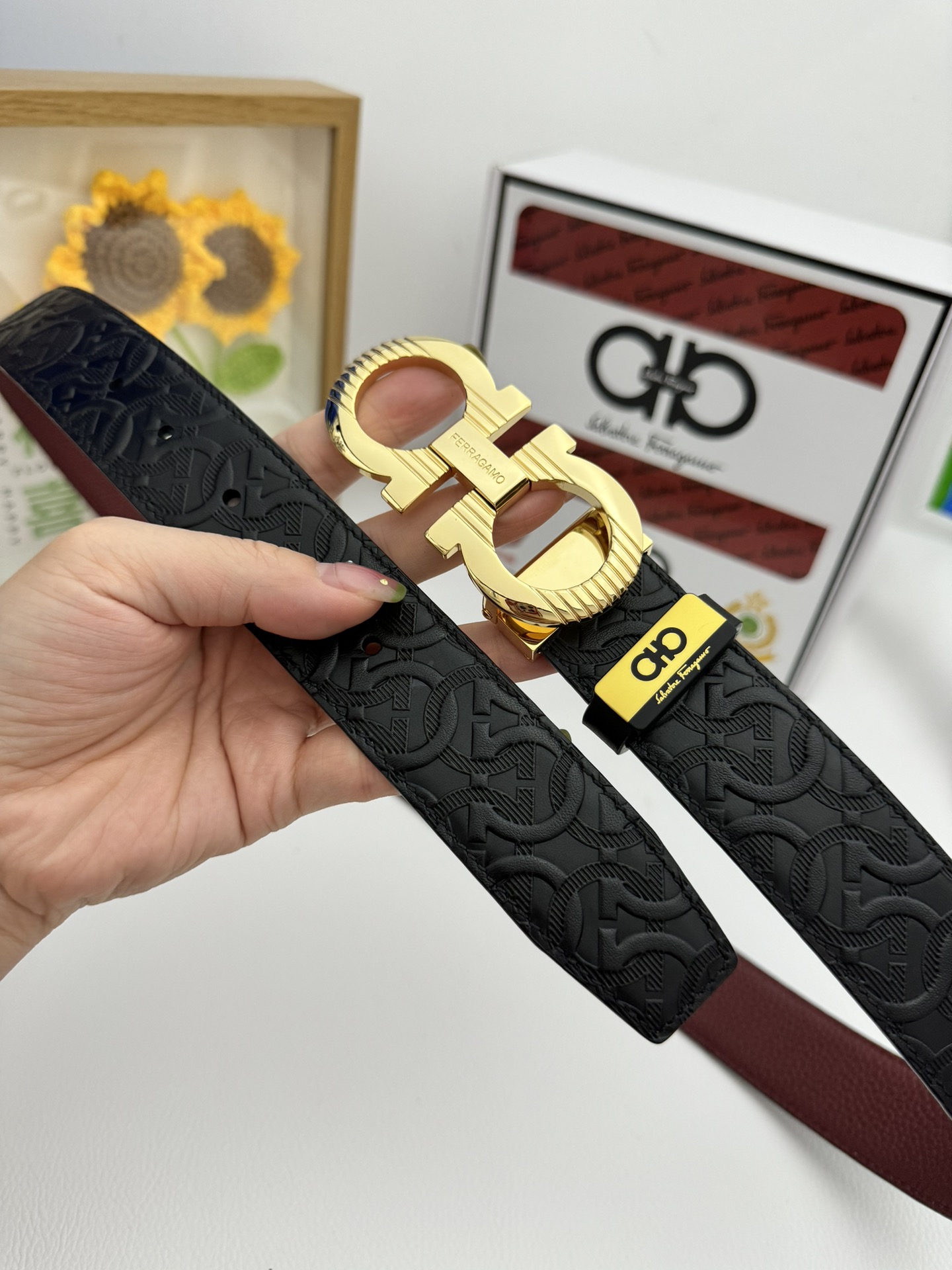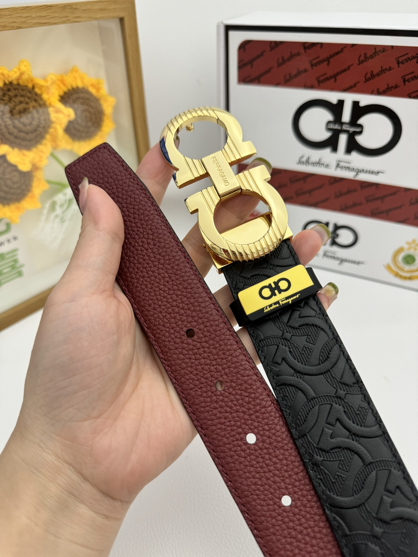 這款皮帶是AAAAA 1:1 質量(非常棒). 使用了和原版一模一樣的材料. 商標部分也保持了和菲拉格慕/Salvatore Ferragamo一樣. 圖片拍攝是實物皮帶拍攝, 您所收到的實物保證和我們圖片一模一樣.