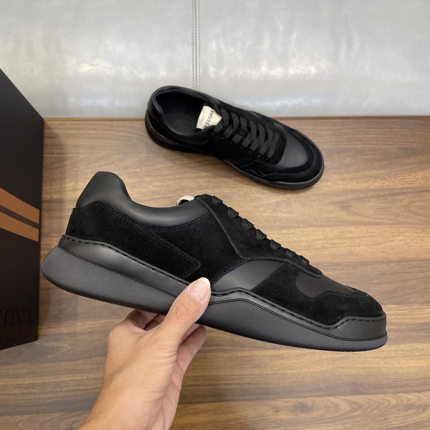 這款鞋子是AAAAA 1:1 質量(非常棒). 使用了和原版一模一樣的材料. 商標部分也保持了和Zegna一樣. 圖片拍攝是實物鞋子拍攝, 您所收到的實物保證和我們圖片一模一樣.