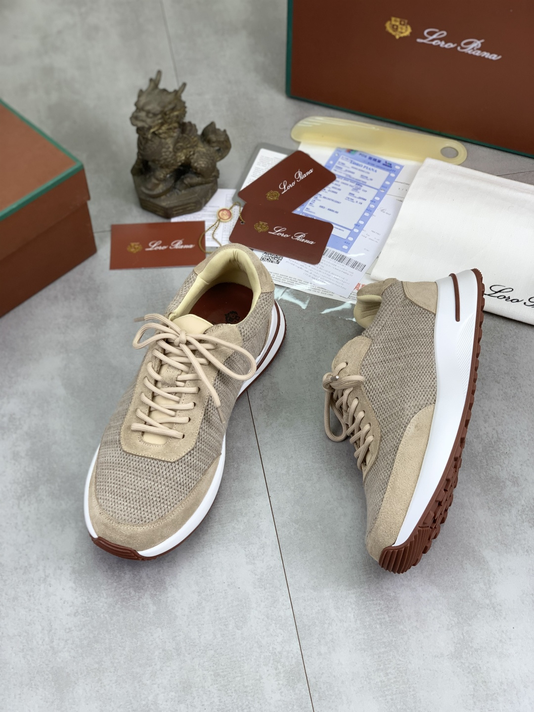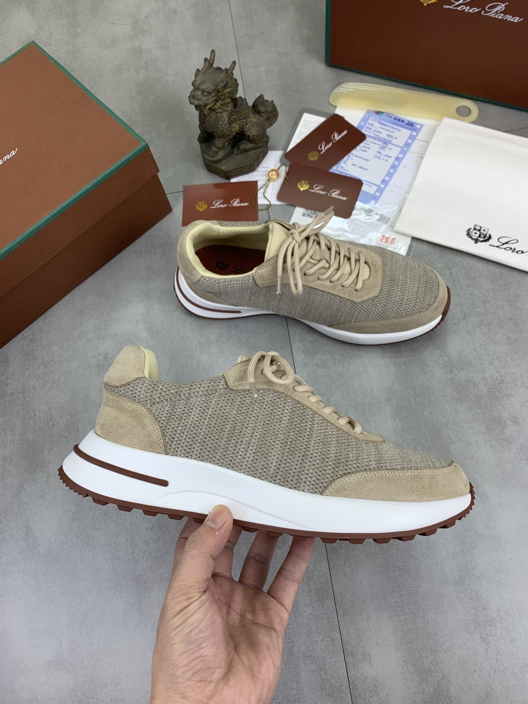 這款鞋子是AAAAA 1:1 質量(非常棒). 使用了和原版一模一樣的材料. 商標部分也保持了和Loro Piana一樣. 圖片拍攝是實物鞋子拍攝, 您所收到的實物保證和我們圖片一模一樣.