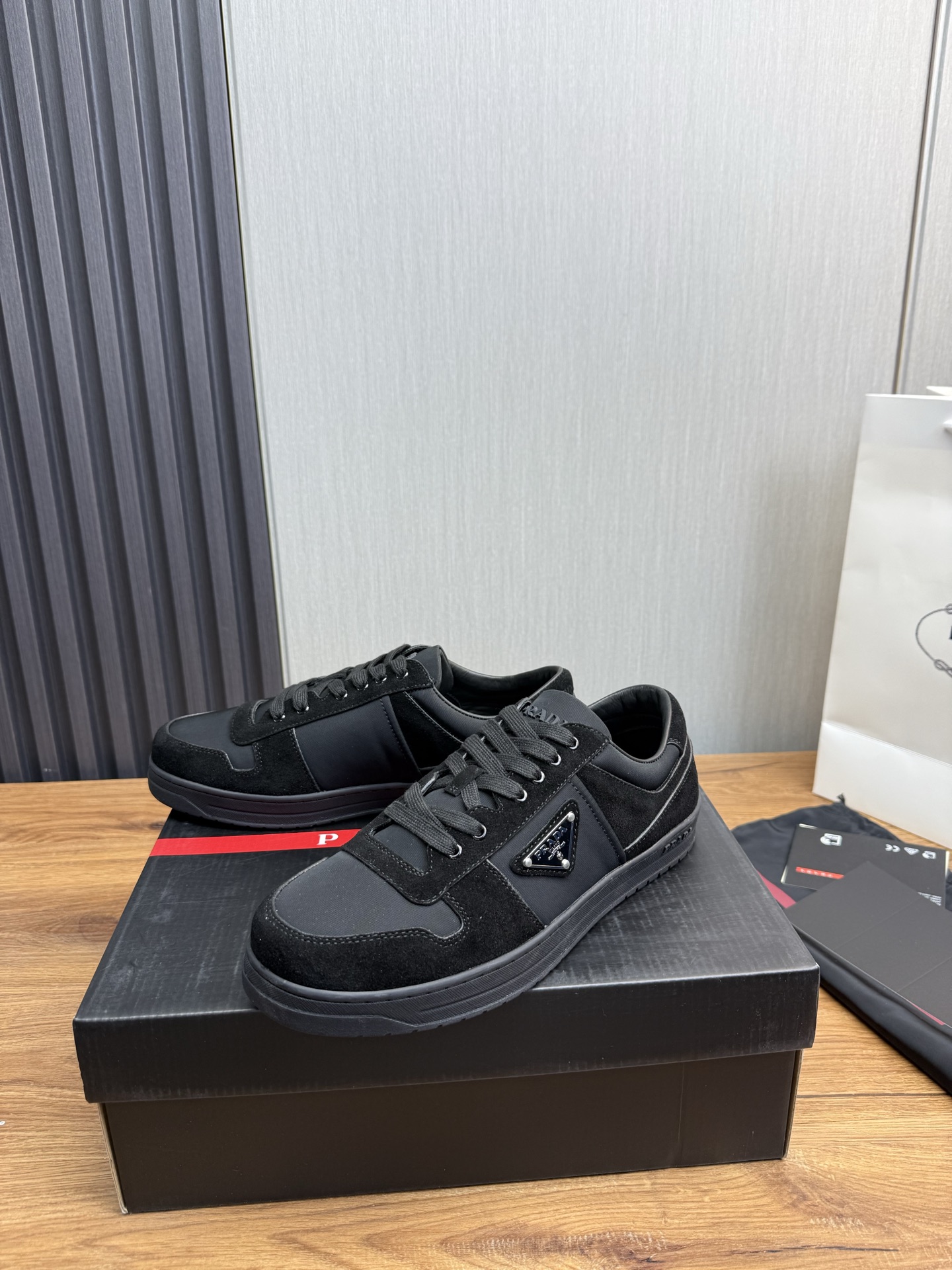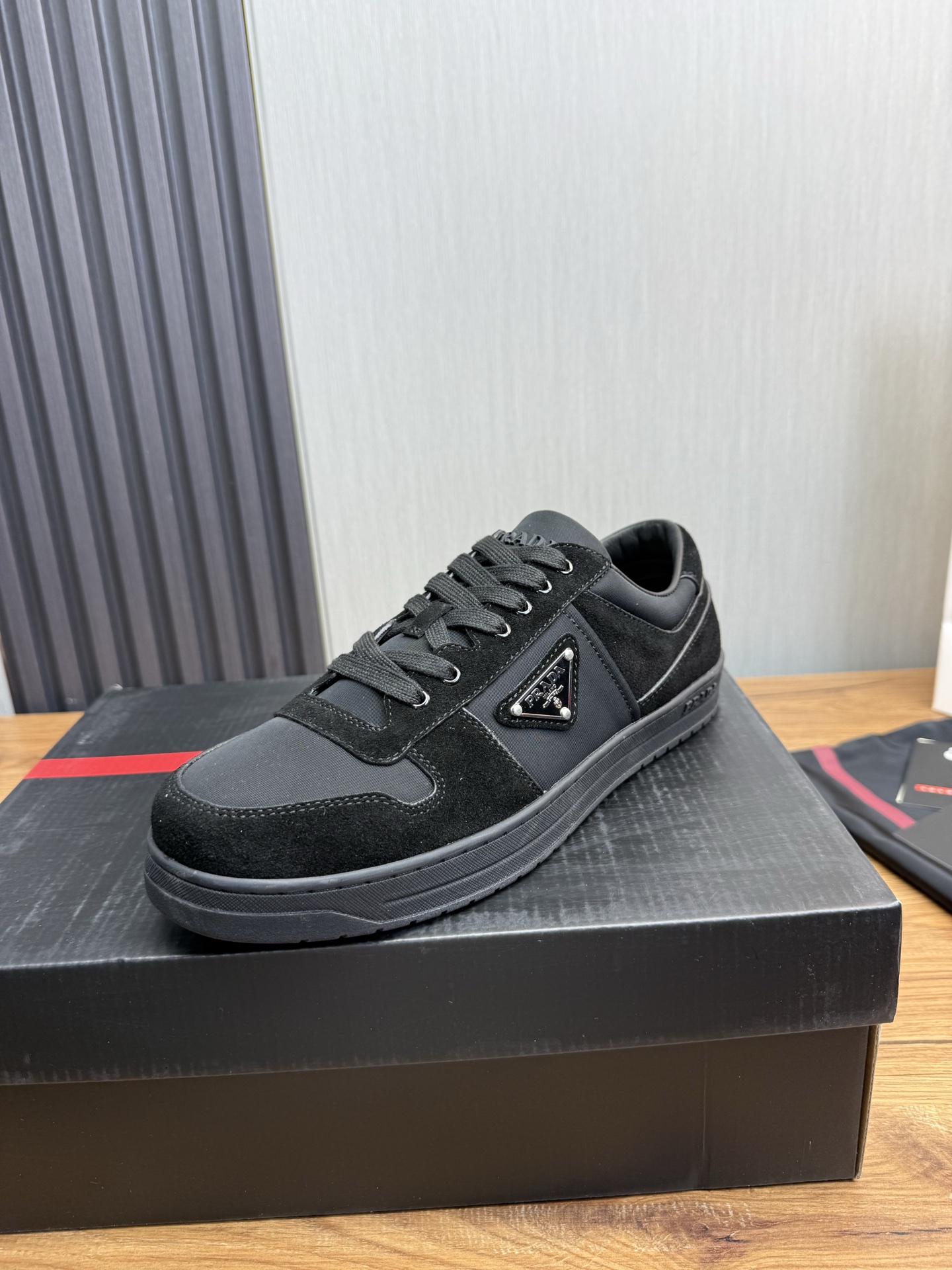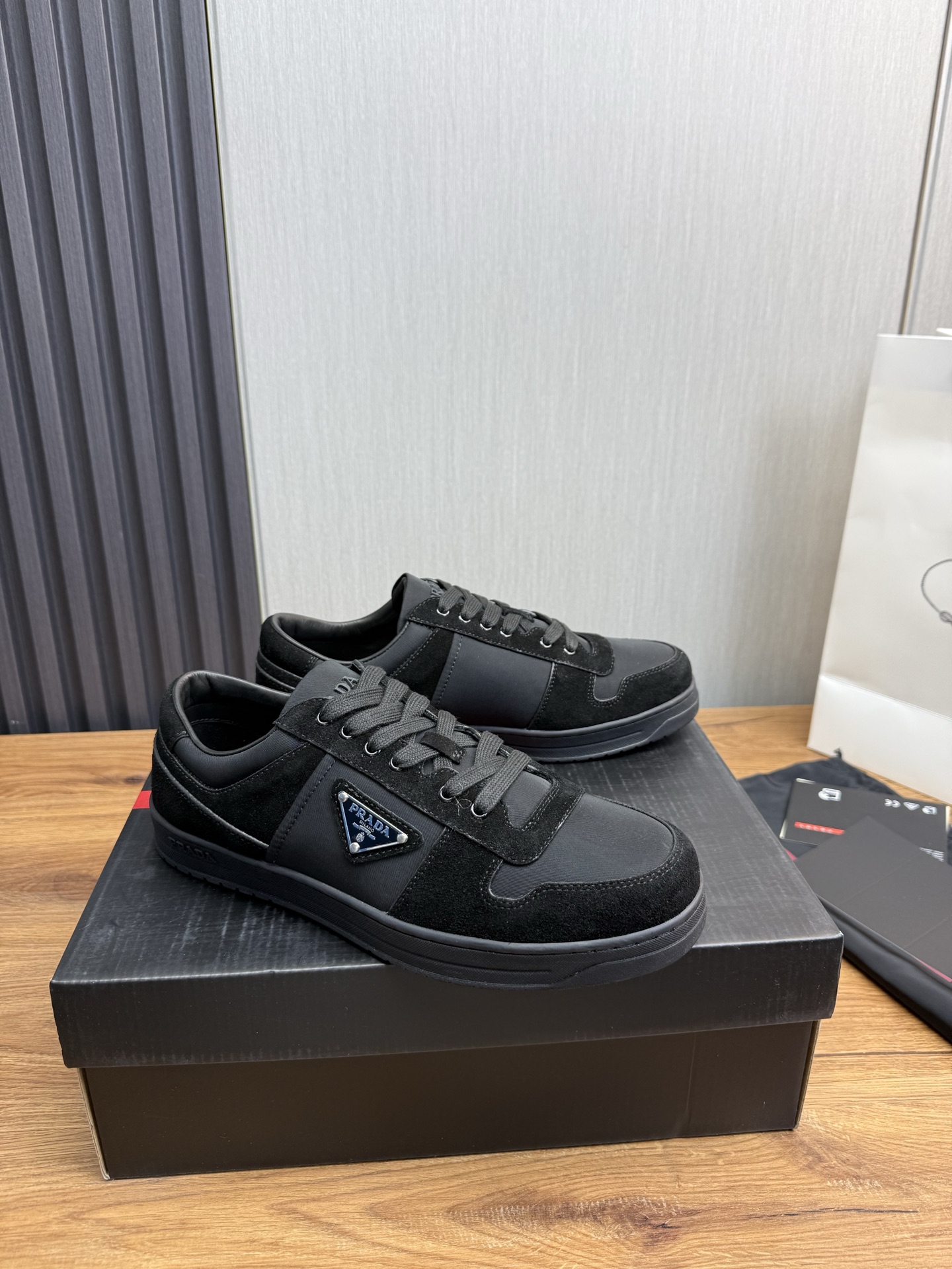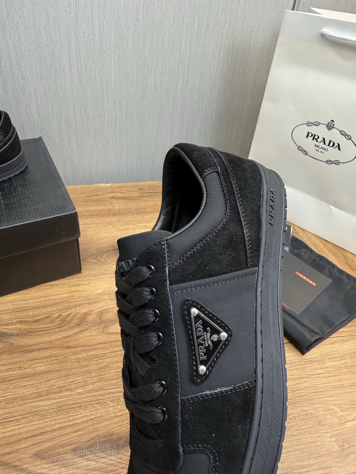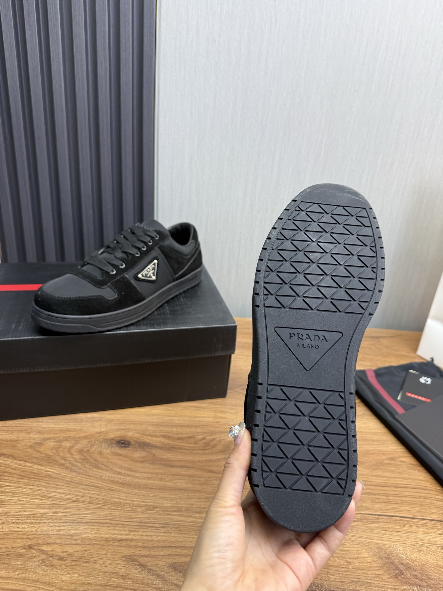 這款鞋子是AAAAA 1:1 質量(非常棒). 使用了和原版一模一樣的材料. 商標部分也保持了和普拉達/Prada一樣. 圖片拍攝是實物鞋子拍攝, 您所收到的實物保證和我們圖片一模一樣.