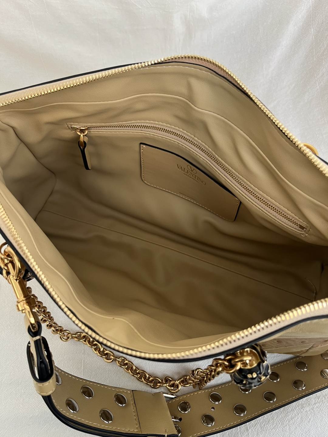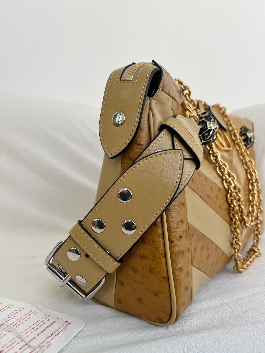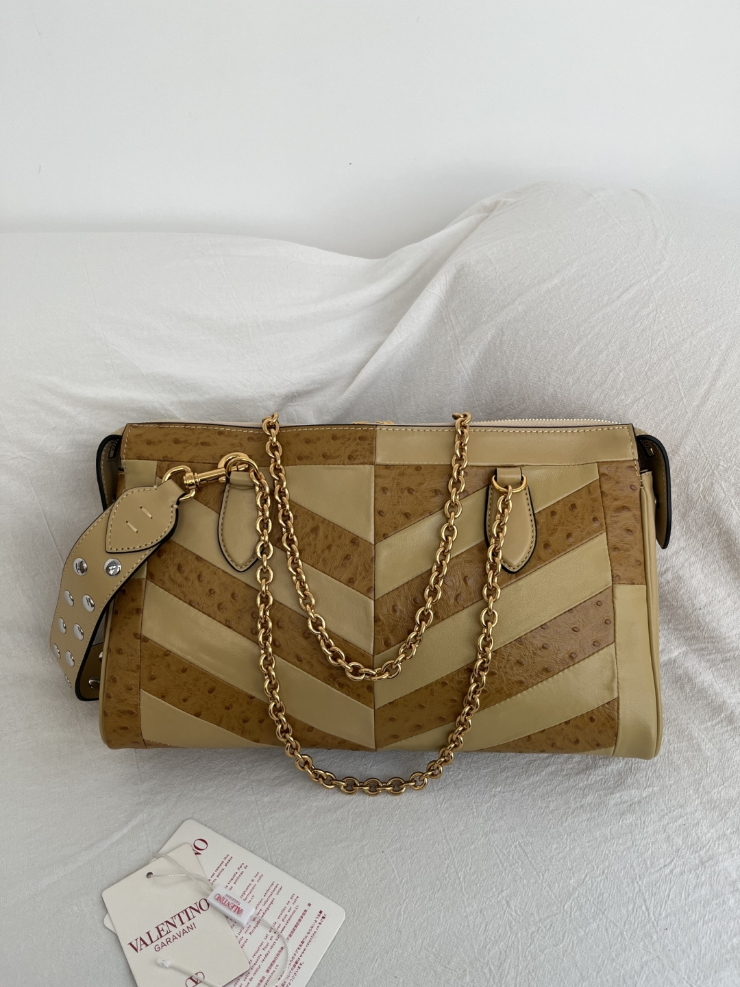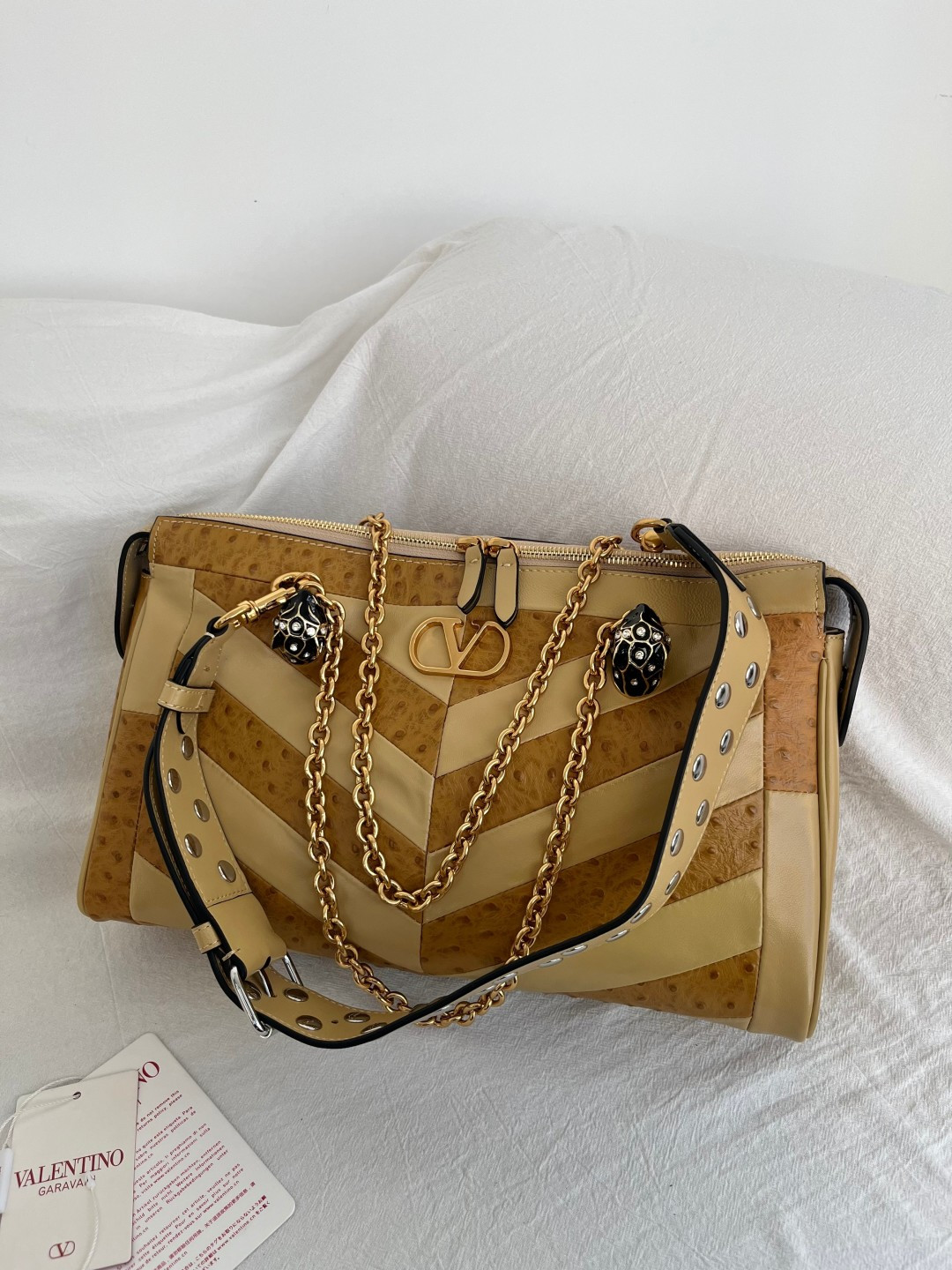 這款包包是AAAAA 1:1 質量(非常棒). 使用了和原版一模一樣的材料. 商標部分也保持了和瓦倫蒂諾/Valentino一樣. 圖片拍攝是實物包包拍攝, 您所收到的實物保證和我們圖片一模一樣.