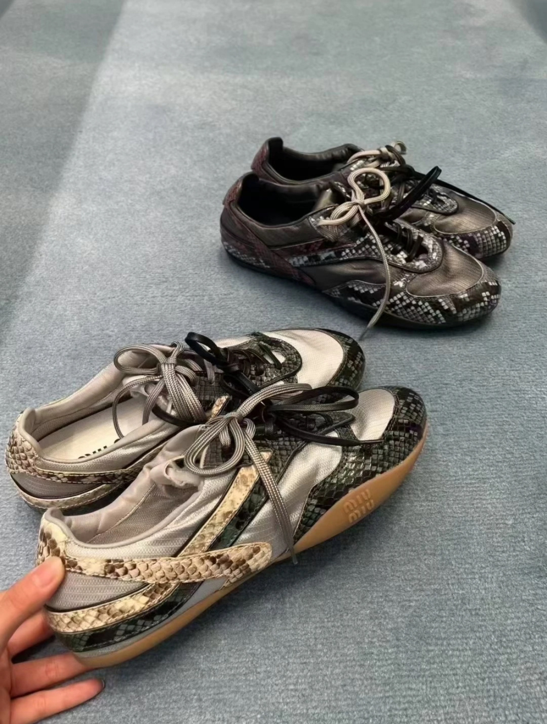 這款鞋子是AAAAA 1:1 質量(非常棒). 使用了和原版一模一樣的材料. 商標部分也保持了和繆繆/Miu Miu一樣. 圖片拍攝是實物鞋子拍攝, 您所收到的實物保證和我們圖片一模一樣.