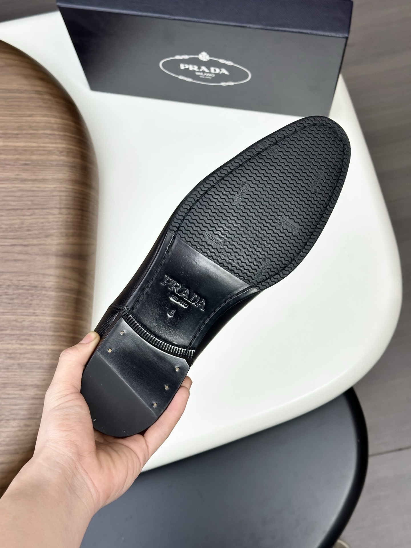 這款鞋子是AAAAA 1:1 質量(非常棒). 使用了和原版一模一樣的材料. 商標部分也保持了和普拉達/Prada一樣. 圖片拍攝是實物鞋子拍攝, 您所收到的實物保證和我們圖片一模一樣.
