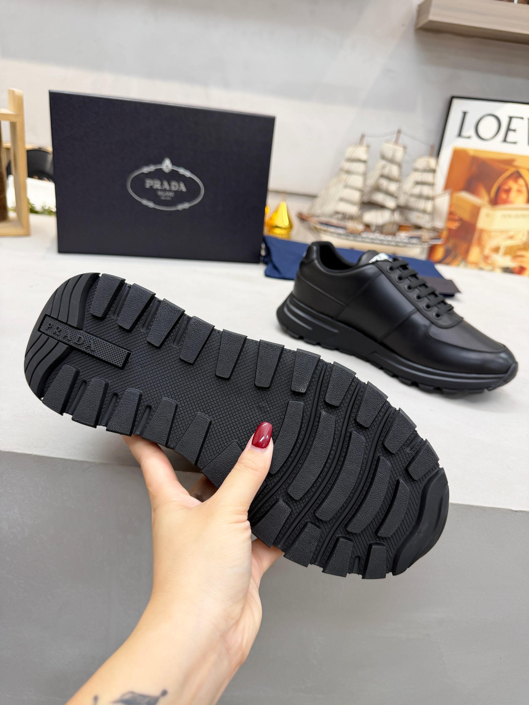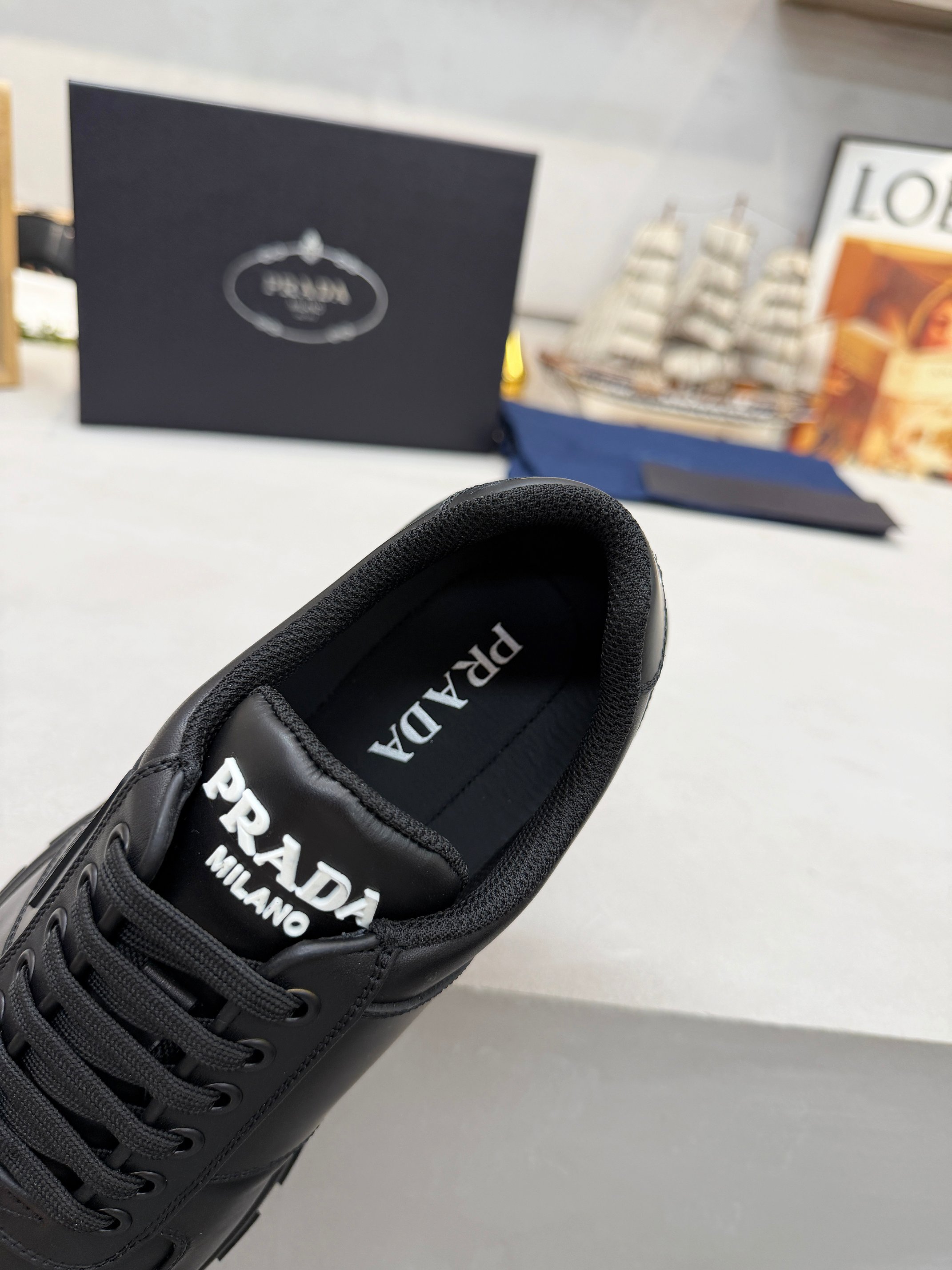這款鞋子是AAAAA 1:1 質量(非常棒). 使用了和原版一模一樣的材料. 商標部分也保持了和普拉達/Prada一樣. 圖片拍攝是實物鞋子拍攝, 您所收到的實物保證和我們圖片一模一樣.