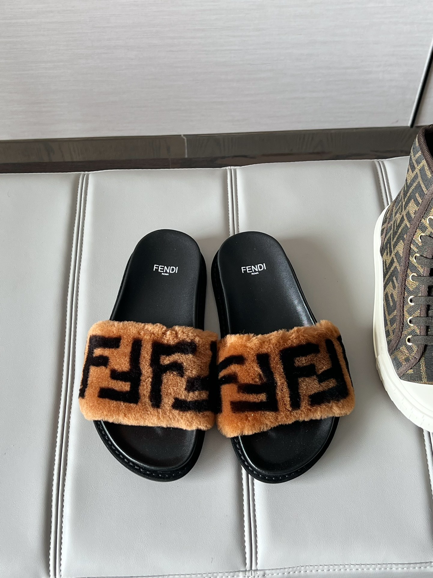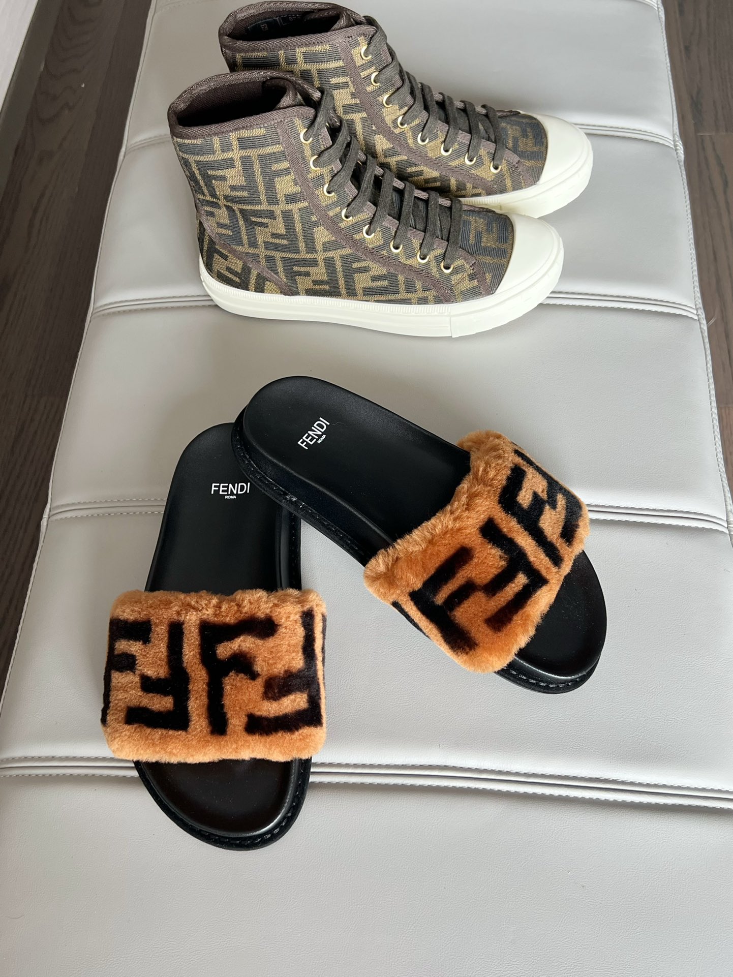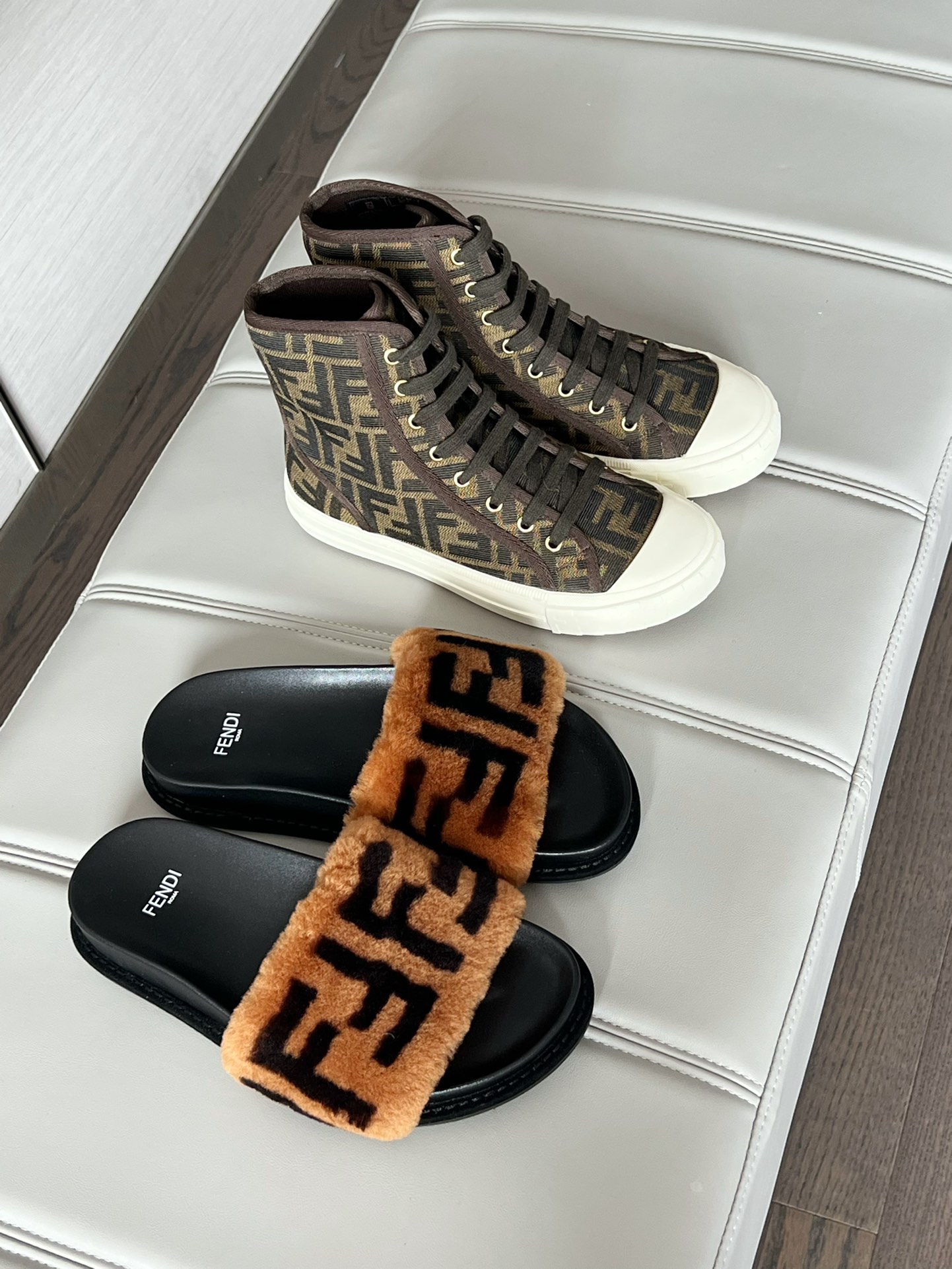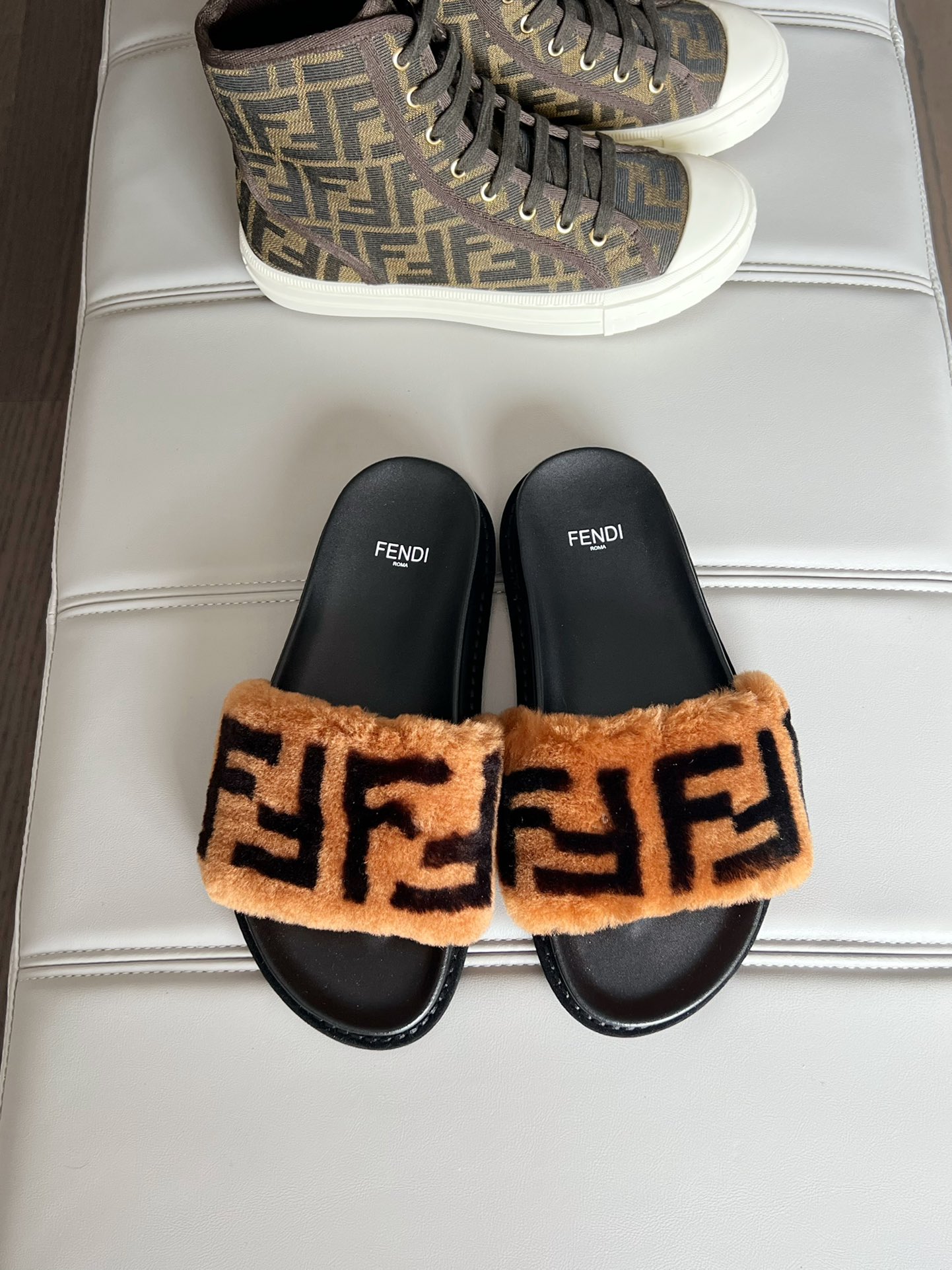 這款鞋子是AAAAA 1:1 質量(非常棒). 使用了和原版一模一樣的材料. 商標部分也保持了和芬迪/Fendi一樣. 圖片拍攝是實物鞋子拍攝, 您所收到的實物保證和我們圖片一模一樣.