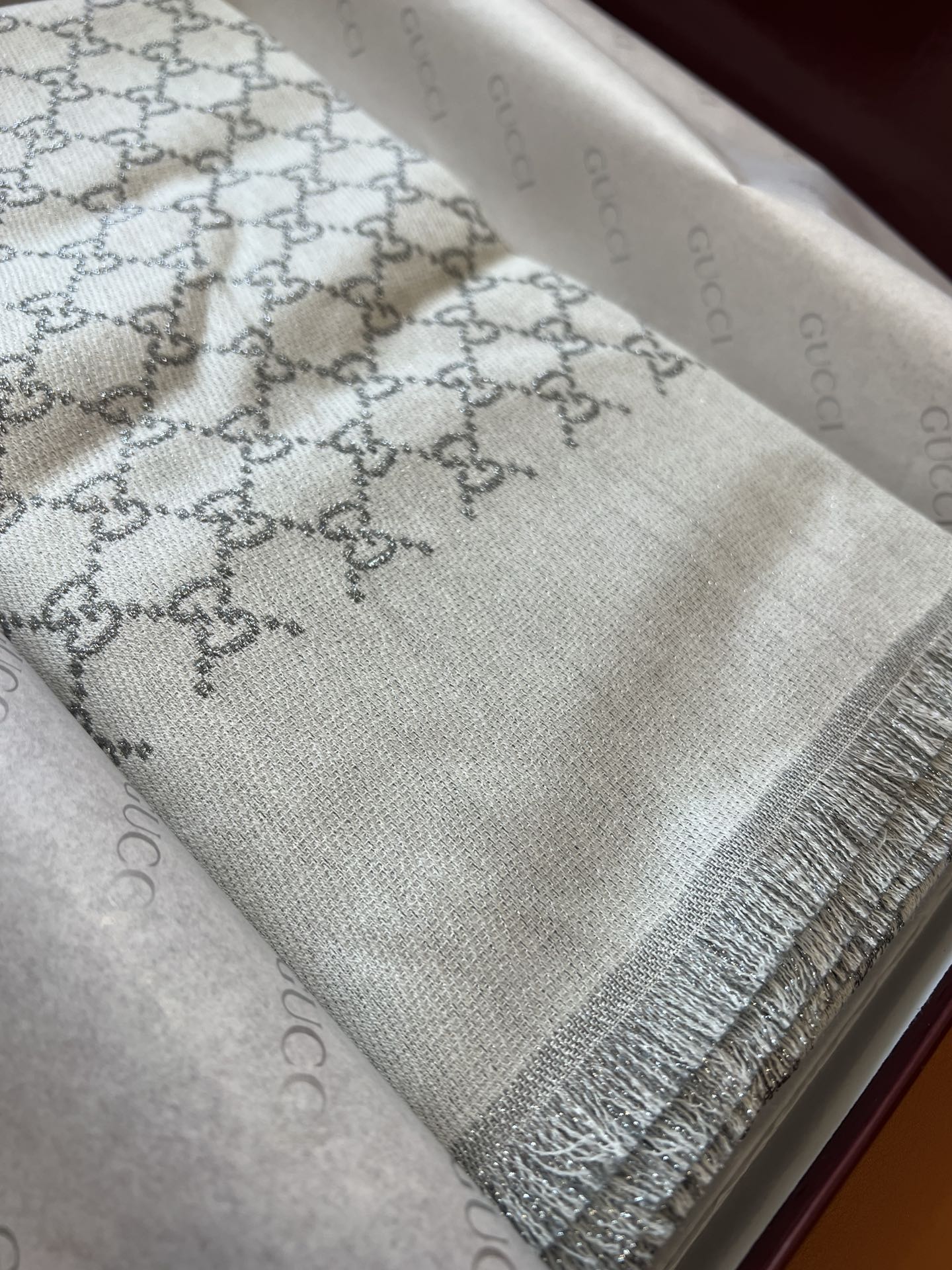 這款圍巾是AAAAA 1:1 質量(非常棒). 使用了和原版一模一樣的材料. 商標部分也保持了和古奇/Gucci一樣. 圖片拍攝是實物圍巾拍攝, 您所收到的實物保證和我們圖片一模一樣.