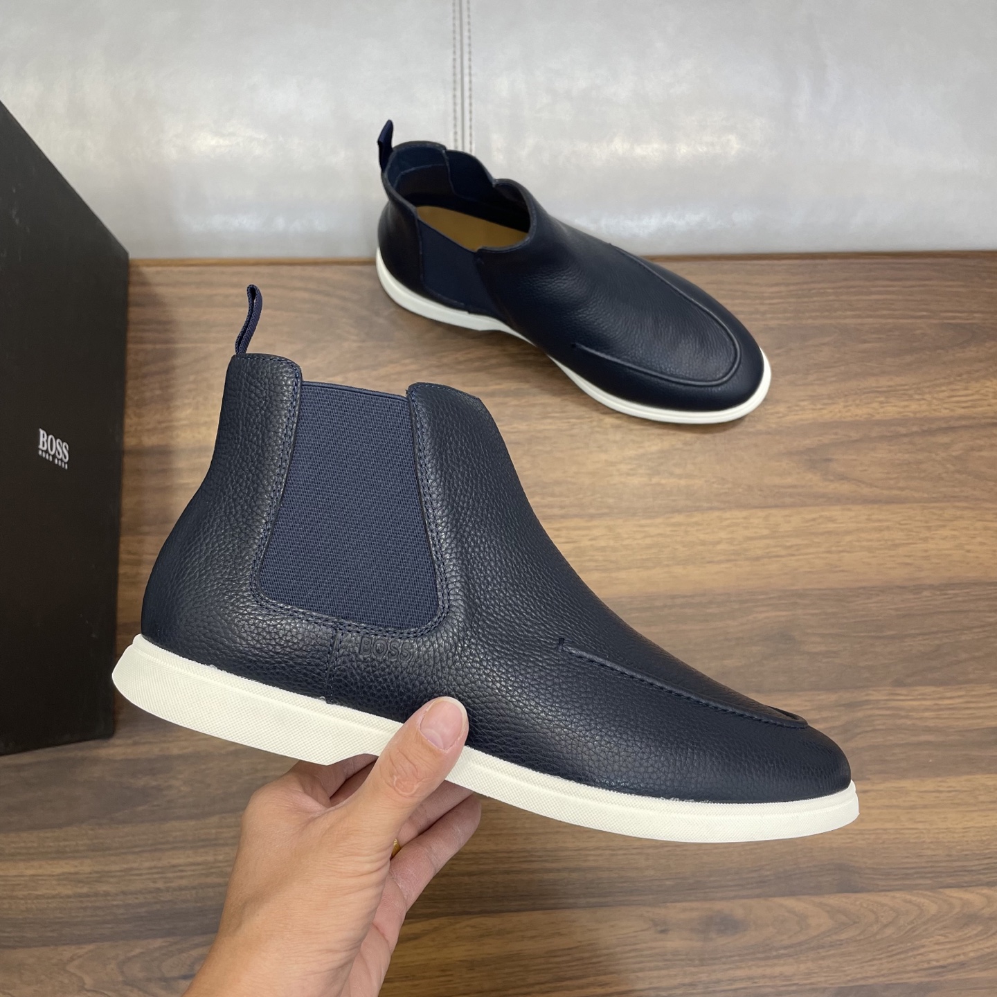 這款鞋子是AAAAA 1:1 質量(非常棒). 使用了和原版一模一樣的材料. 商標部分也保持了和BOSS一樣. 圖片拍攝是實物鞋子拍攝, 您所收到的實物保證和我們圖片一模一樣.