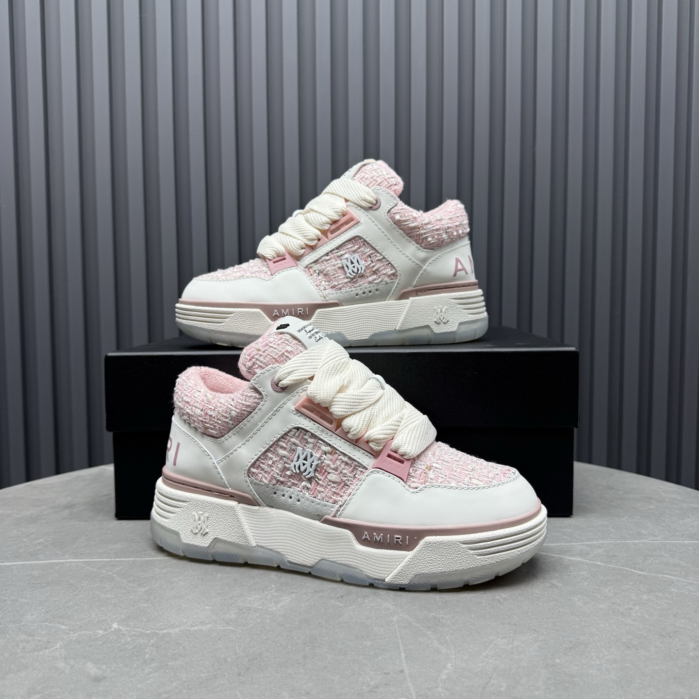 這款鞋子是AAAAA 1:1 質量(非常棒). 使用了和原版一模一樣的材料. 商標部分也保持了和AMIRI一樣. 圖片拍攝是實物鞋子拍攝, 您所收到的實物保證和我們圖片一模一樣.
