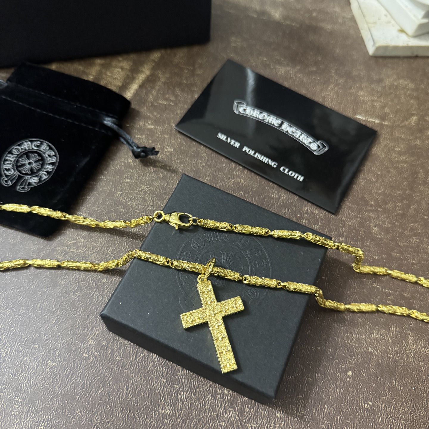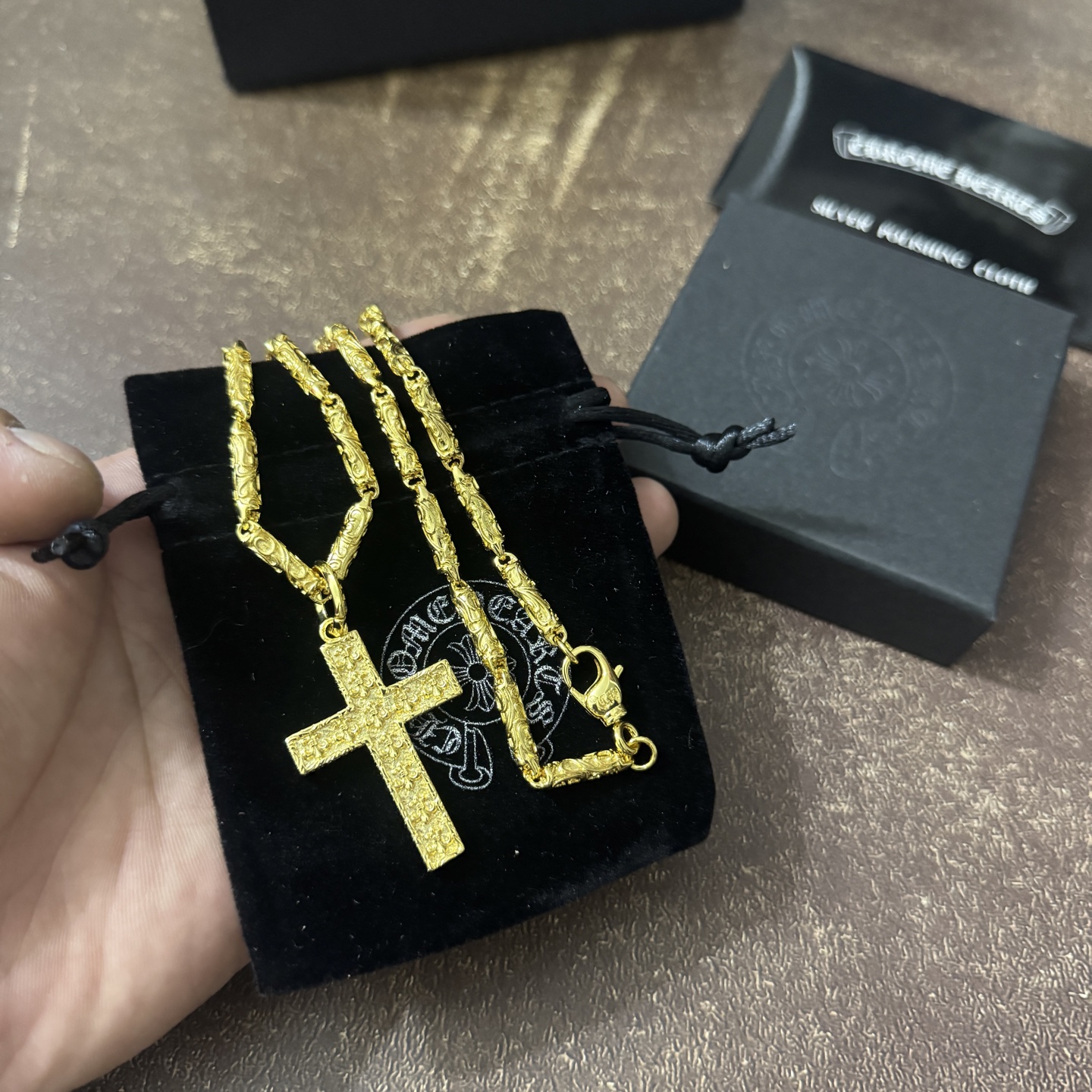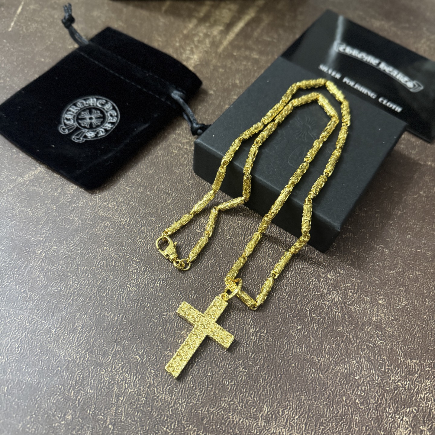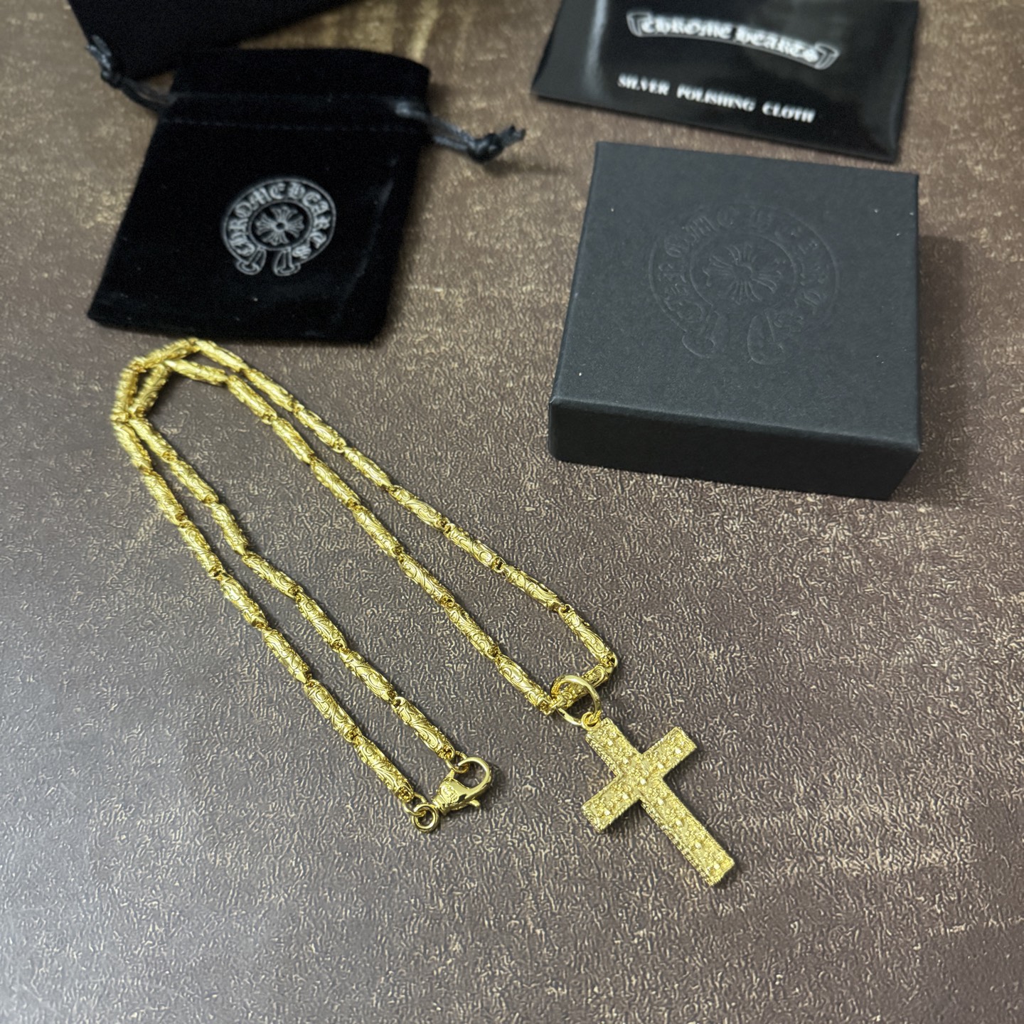 這款首飾是AAAAA 1:1 質量(非常棒). 使用了和原版一模一樣的材料. 商標部分也保持了和鉻心/Chrome Hearts一樣. 圖片拍攝是實物首飾拍攝, 您所收到的實物保證和我們圖片一模一樣.