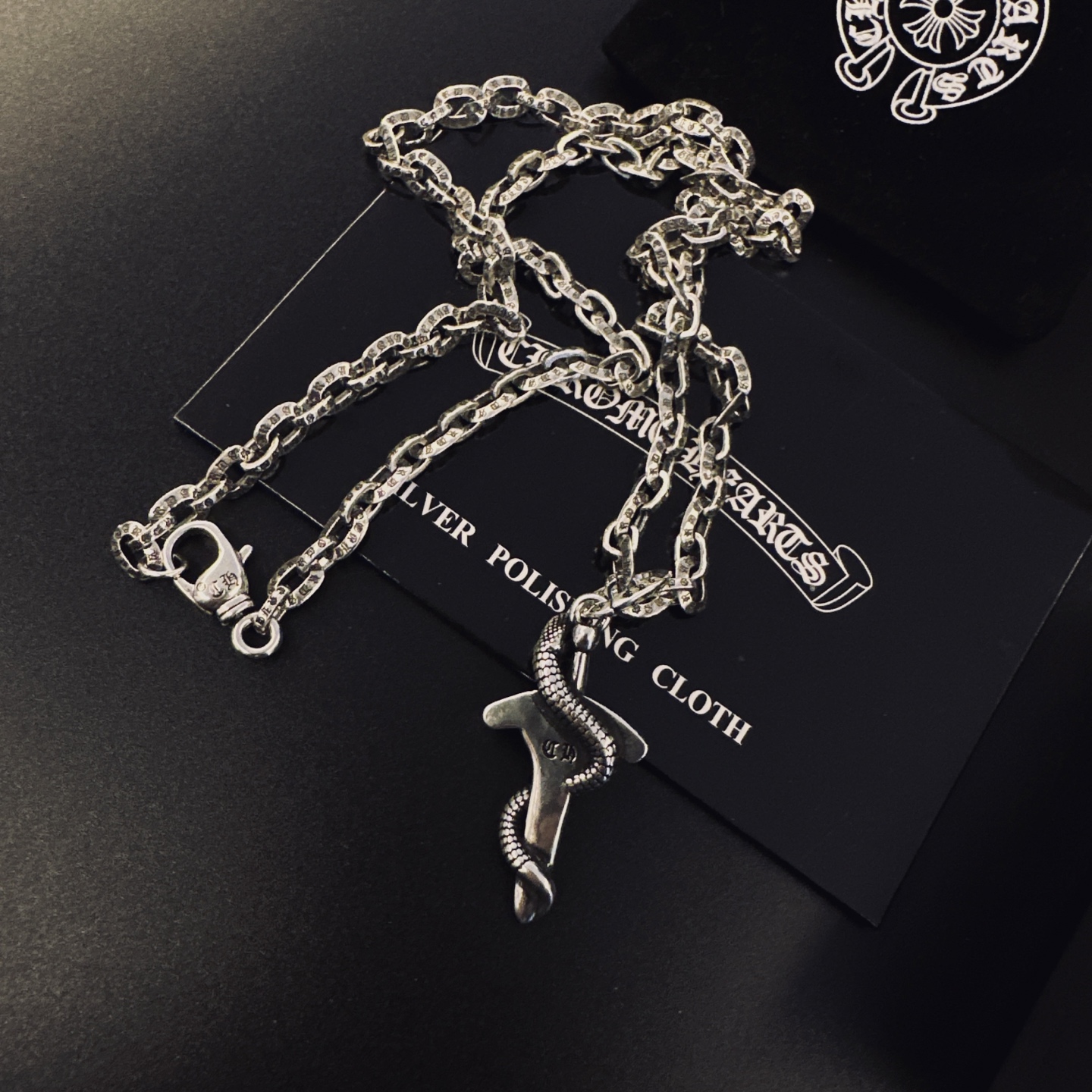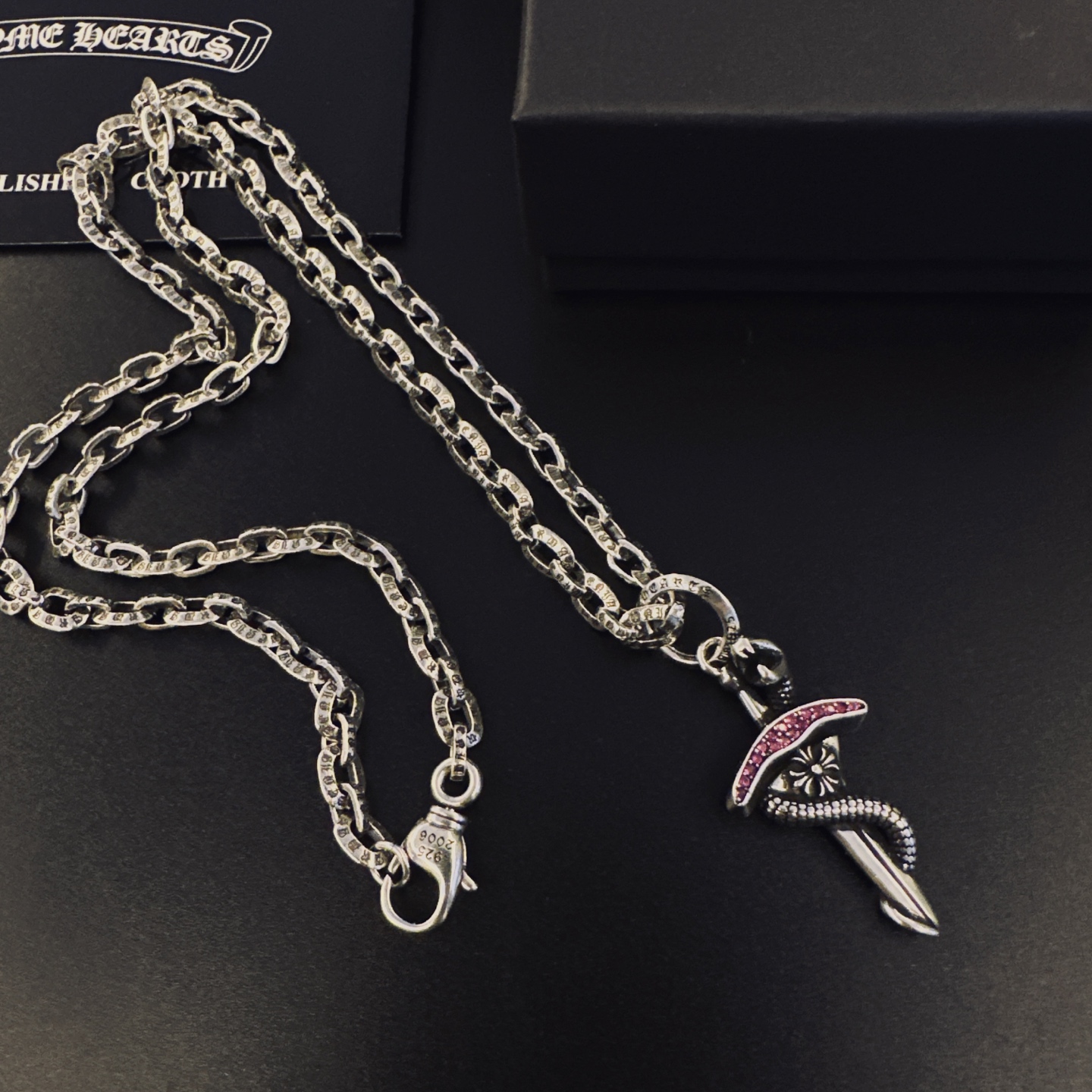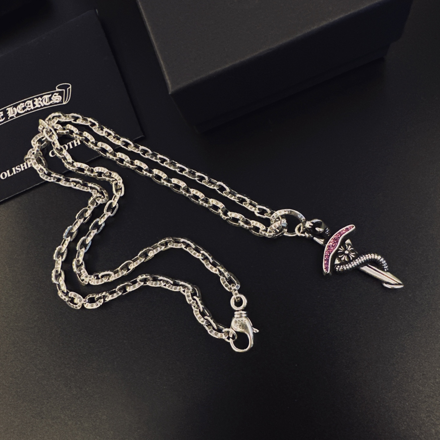 這款首飾是AAAAA 1:1 質量(非常棒). 使用了和原版一模一樣的材料. 商標部分也保持了和鉻心/Chrome Hearts一樣. 圖片拍攝是實物首飾拍攝, 您所收到的實物保證和我們圖片一模一樣.