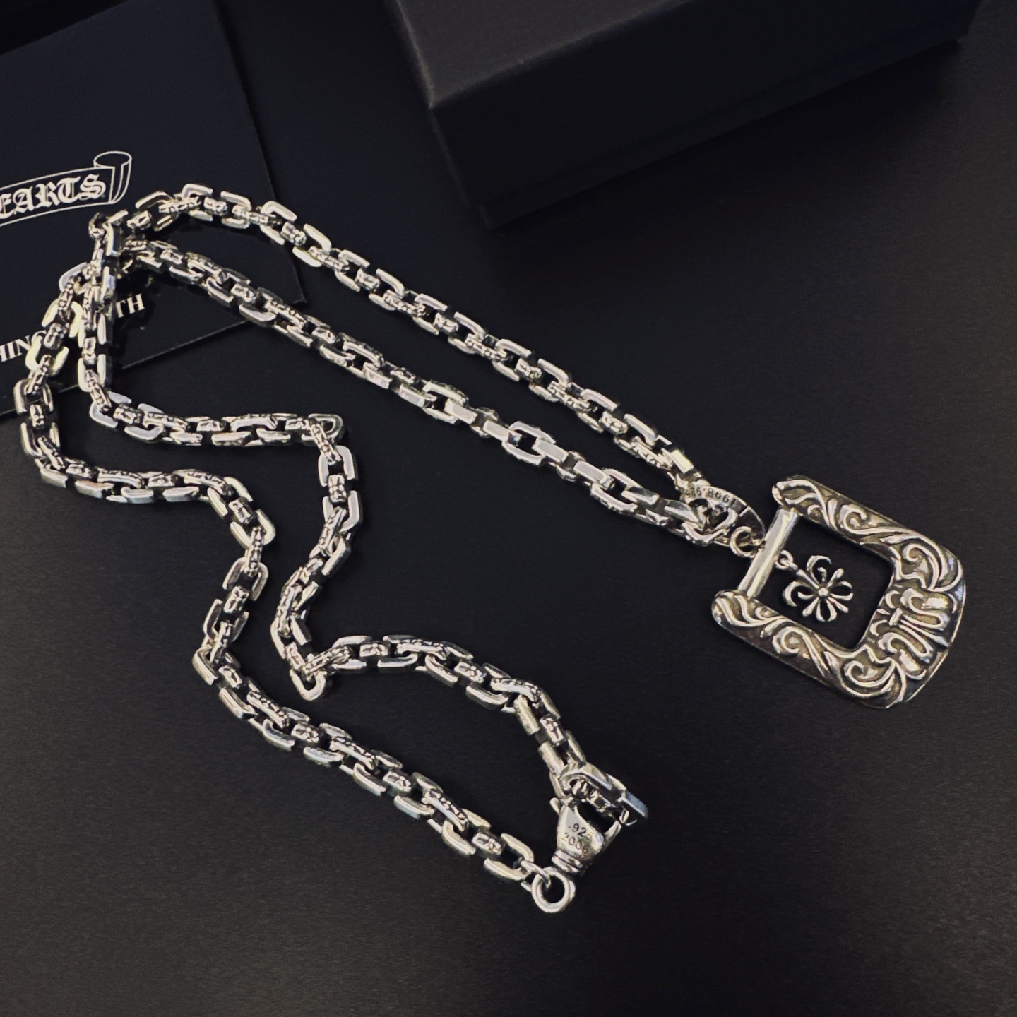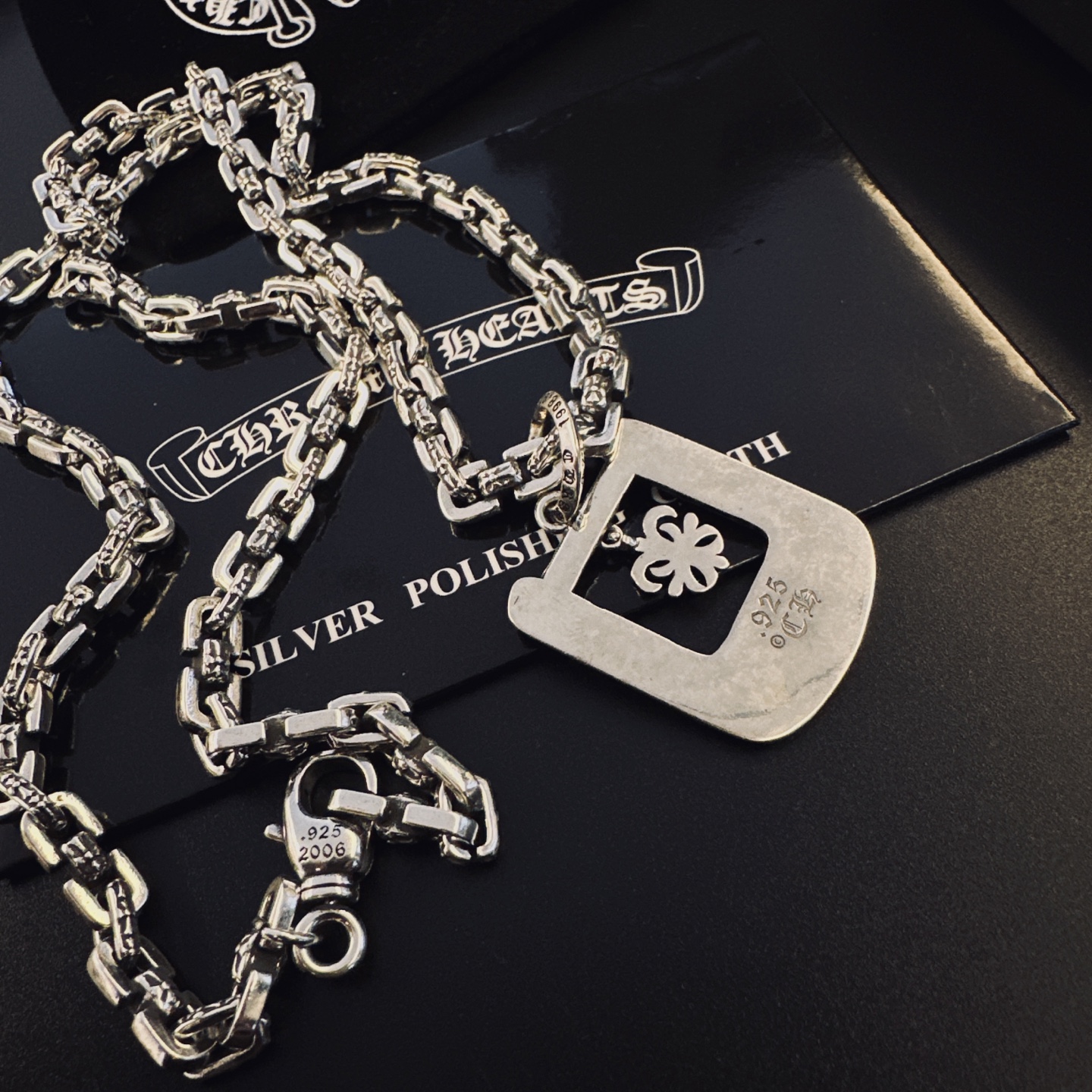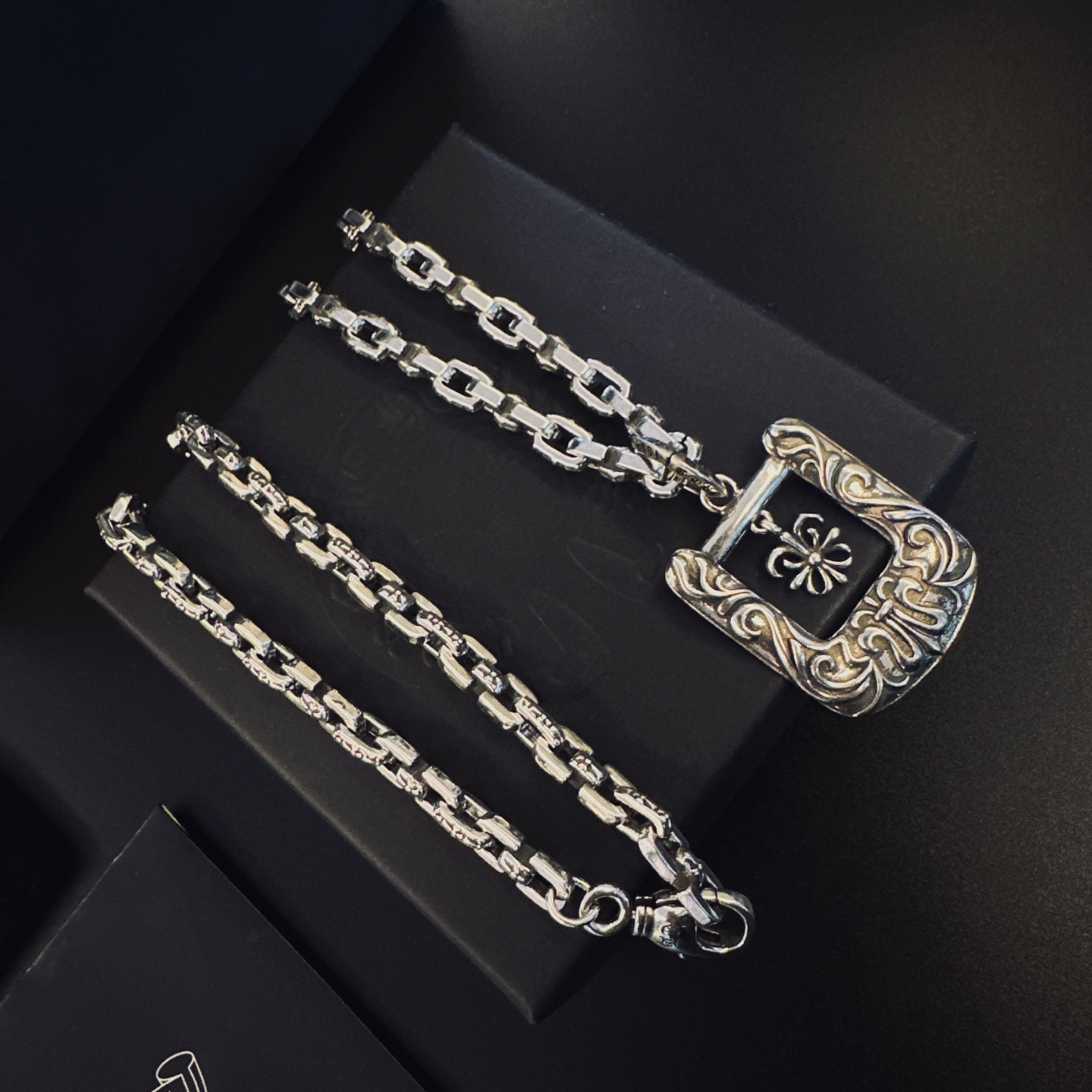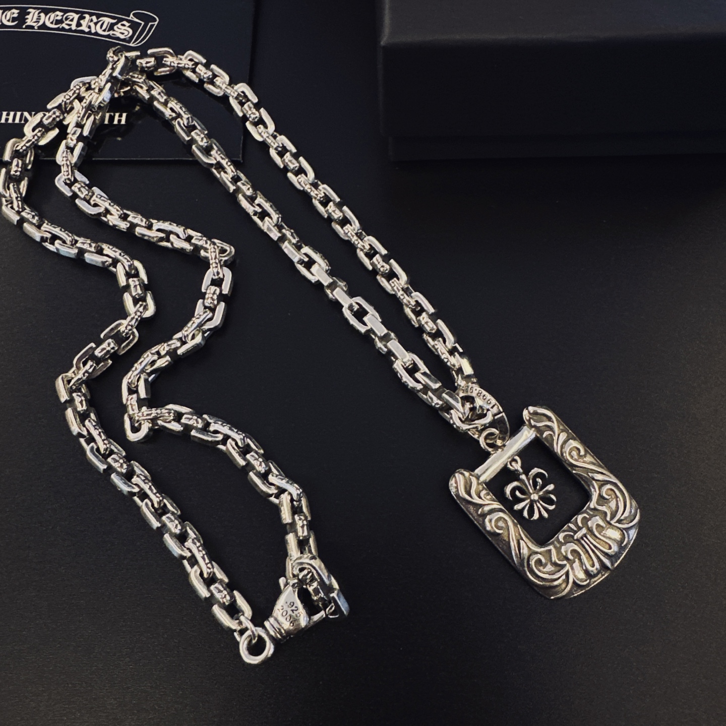 這款首飾是AAAAA 1:1 質量(非常棒). 使用了和原版一模一樣的材料. 商標部分也保持了和鉻心/Chrome Hearts一樣. 圖片拍攝是實物首飾拍攝, 您所收到的實物保證和我們圖片一模一樣.