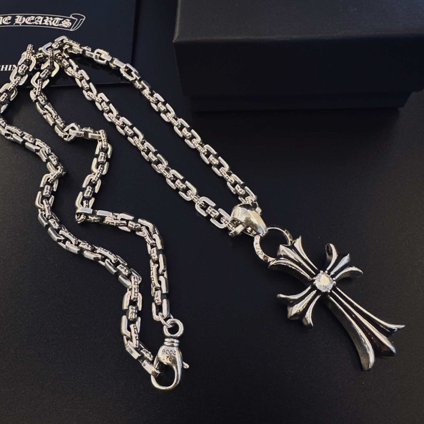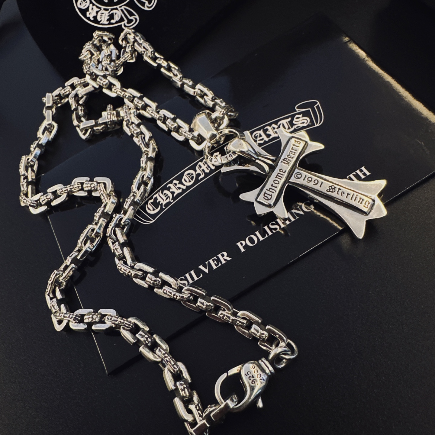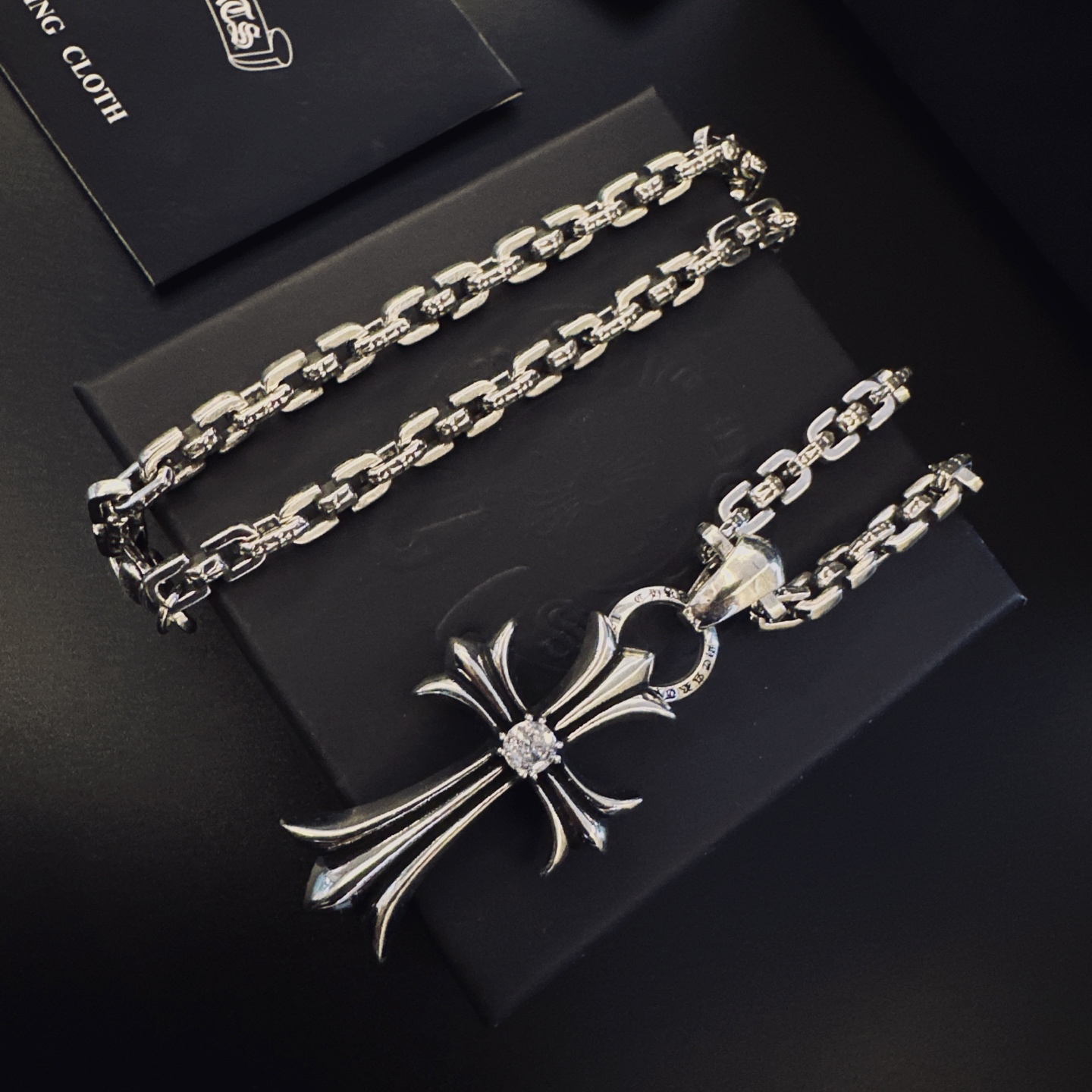 這款首飾是AAAAA 1:1 質量(非常棒). 使用了和原版一模一樣的材料. 商標部分也保持了和鉻心/Chrome Hearts一樣. 圖片拍攝是實物首飾拍攝, 您所收到的實物保證和我們圖片一模一樣.