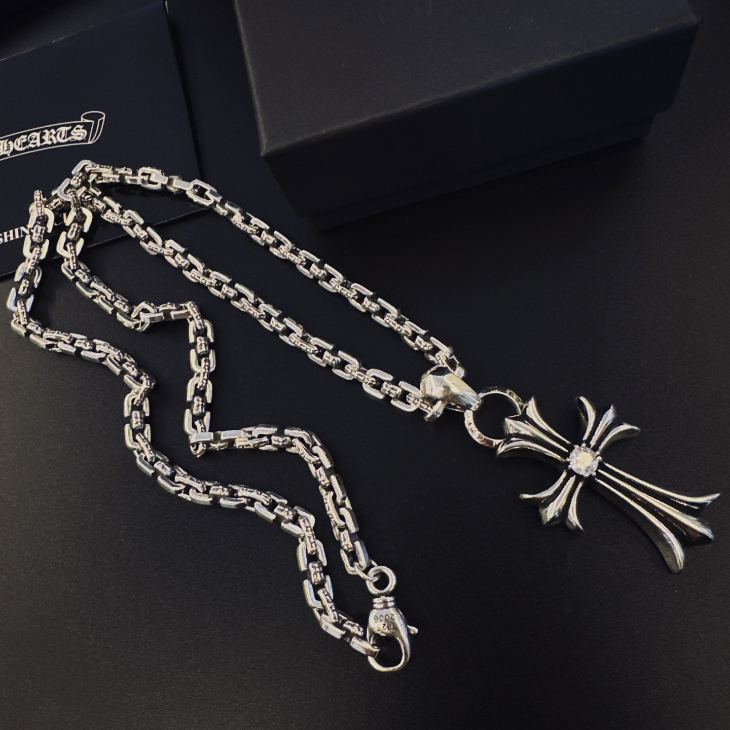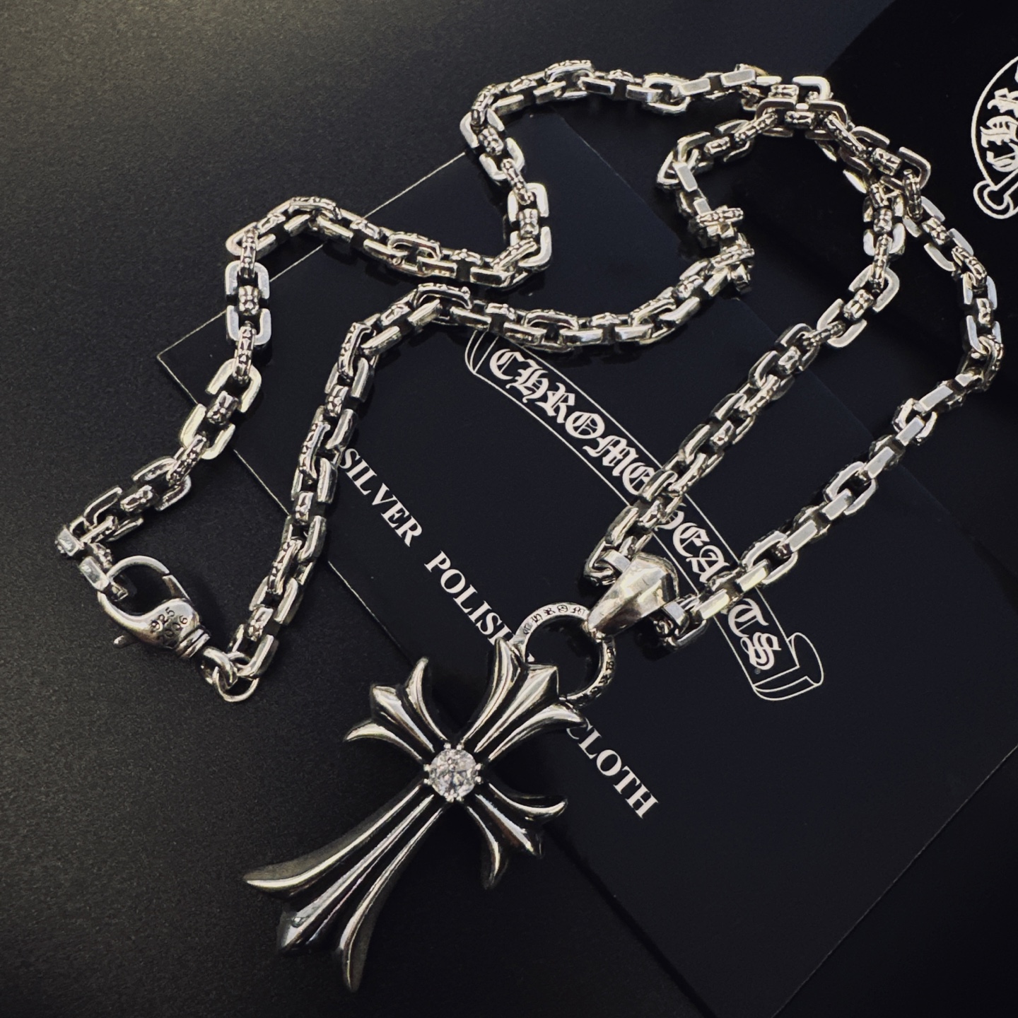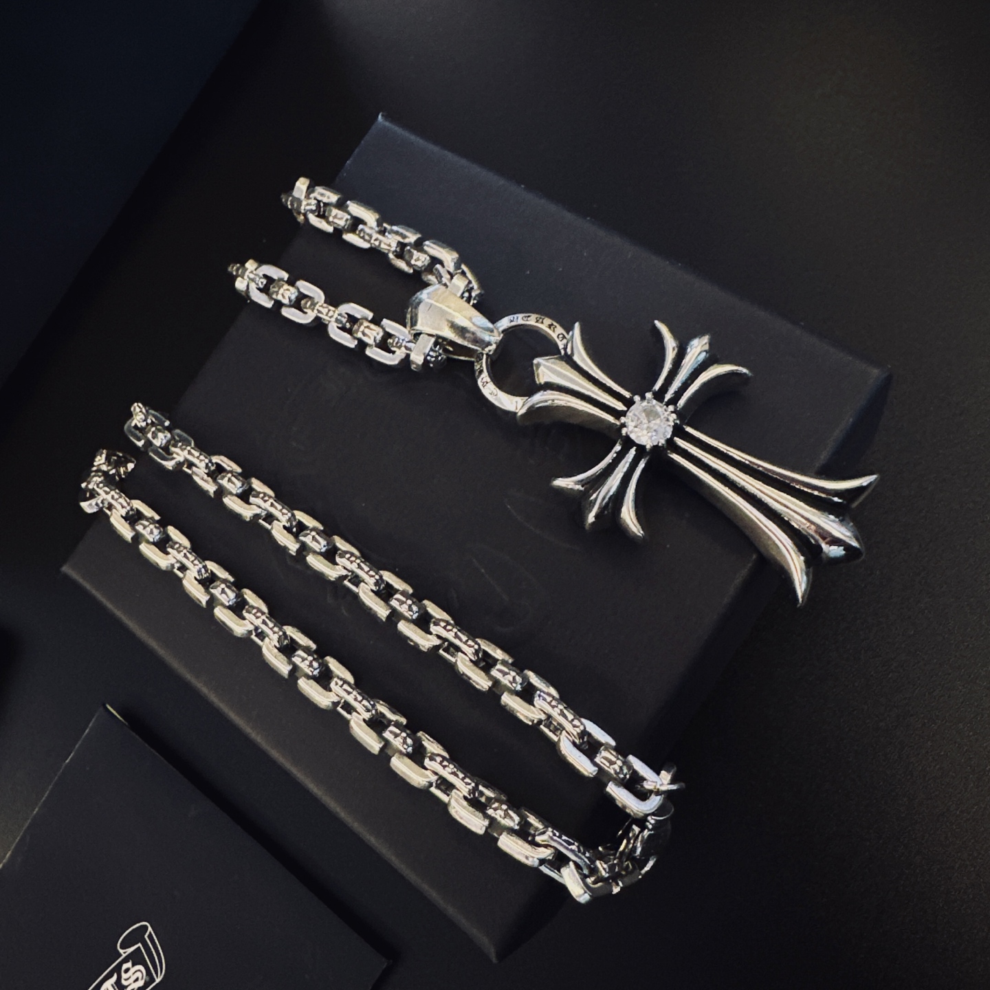 這款首飾是AAAAA 1:1 質量(非常棒). 使用了和原版一模一樣的材料. 商標部分也保持了和鉻心/Chrome Hearts一樣. 圖片拍攝是實物首飾拍攝, 您所收到的實物保證和我們圖片一模一樣.