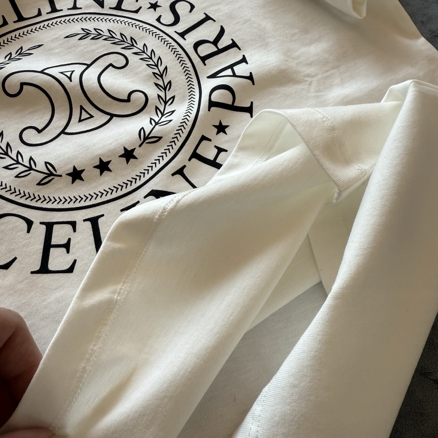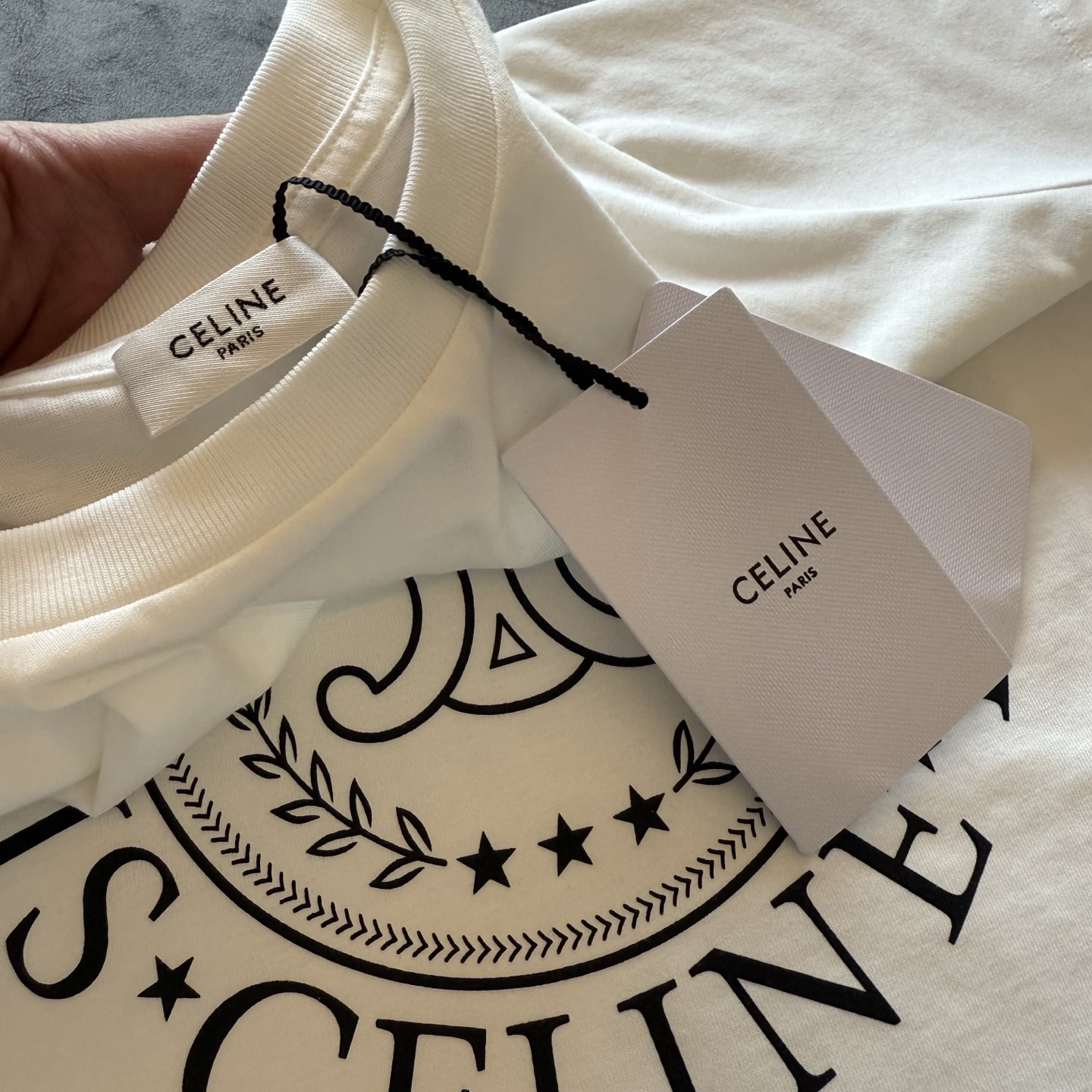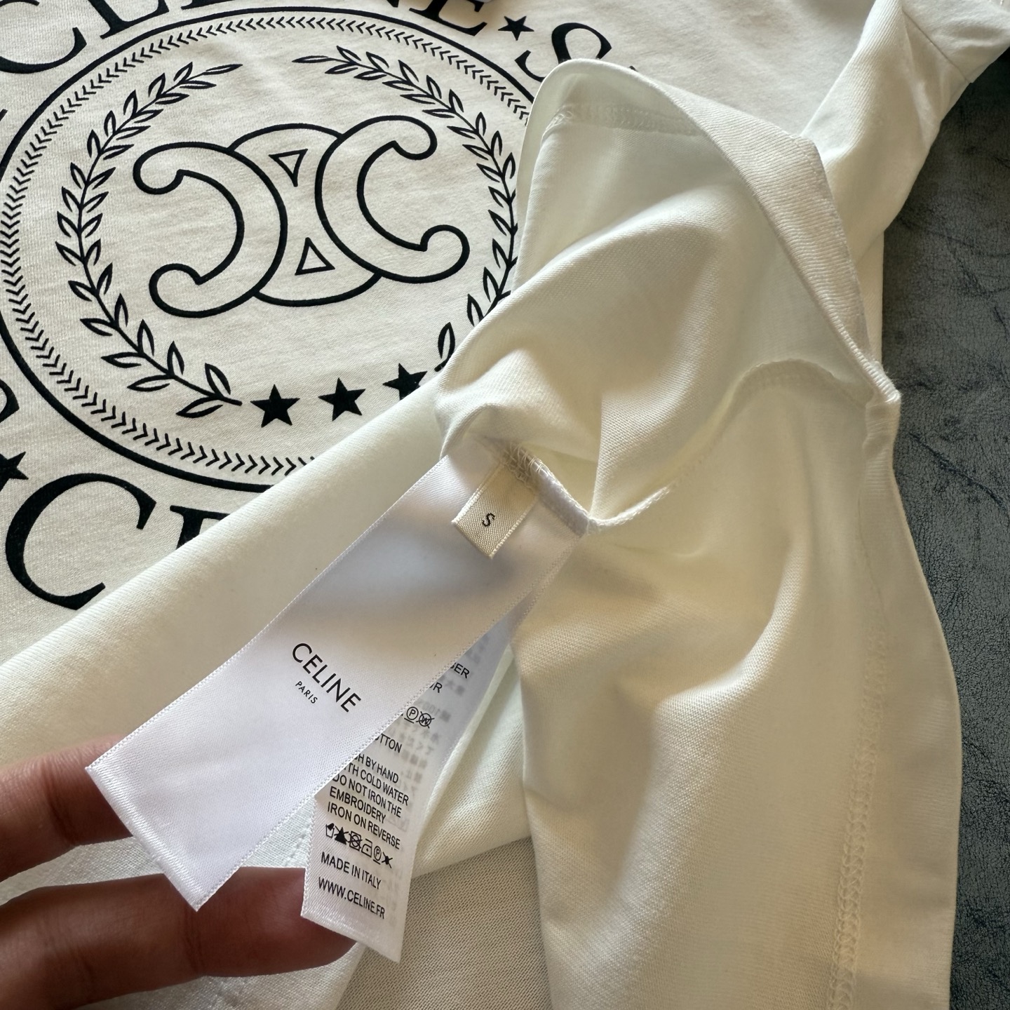 這款衣服是AAAAA 1:1 質量(非常棒). 使用了和原版一模一樣的材料. 商標部分也保持了和思琳/赛琳/Celine一樣. 圖片拍攝是實物衣服拍攝, 您所收到的實物保證和我們圖片一模一樣.