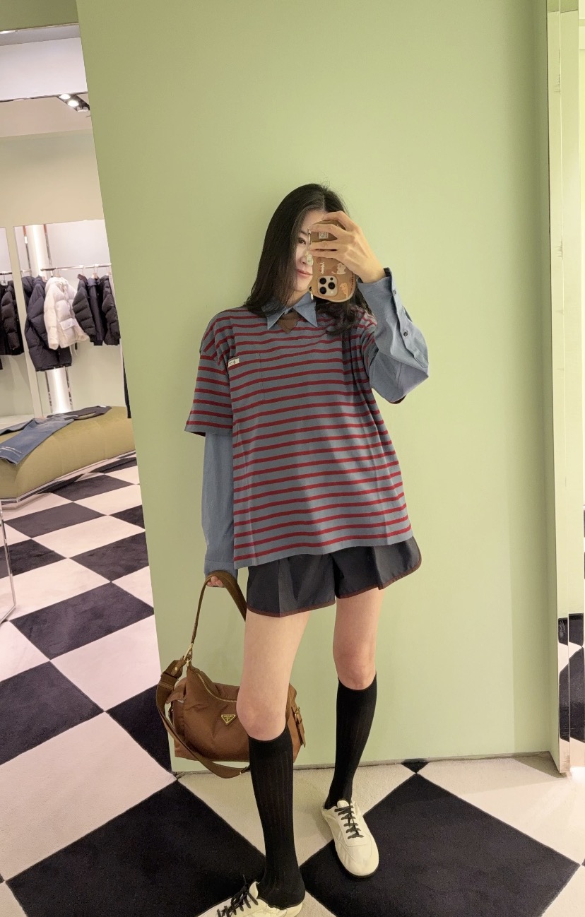 這款衣服是AAAAA 1:1 質量(非常棒). 使用了和原版一模一樣的材料. 商標部分也保持了和普拉達/Prada一樣. 圖片拍攝是實物衣服拍攝, 您所收到的實物保證和我們圖片一模一樣.