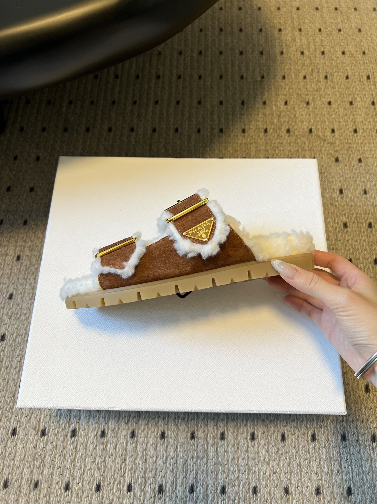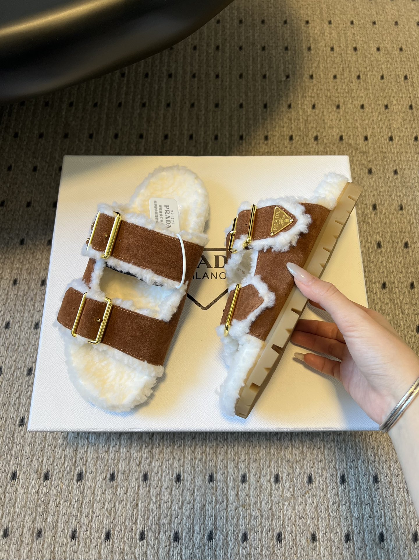 這款鞋子是AAAAA 1:1 質量(非常棒). 使用了和原版一模一樣的材料. 商標部分也保持了和普拉達/Prada一樣. 圖片拍攝是實物鞋子拍攝, 您所收到的實物保證和我們圖片一模一樣.