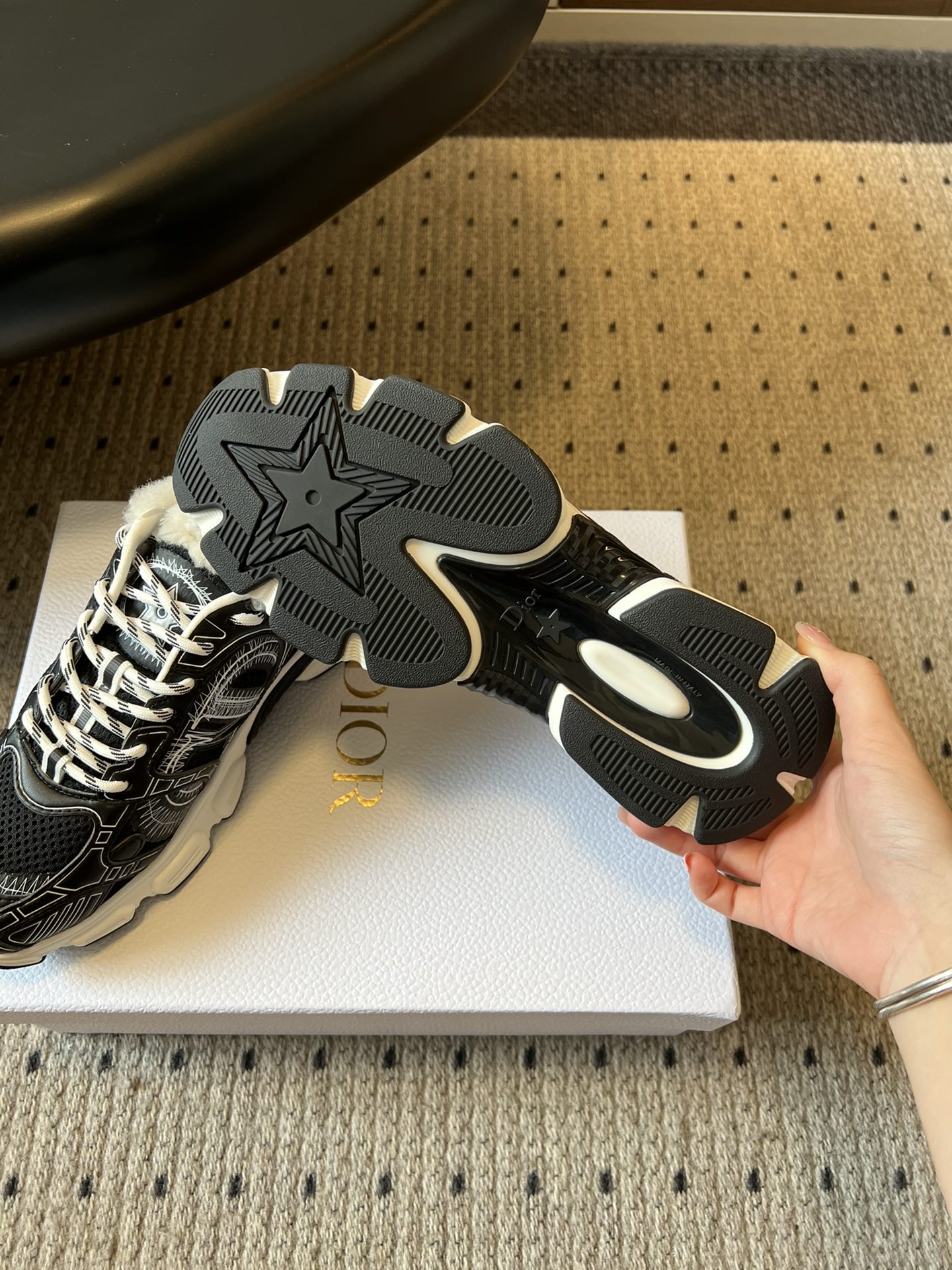 這款鞋子是AAAAA 1:1 質量(非常棒). 使用了和原版一模一樣的材料. 商標部分也保持了和迪奧/Dior一樣. 圖片拍攝是實物鞋子拍攝, 您所收到的實物保證和我們圖片一模一樣.