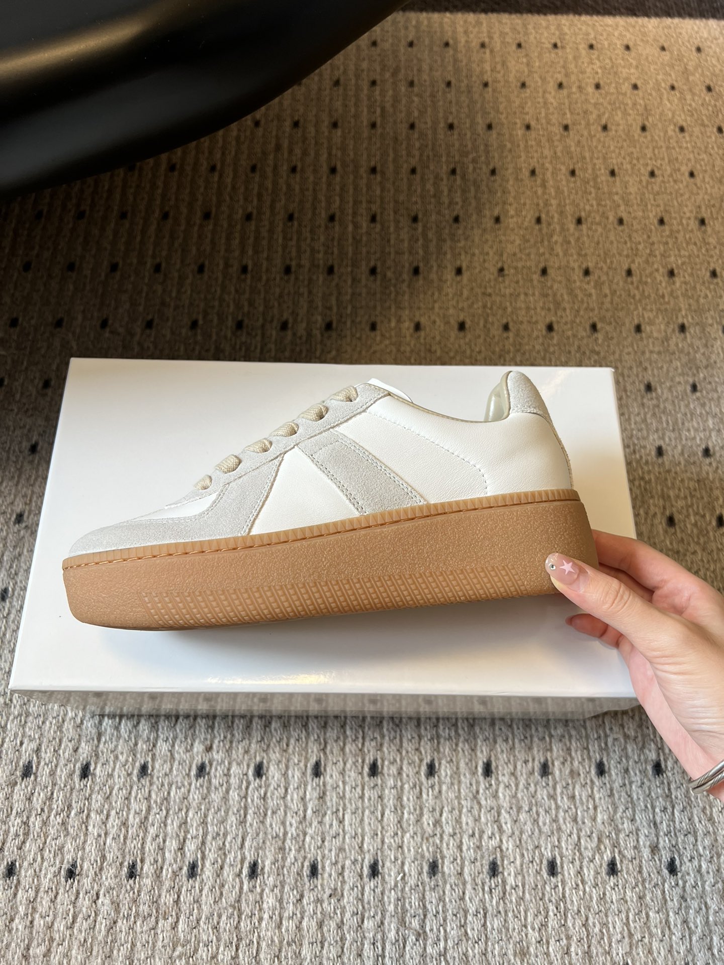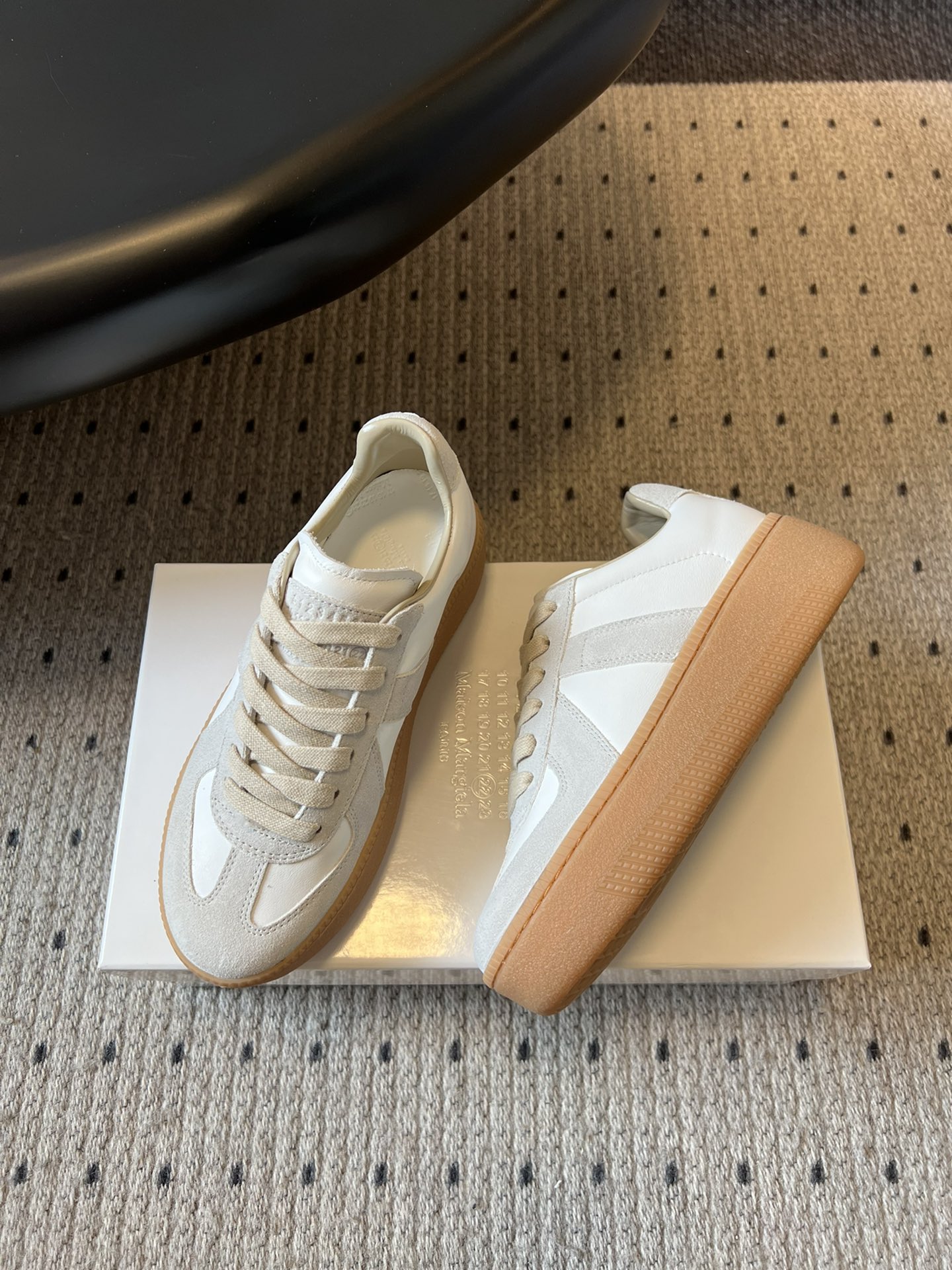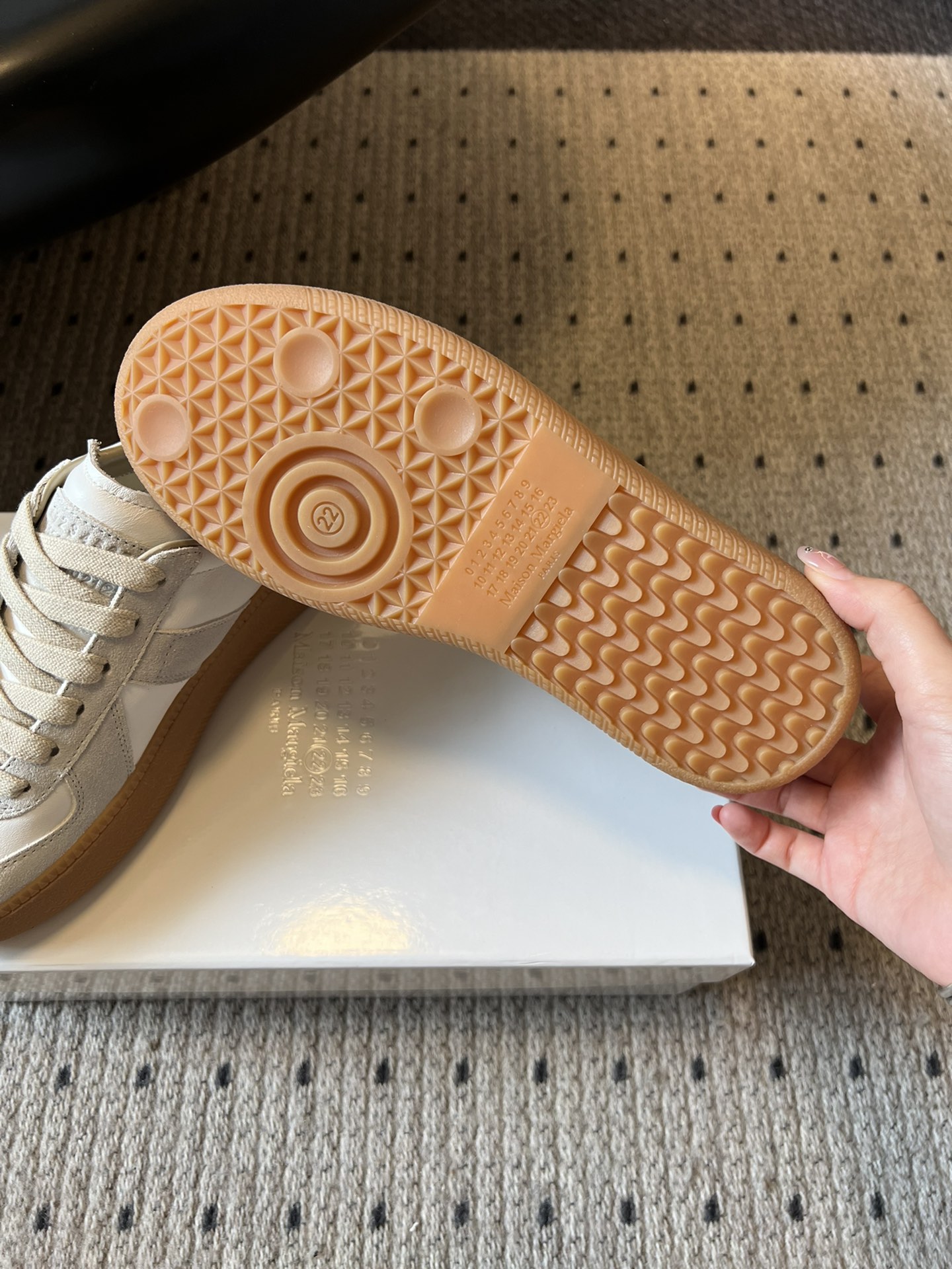 這款鞋子是AAAAA 1:1 質量(非常棒). 使用了和原版一模一樣的材料. 商標部分也保持了和Maison Margiela一樣. 圖片拍攝是實物鞋子拍攝, 您所收到的實物保證和我們圖片一模一樣.