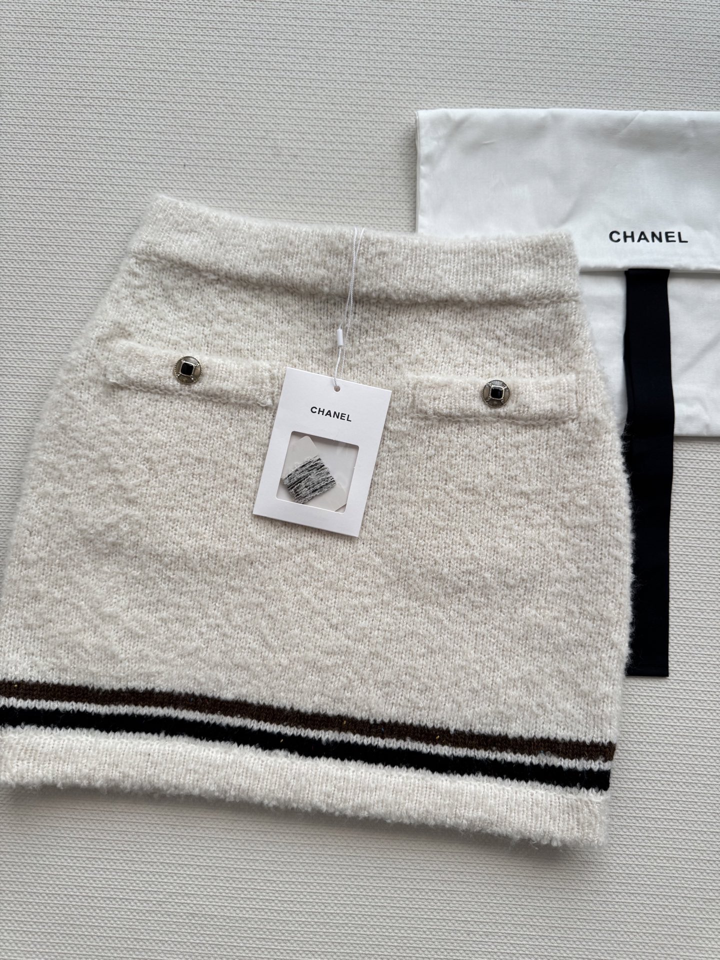 這款衣服是AAAAA 1:1 質量(非常棒). 使用了和原版一模一樣的材料. 商標部分也保持了和香奈兒/Chanel一樣. 圖片拍攝是實物衣服拍攝, 您所收到的實物保證和我們圖片一模一樣.