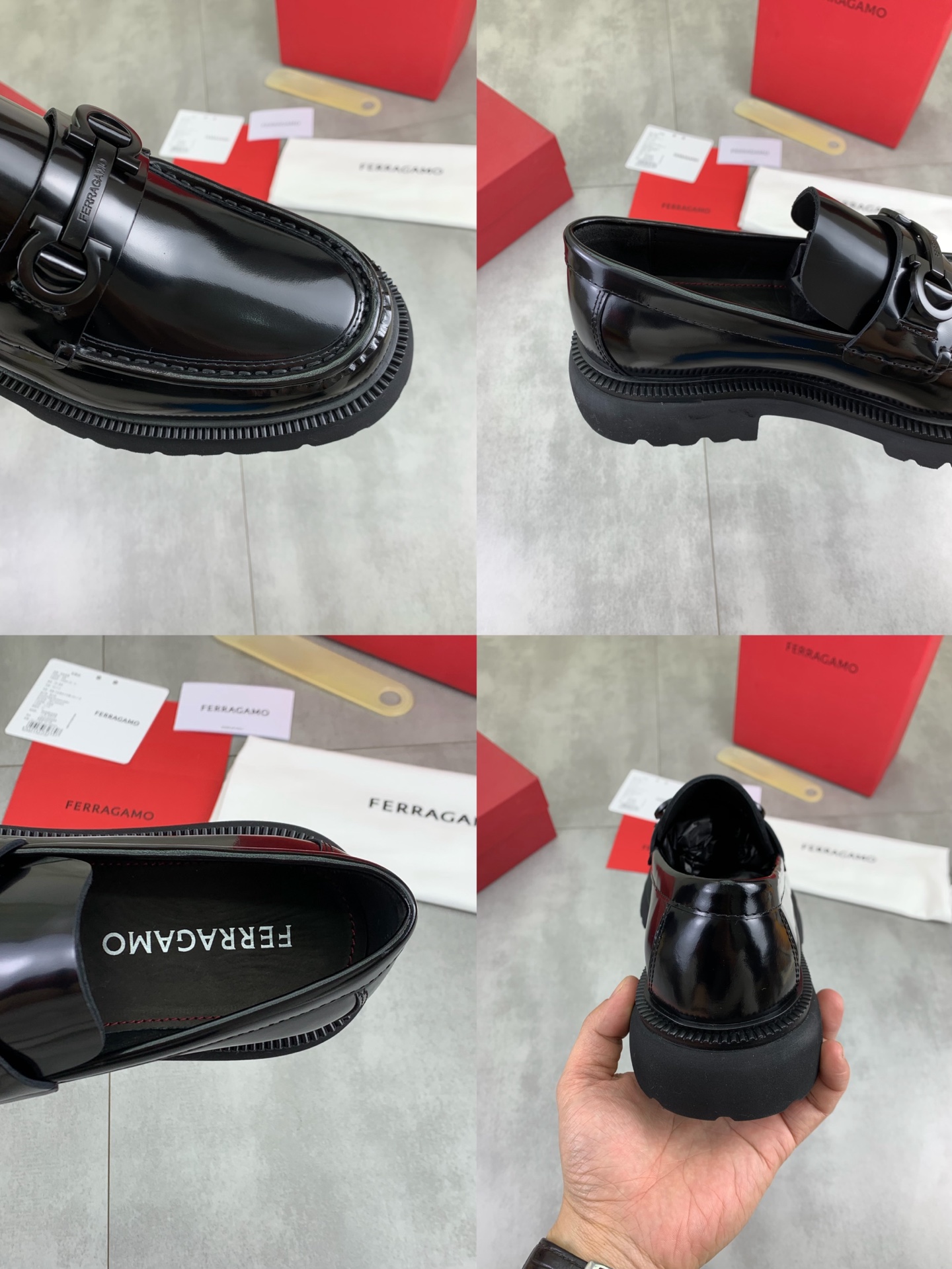 這款鞋子是AAAAA 1:1 質量(非常棒). 使用了和原版一模一樣的材料. 商標部分也保持了和菲拉格慕/Salvatore Ferragamo一樣. 圖片拍攝是實物鞋子拍攝, 您所收到的實物保證和我們圖片一模一樣.