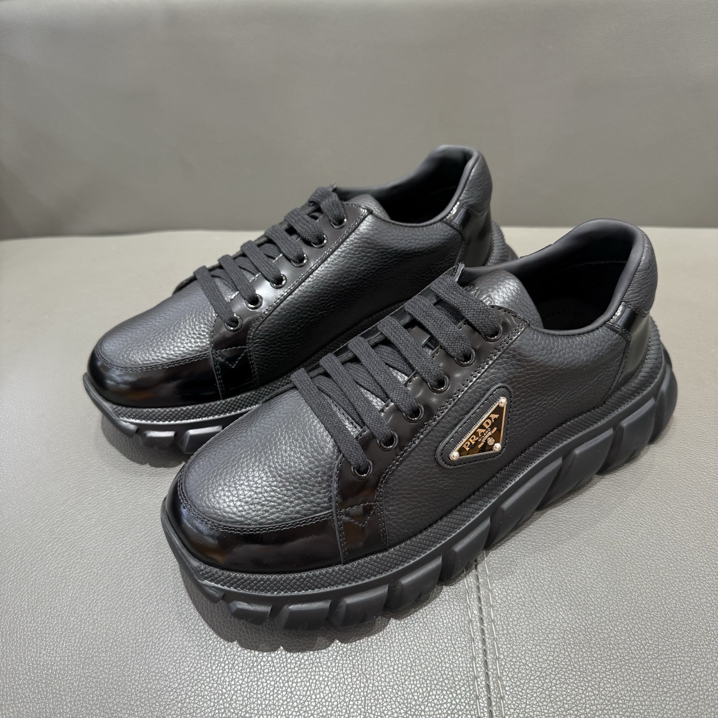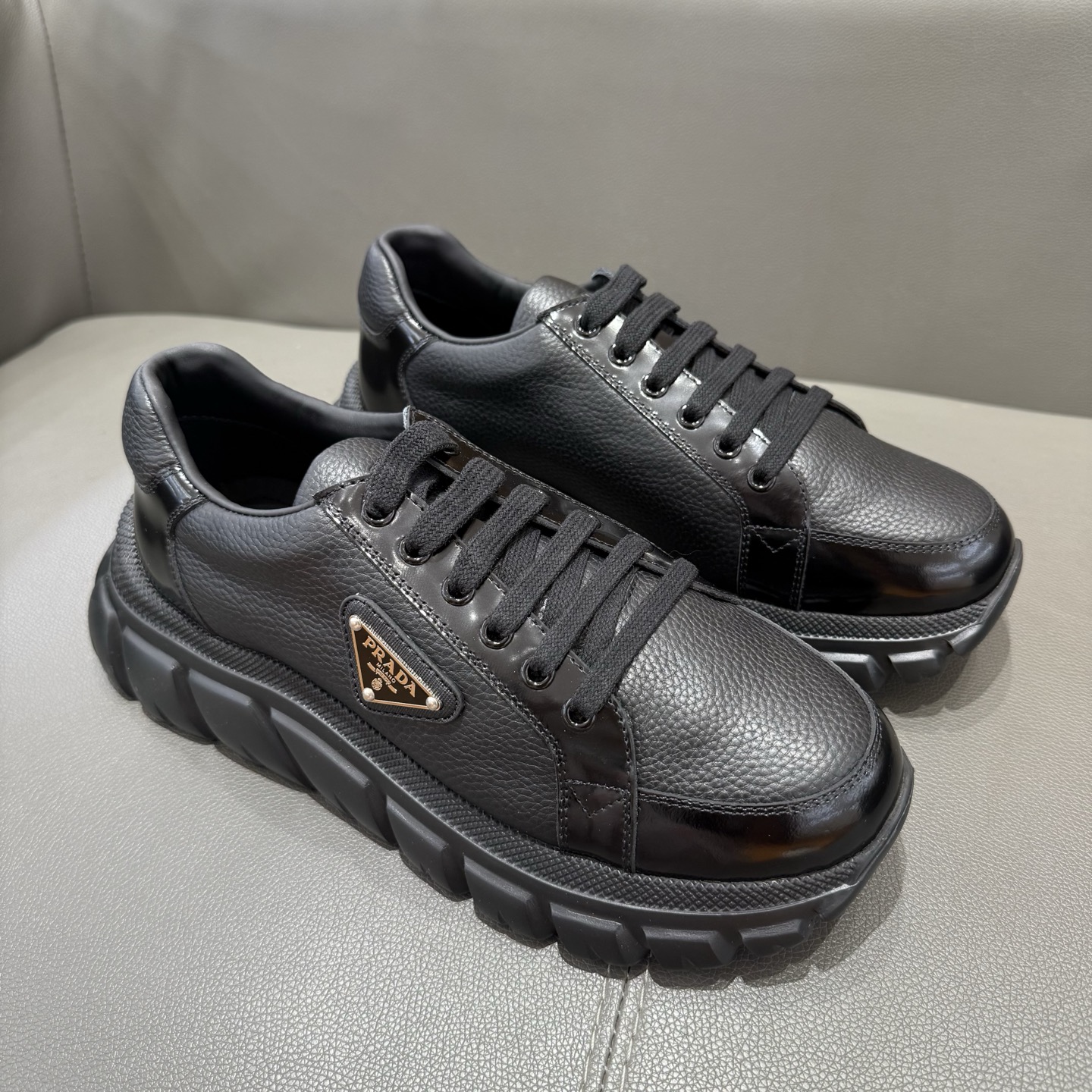 這款鞋子是AAAAA 1:1 質量(非常棒). 使用了和原版一模一樣的材料. 商標部分也保持了和普拉達/Prada一樣. 圖片拍攝是實物鞋子拍攝, 您所收到的實物保證和我們圖片一模一樣.