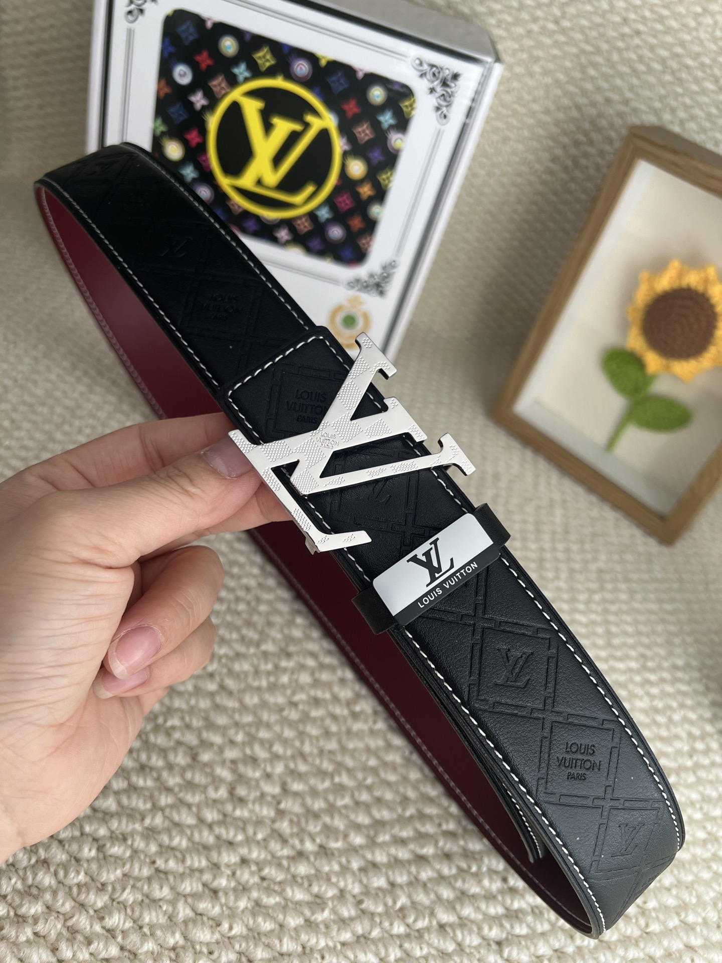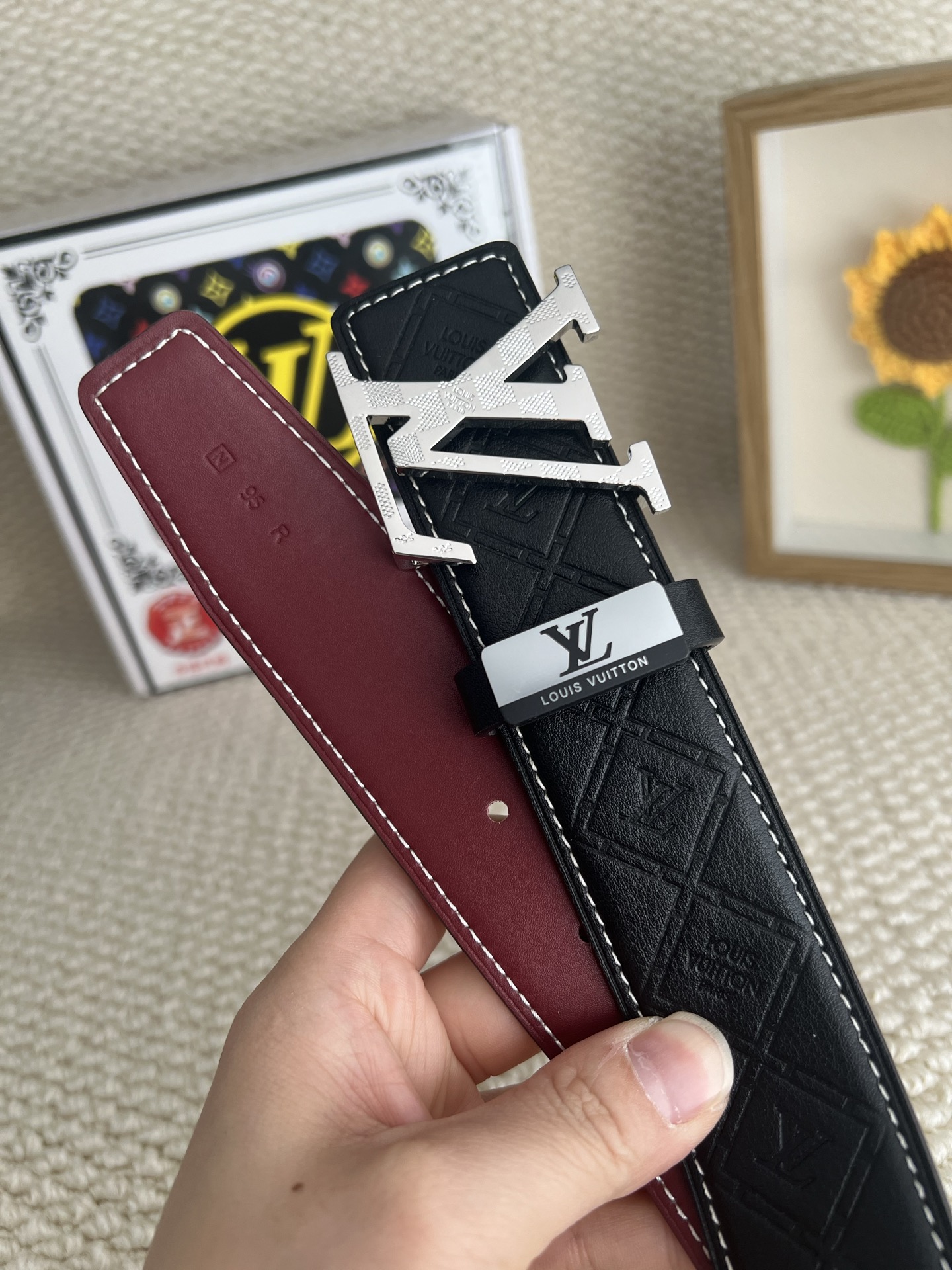 這款皮帶是AAAAA 1:1 質量(非常棒). 使用了和原版一模一樣的材料. 商標部分也保持了和路易威登/Louis Vuitton一樣. 圖片拍攝是實物皮帶拍攝, 您所收到的實物保證和我們圖片一模一樣.