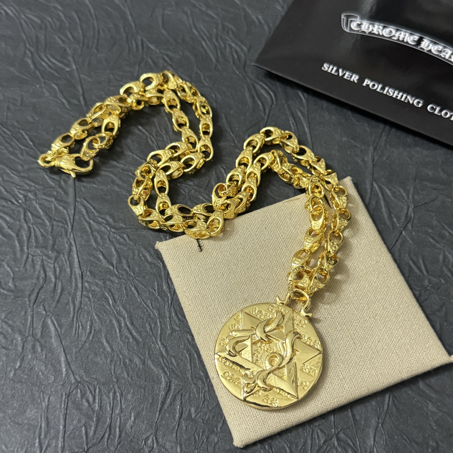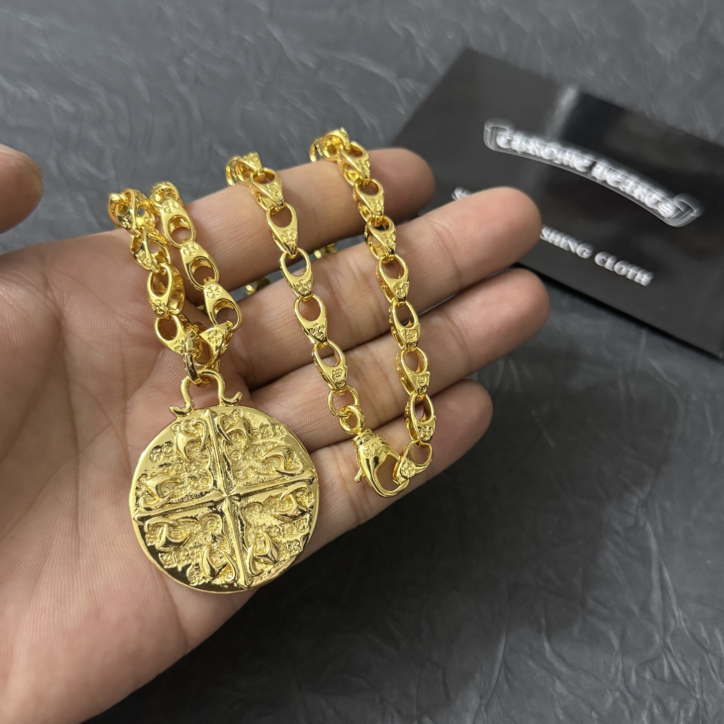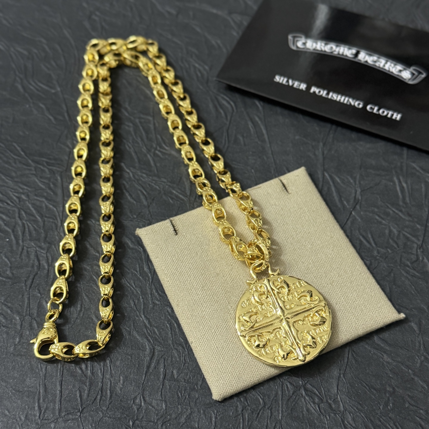 這款首飾是AAAAA 1:1 質量(非常棒). 使用了和原版一模一樣的材料. 商標部分也保持了和鉻心/Chrome Hearts一樣. 圖片拍攝是實物首飾拍攝, 您所收到的實物保證和我們圖片一模一樣.