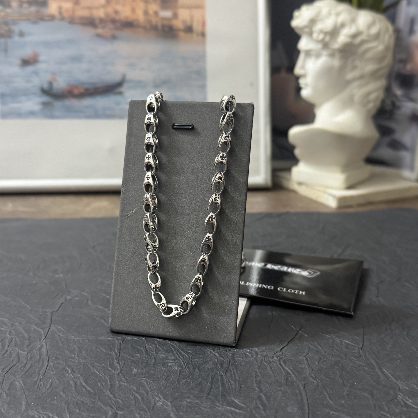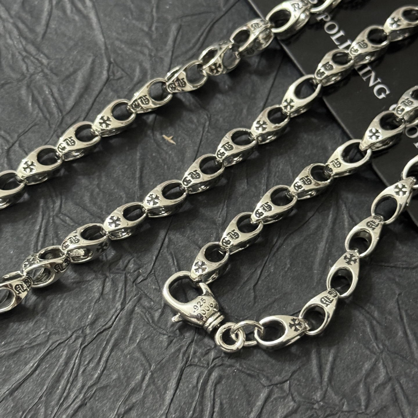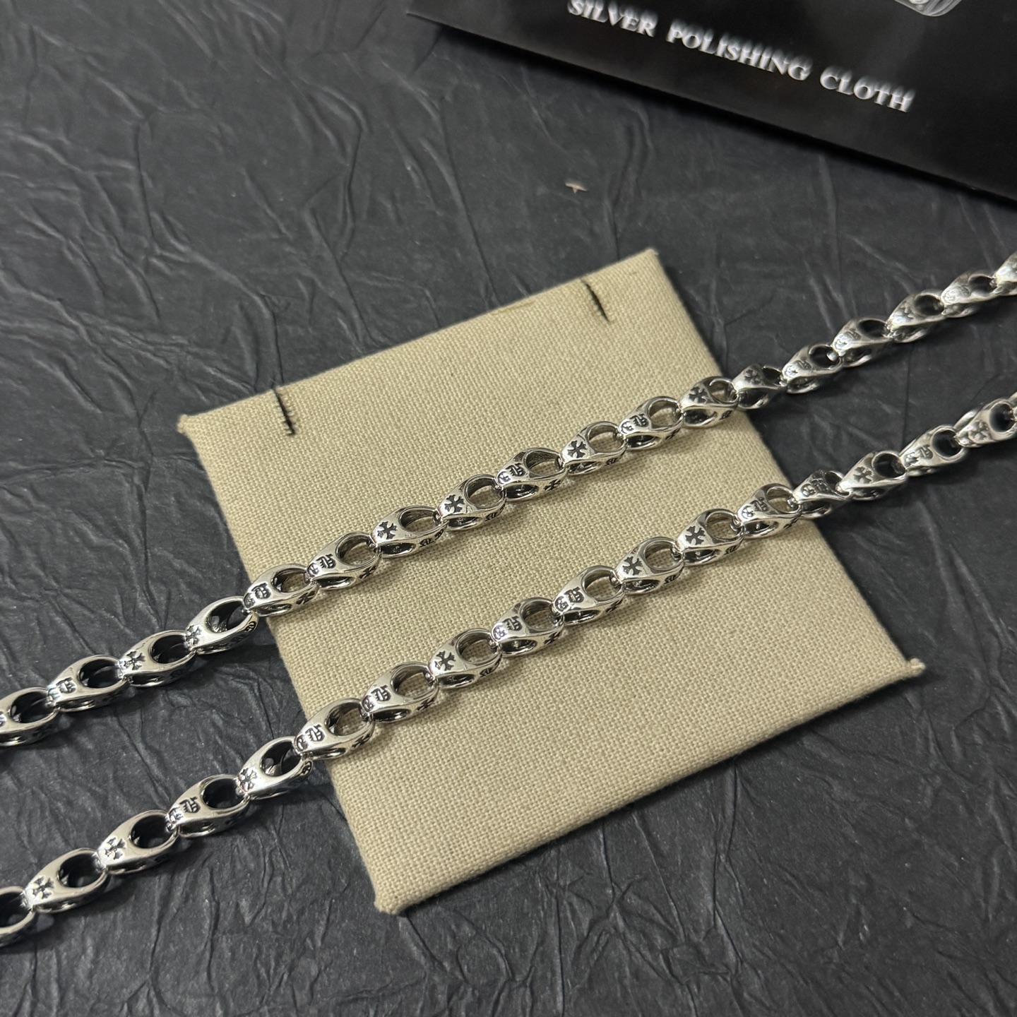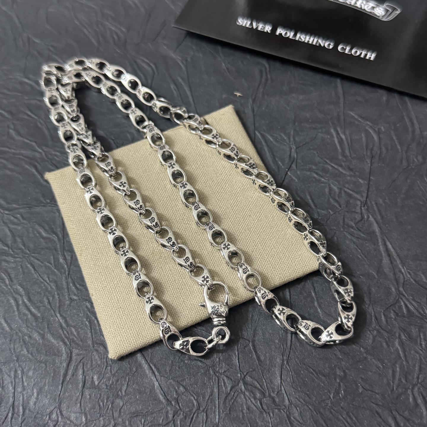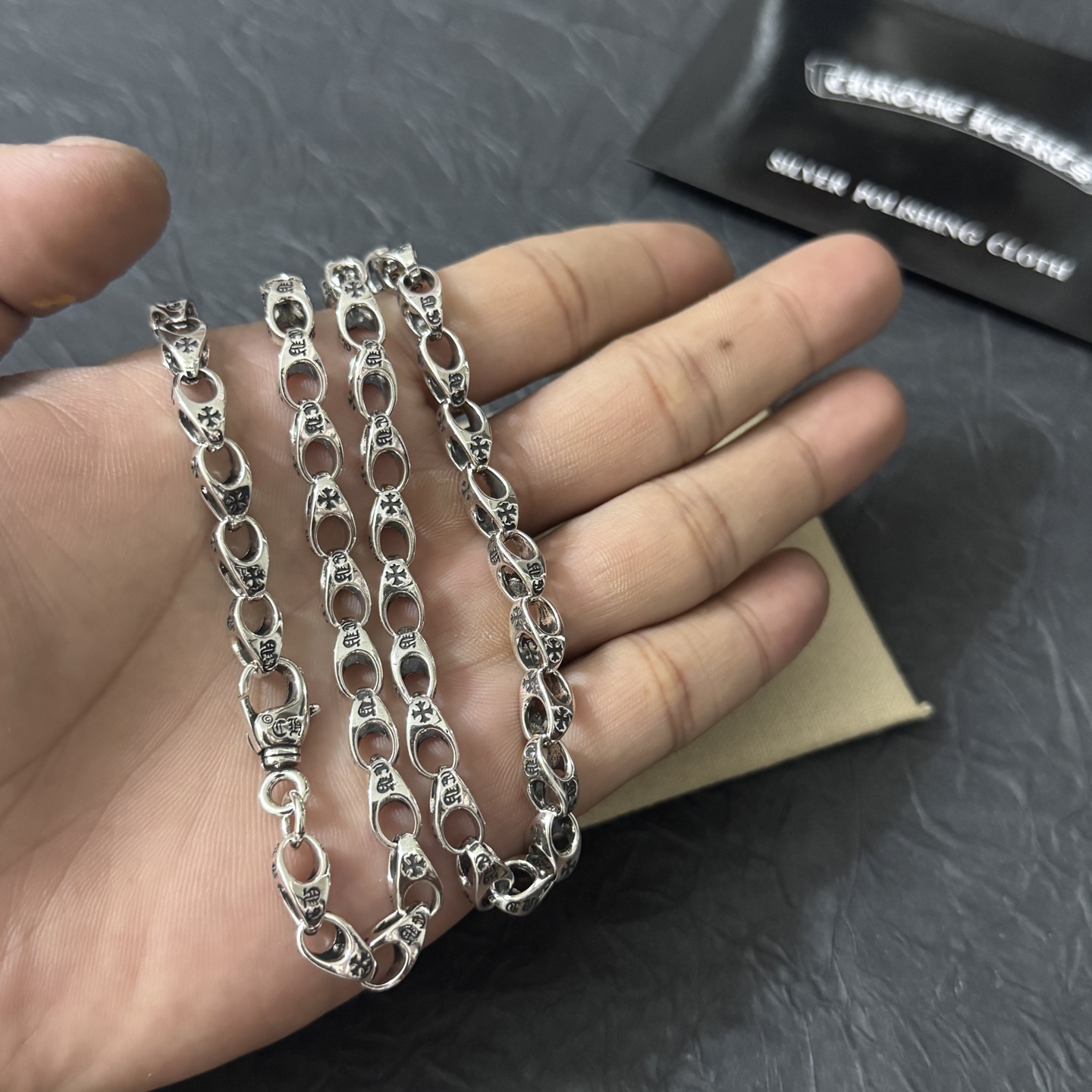 這款首飾是AAAAA 1:1 質量(非常棒). 使用了和原版一模一樣的材料. 商標部分也保持了和鉻心/Chrome Hearts一樣. 圖片拍攝是實物首飾拍攝, 您所收到的實物保證和我們圖片一模一樣.