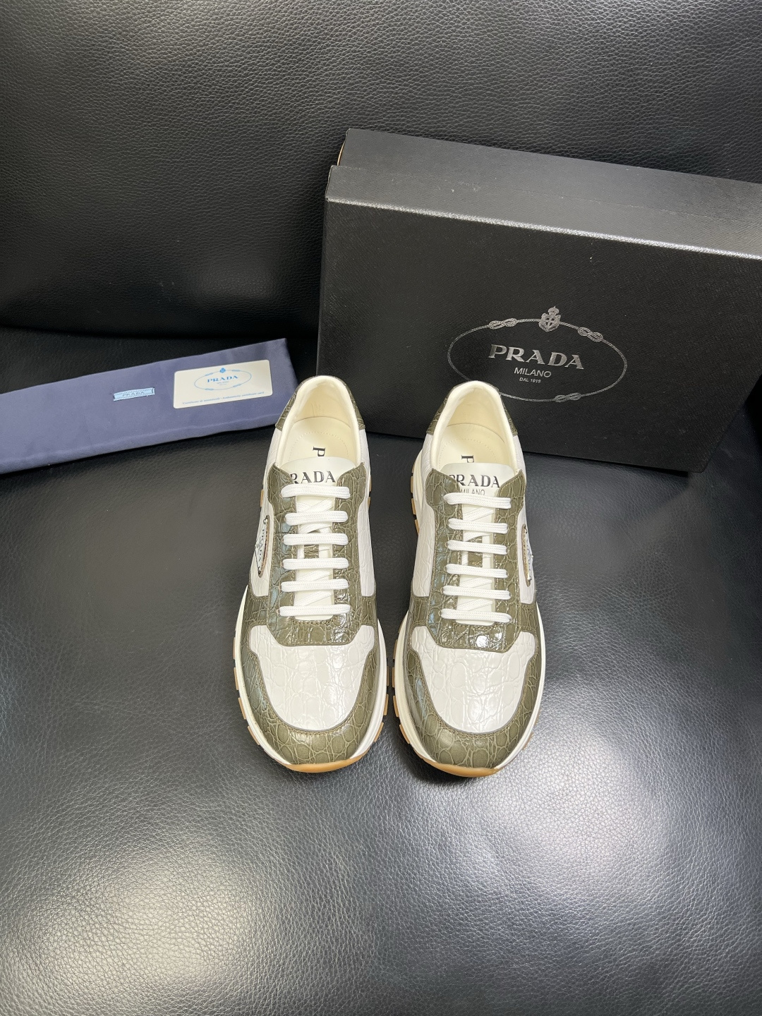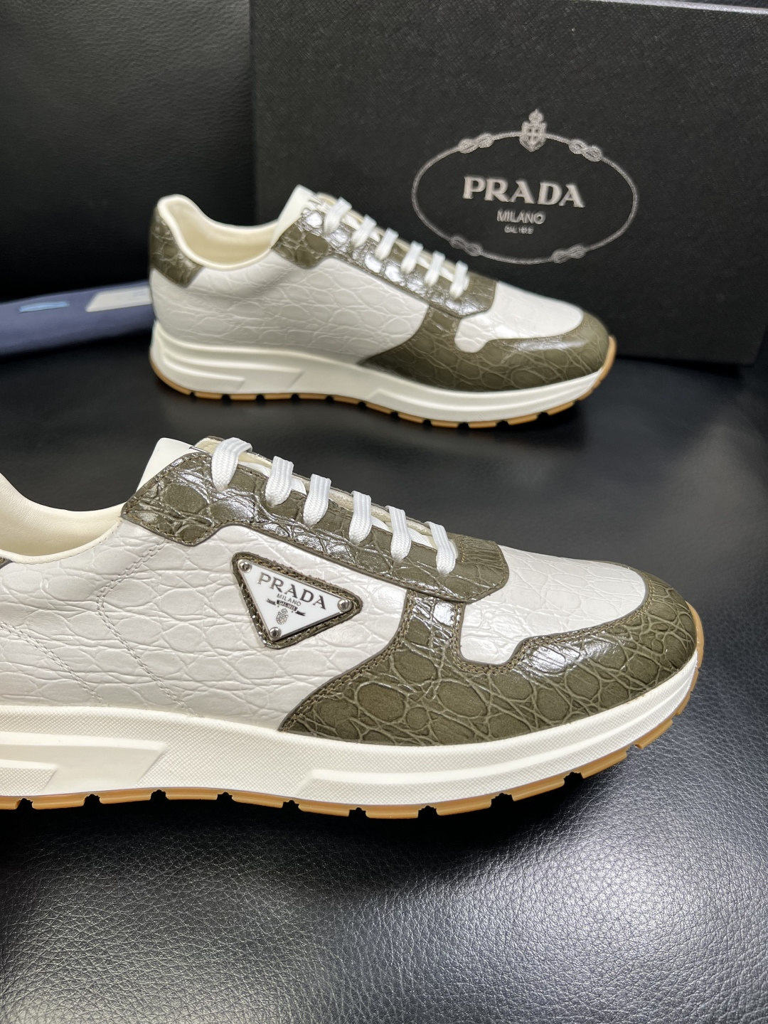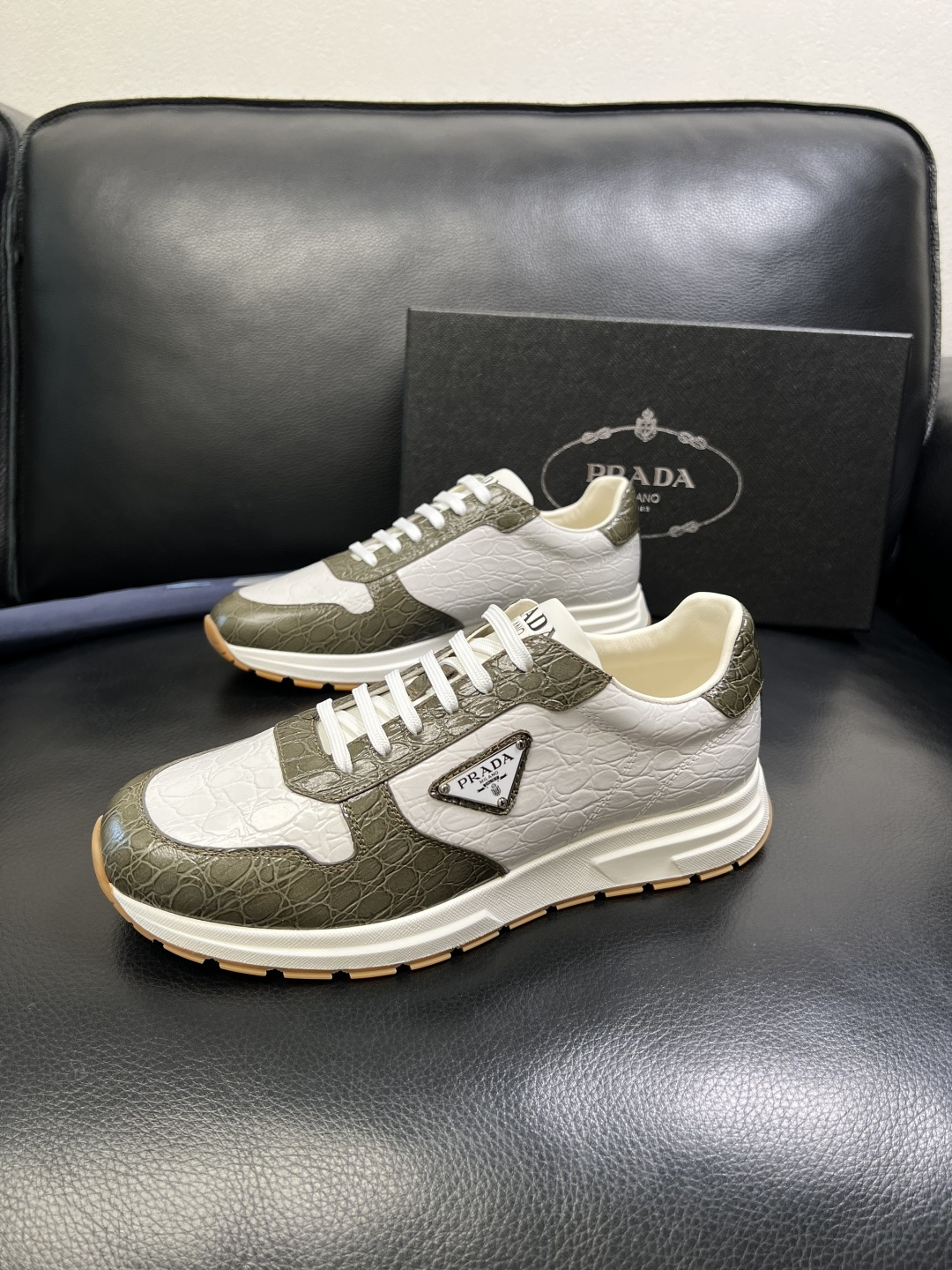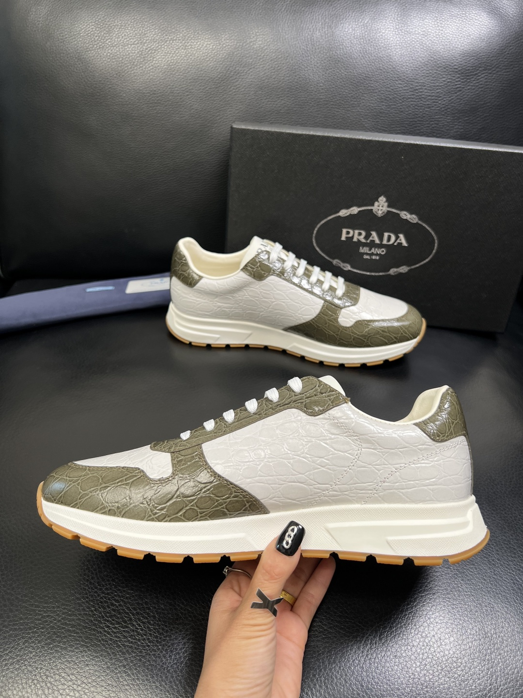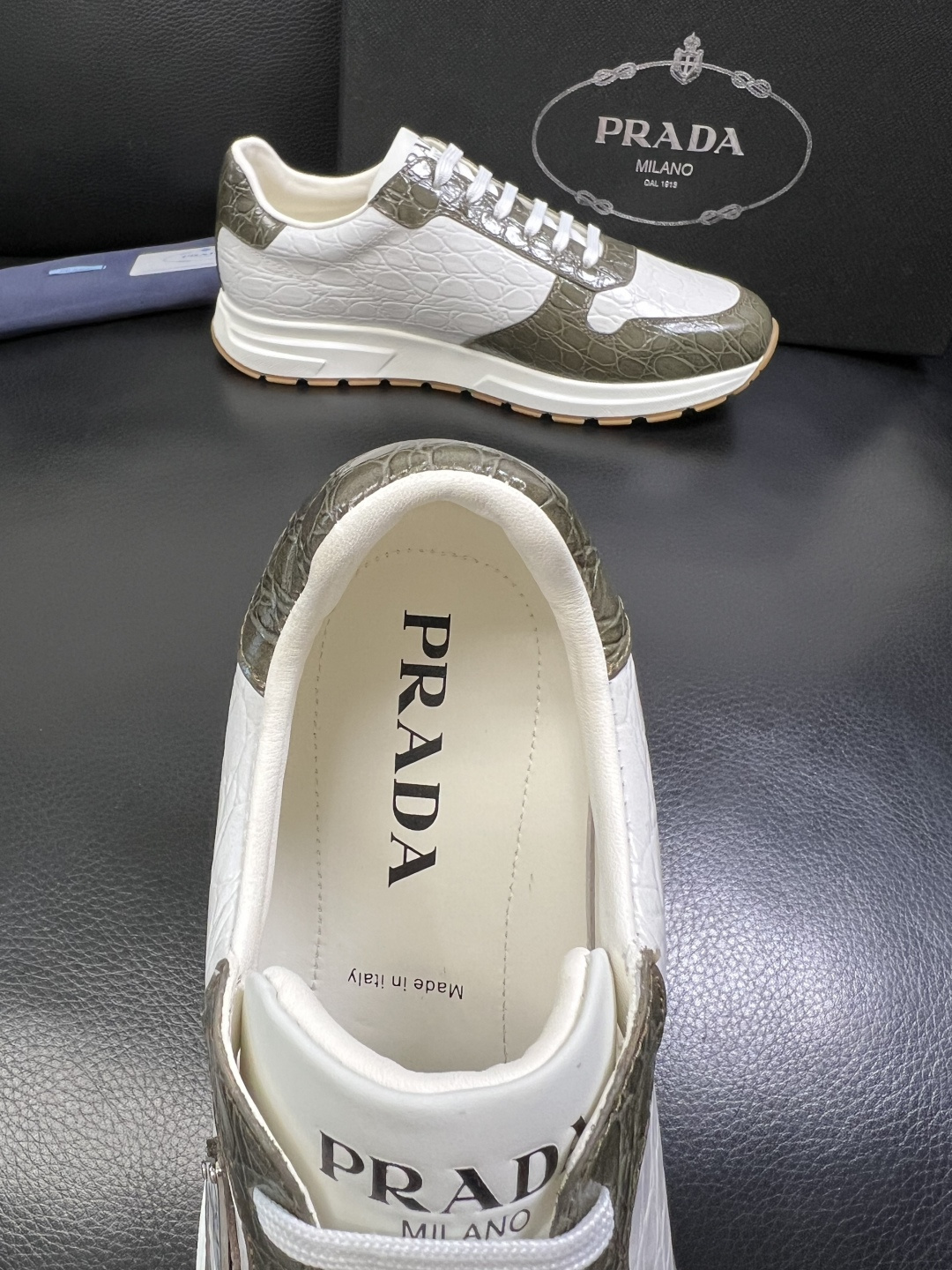 這款鞋子是AAAAA 1:1 質量(非常棒). 使用了和原版一模一樣的材料. 商標部分也保持了和普拉達/Prada一樣. 圖片拍攝是實物鞋子拍攝, 您所收到的實物保證和我們圖片一模一樣.