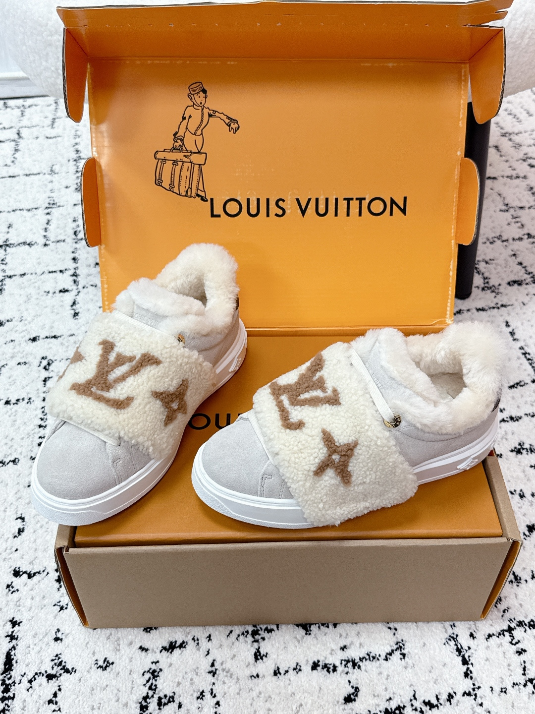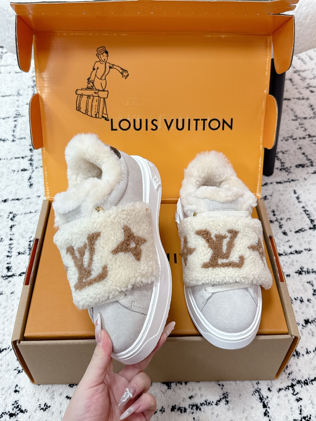這款鞋子是AAAAA 1:1 質量(非常棒). 使用了和原版一模一樣的材料. 商標部分也保持了和路易威登/Louis Vuitton一樣. 圖片拍攝是實物鞋子拍攝, 您所收到的實物保證和我們圖片一模一樣.