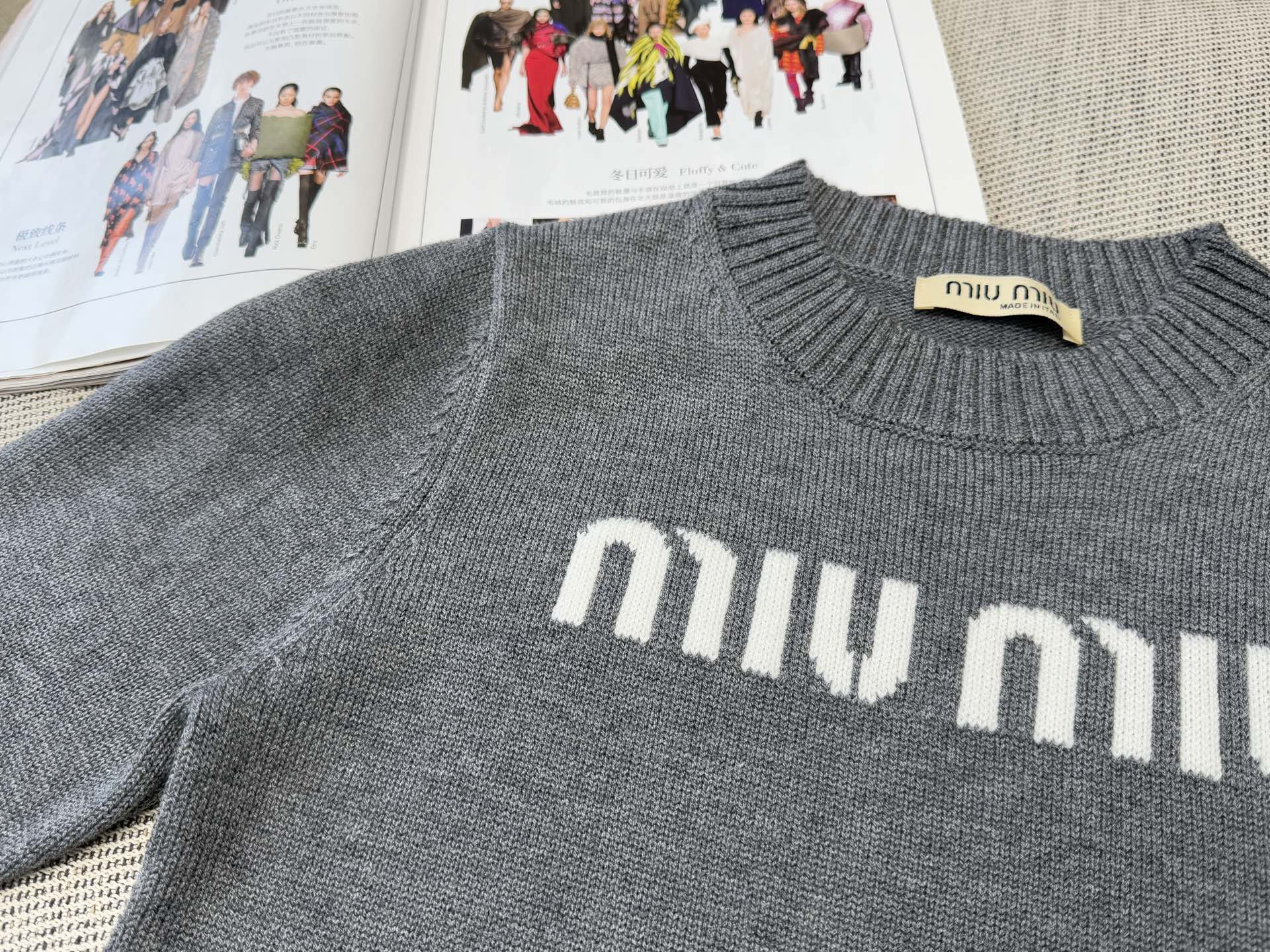 這款衣服是AAAAA 1:1 質量(非常棒). 使用了和原版一模一樣的材料. 商標部分也保持了和繆繆/Miu Miu一樣. 圖片拍攝是實物衣服拍攝, 您所收到的實物保證和我們圖片一模一樣.