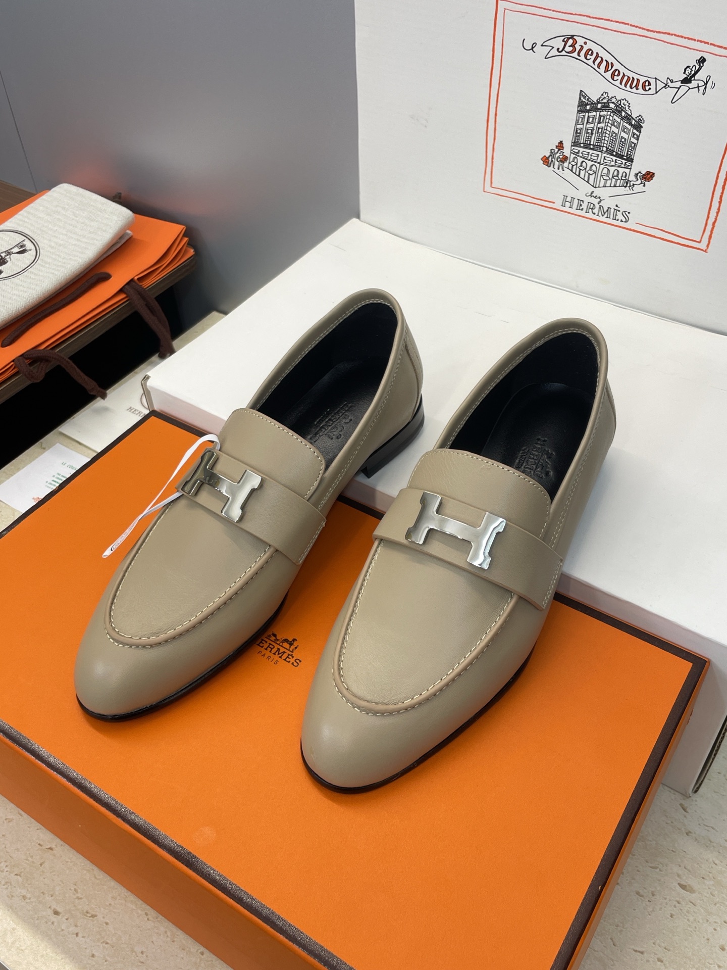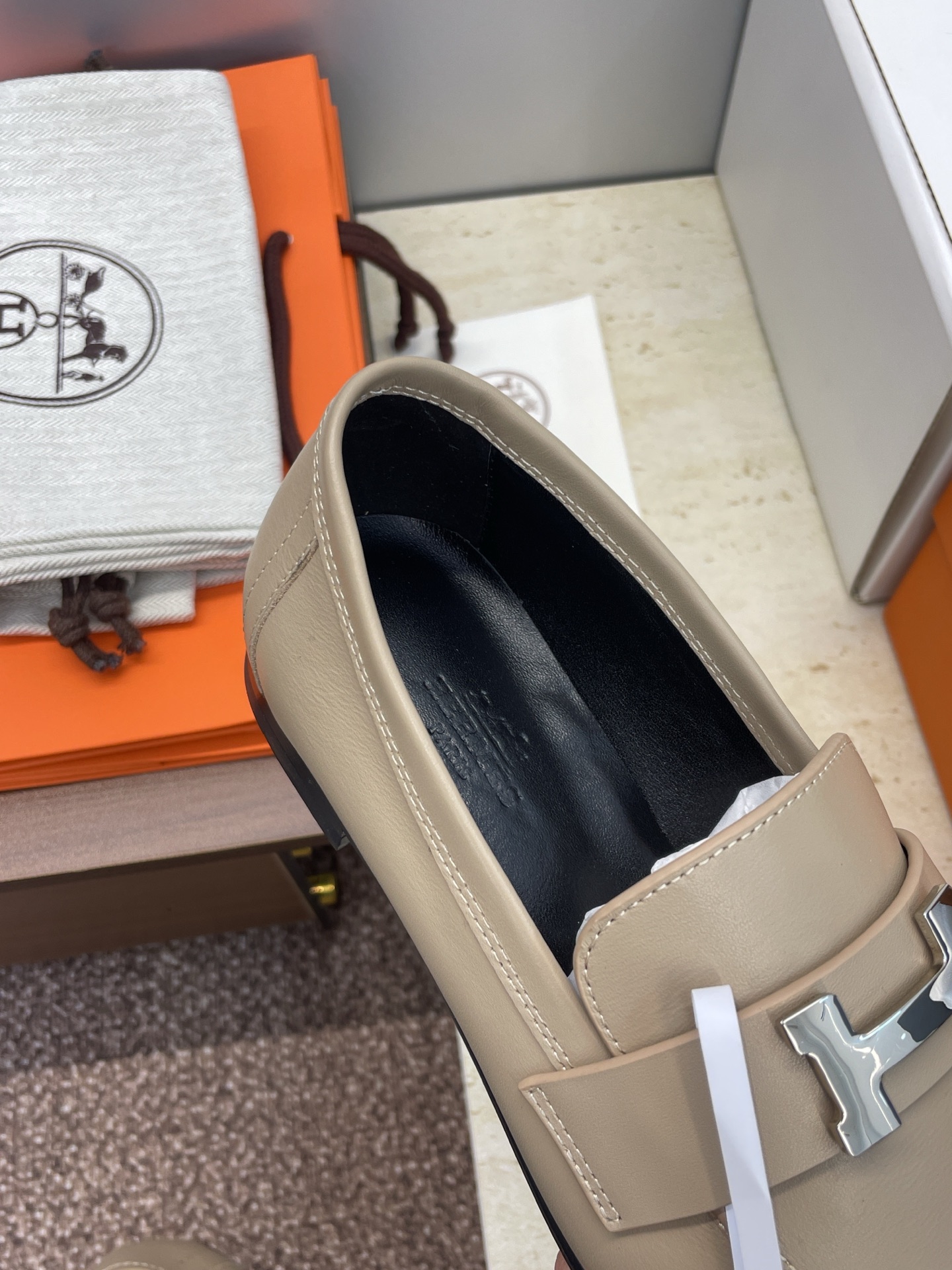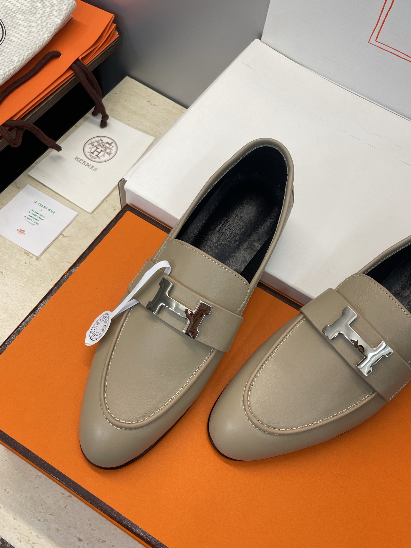 這款鞋子是AAAAA 1:1 質量(非常棒). 使用了和原版一模一樣的材料. 商標部分也保持了和愛馬仕/Hermes一樣. 圖片拍攝是實物鞋子拍攝, 您所收到的實物保證和我們圖片一模一樣.