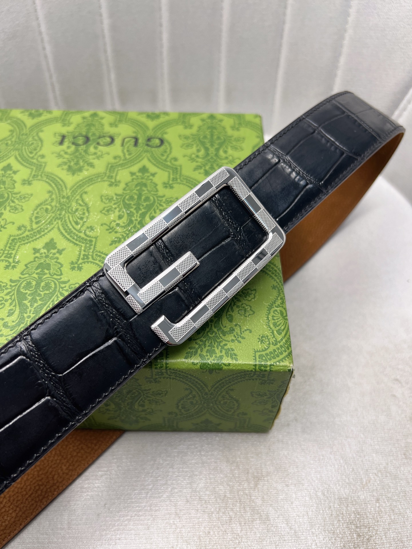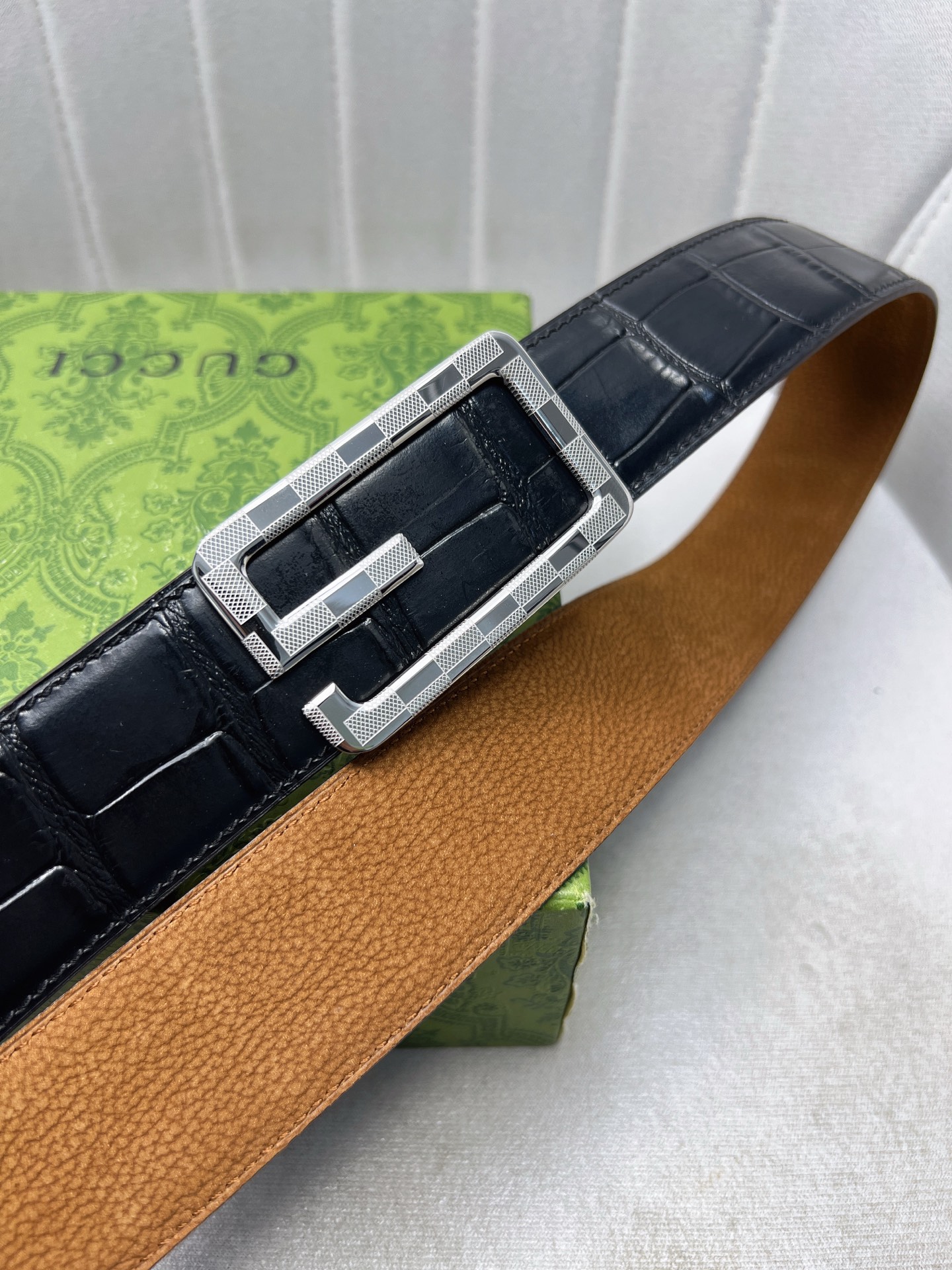 這款皮帶是AAAAA 1:1 質量(非常棒). 使用了和原版一模一樣的材料. 商標部分也保持了和古奇/Gucci一樣. 圖片拍攝是實物皮帶拍攝, 您所收到的實物保證和我們圖片一模一樣.