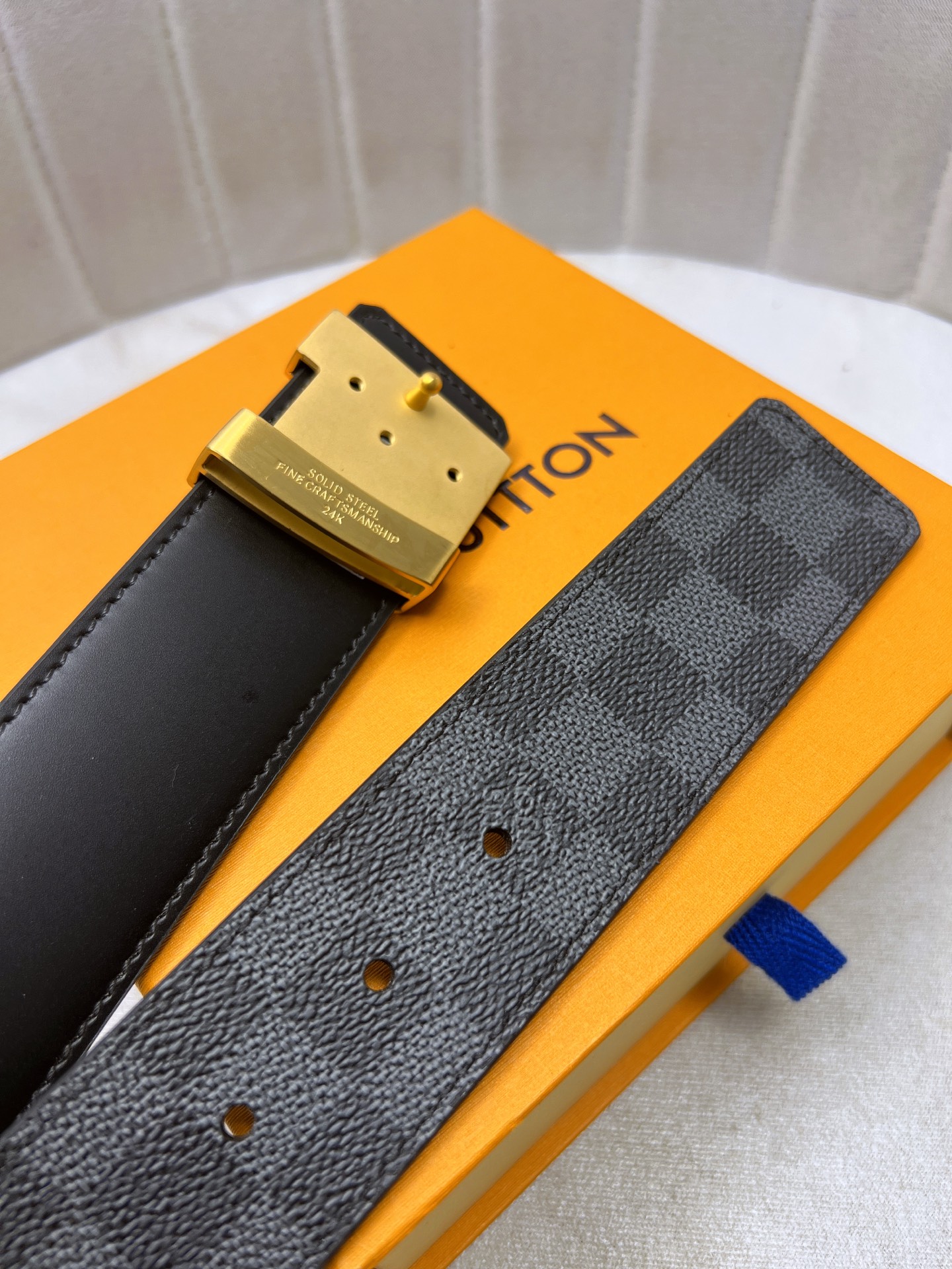這款皮帶是AAAAA 1:1 質量(非常棒). 使用了和原版一模一樣的材料. 商標部分也保持了和路易威登/Louis Vuitton一樣. 圖片拍攝是實物皮帶拍攝, 您所收到的實物保證和我們圖片一模一樣.